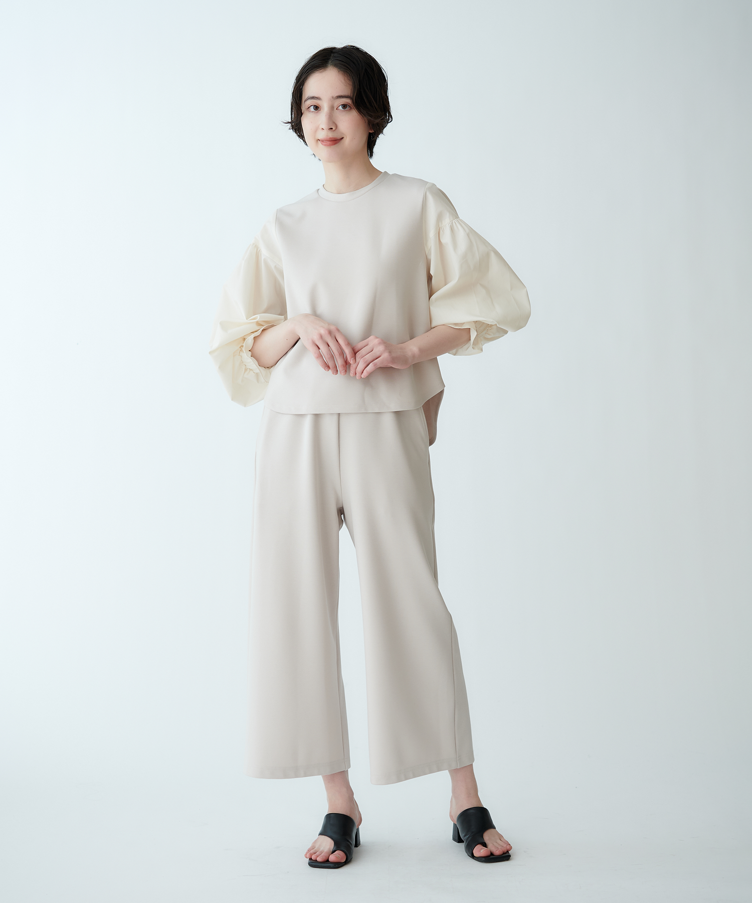 同素材のトップスM11102と合わせた、ワントーンコーデもおすすめ。