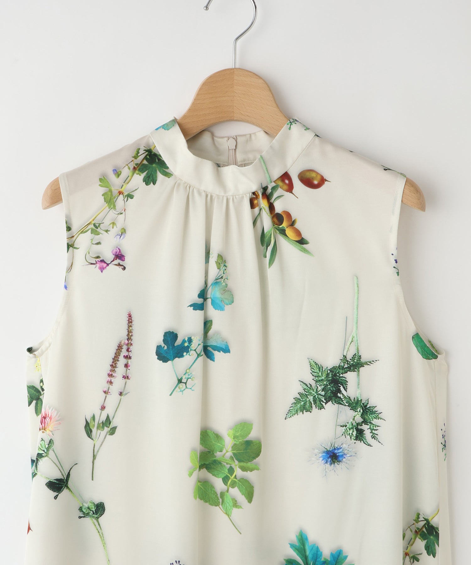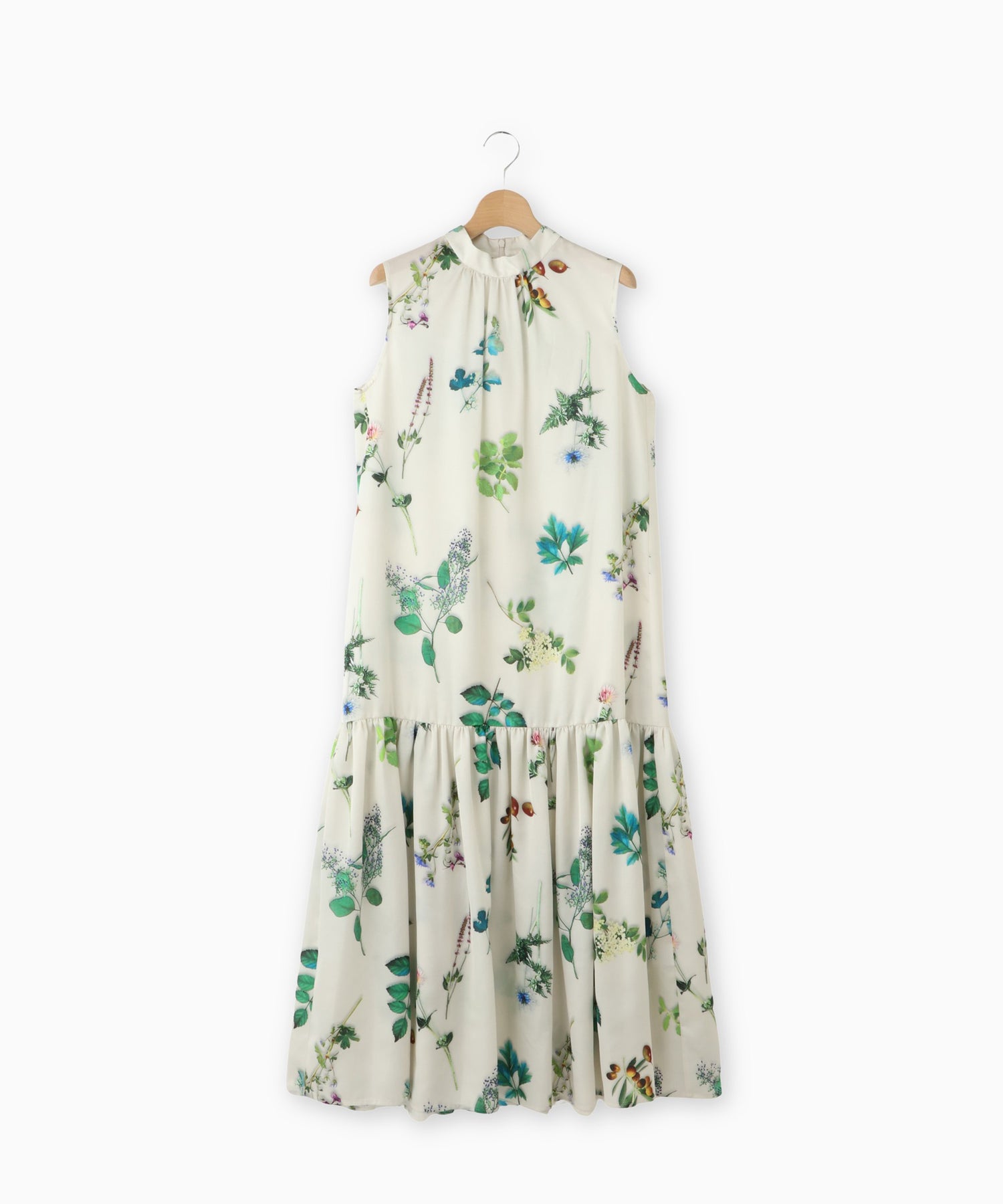 ボタニカルプリントノースリーブワンピース