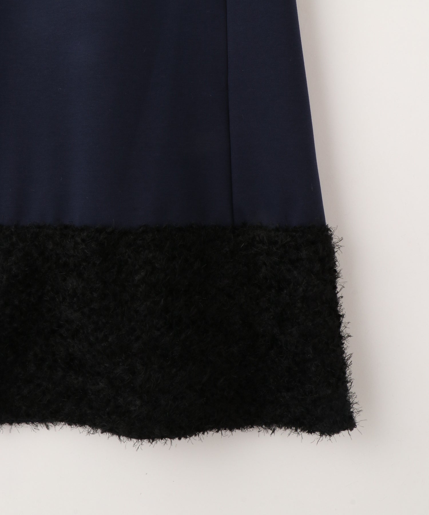 軽くしっとりとしたポンチ素材に、ラグジュアリーなフェザーをドッキングしたスカート。
