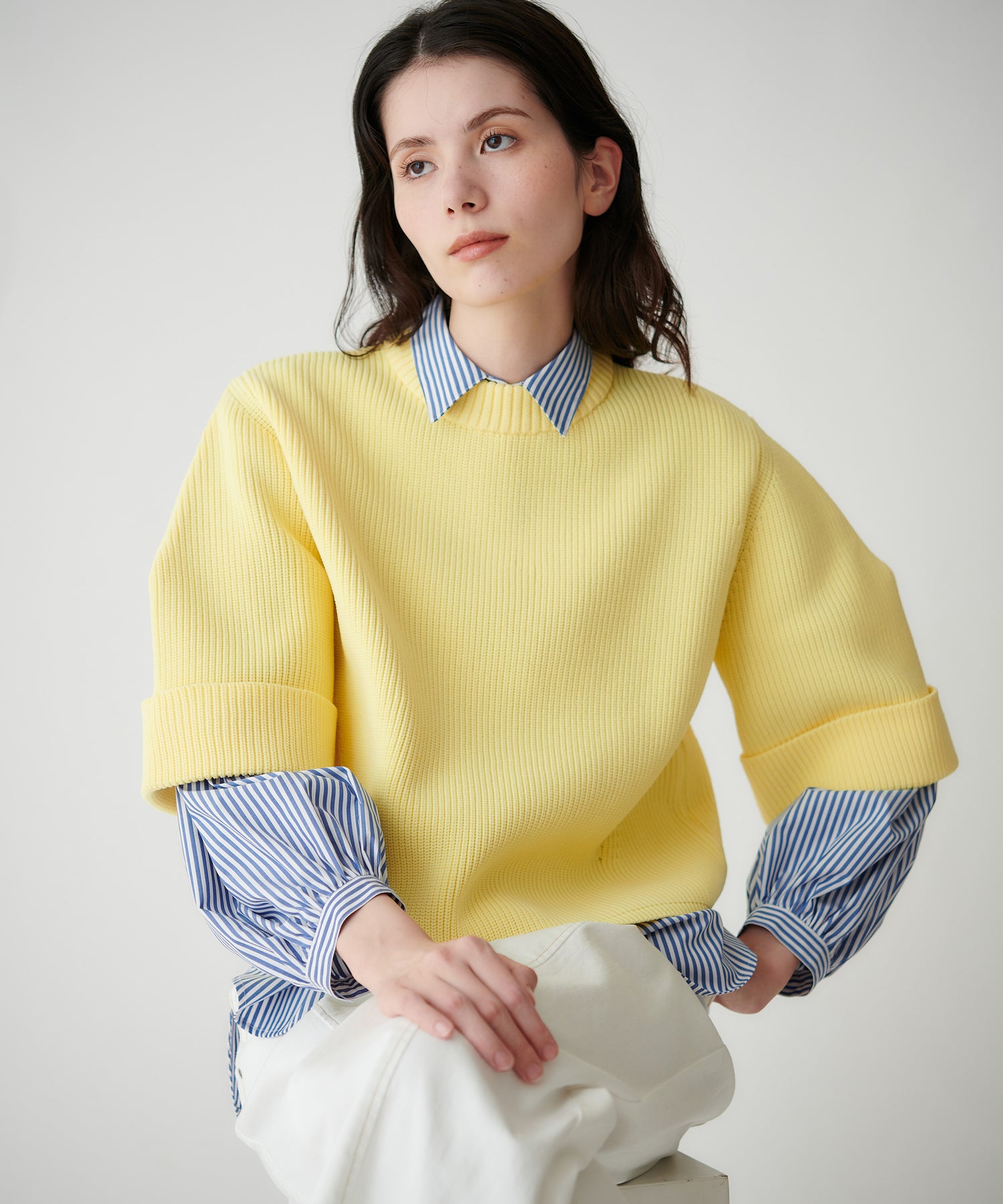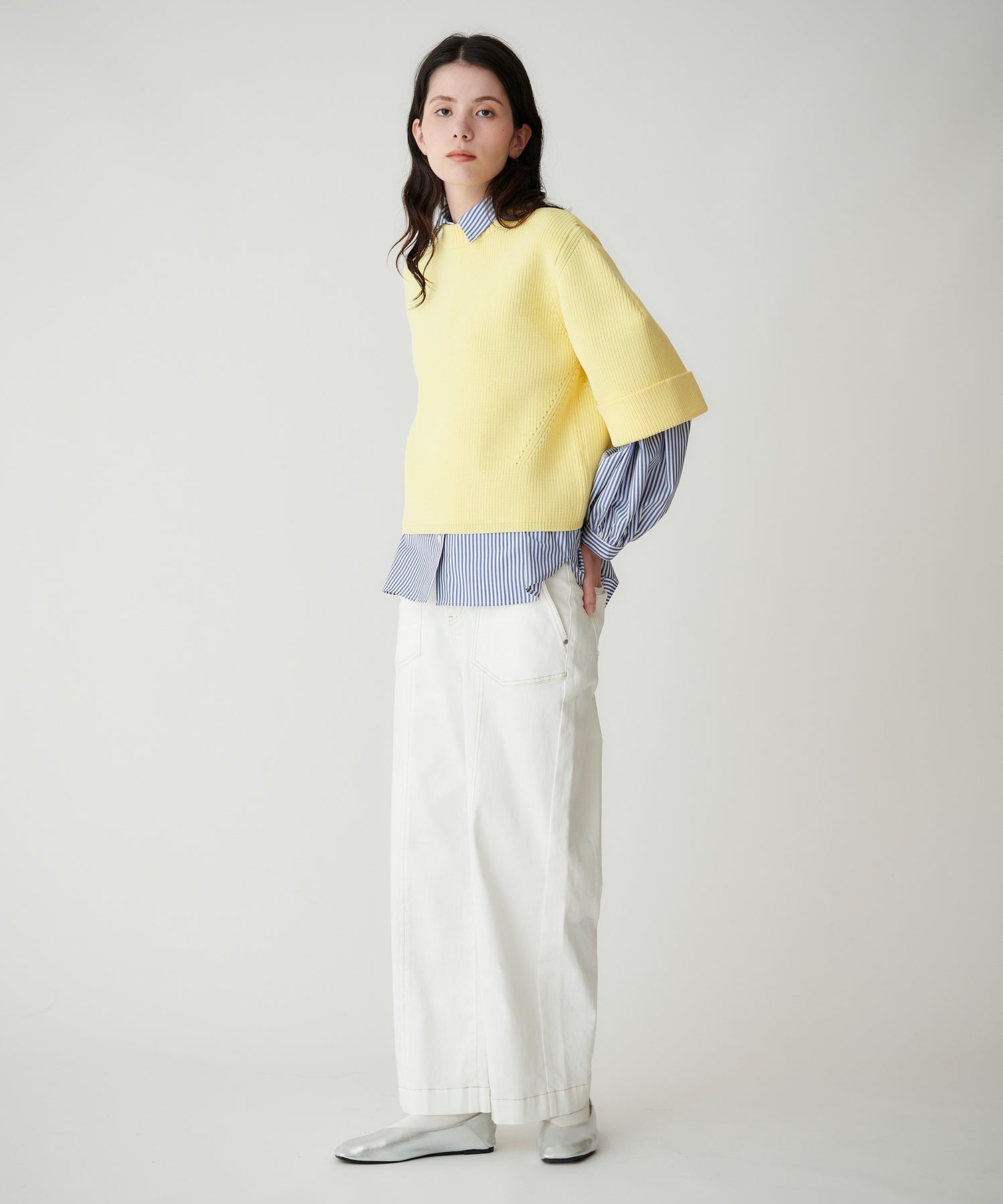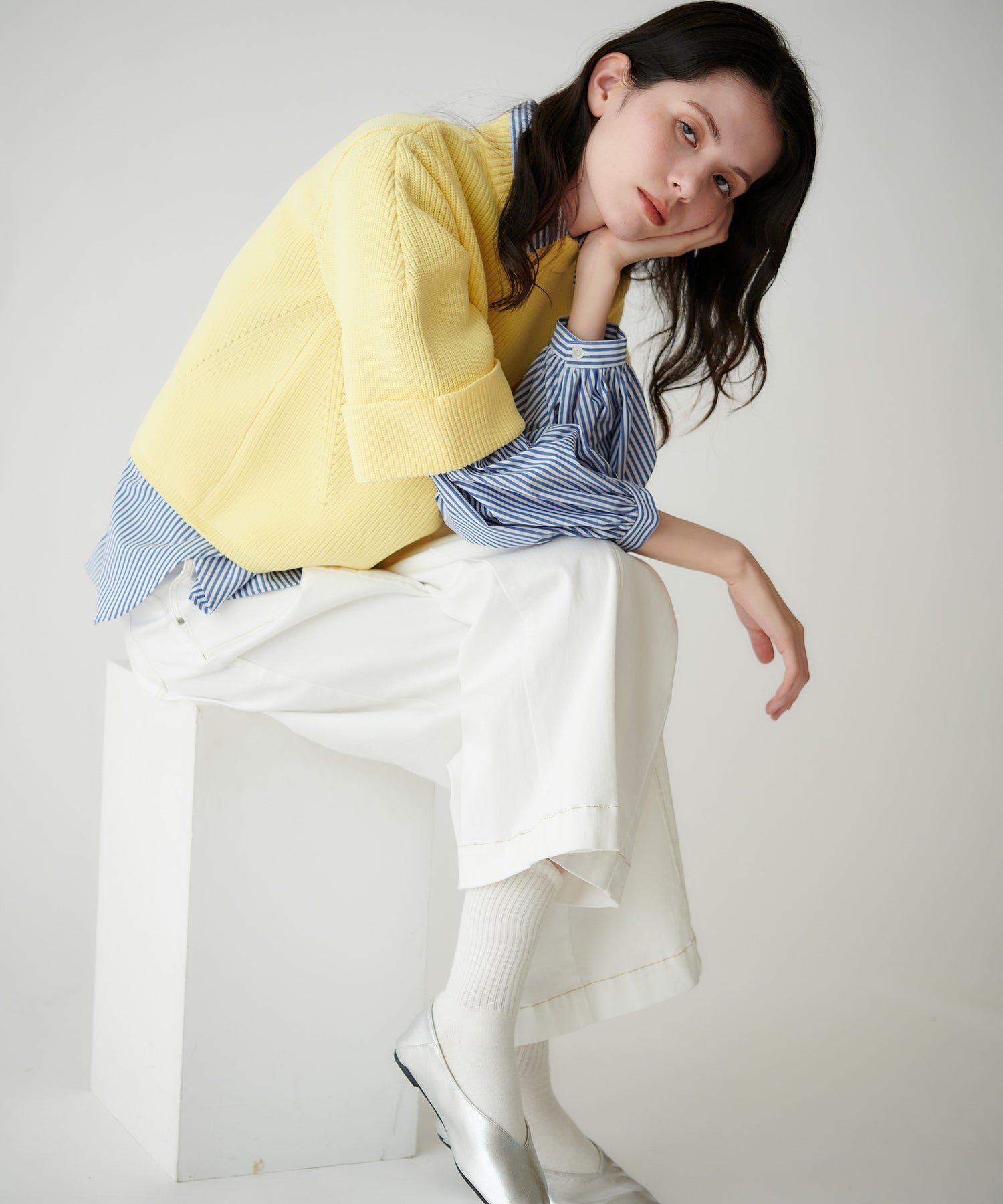 シャツやブラウスをレイヤードして、袖や裾からのぞかせた着こなしがおすすめ。デニムスカートやチノパンツと合わせて、抜け感のある大人カジュアルに。