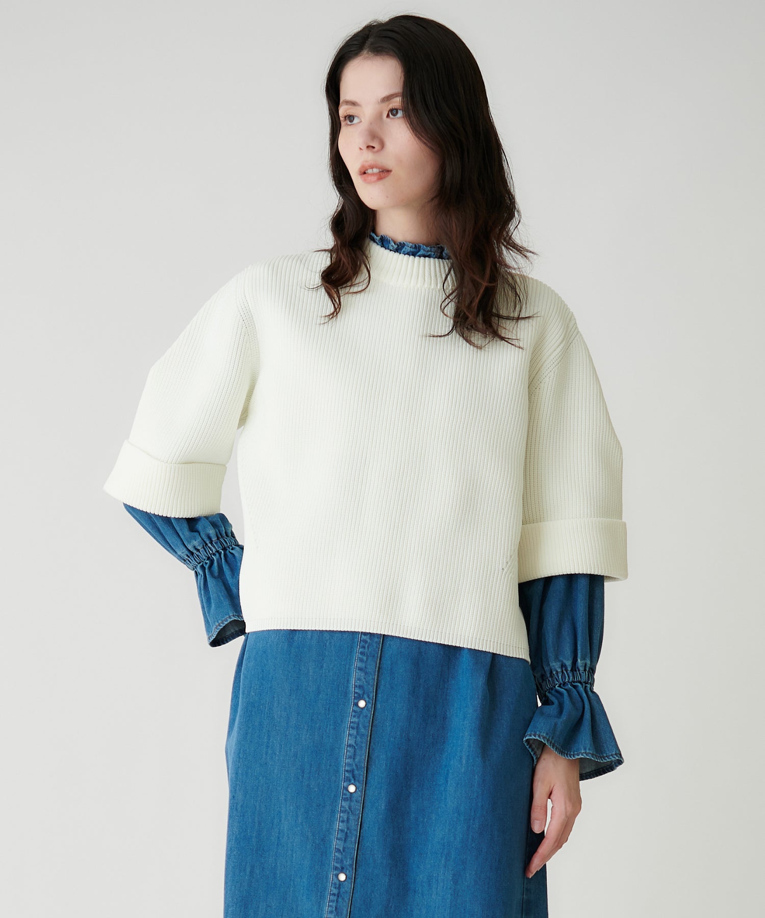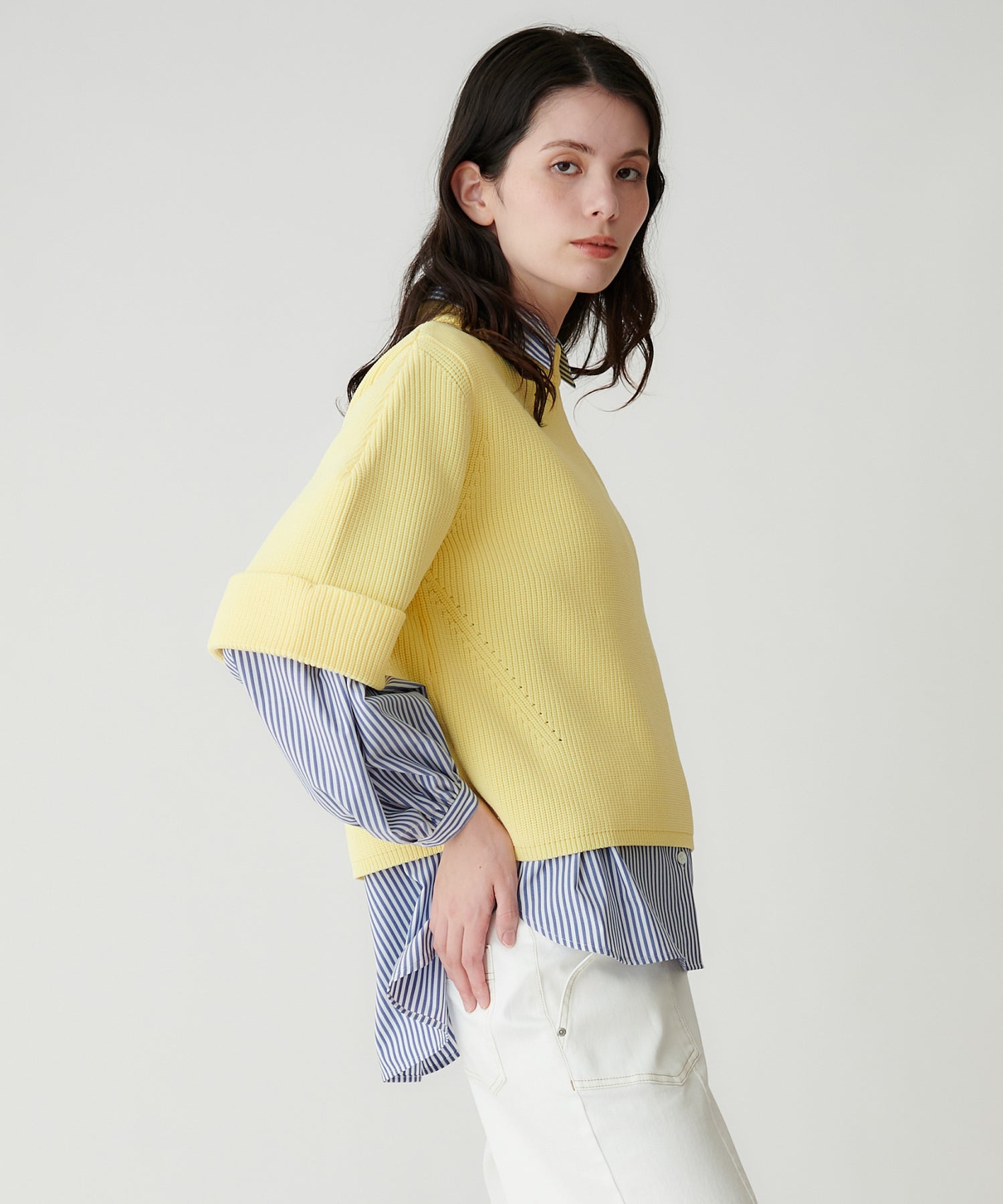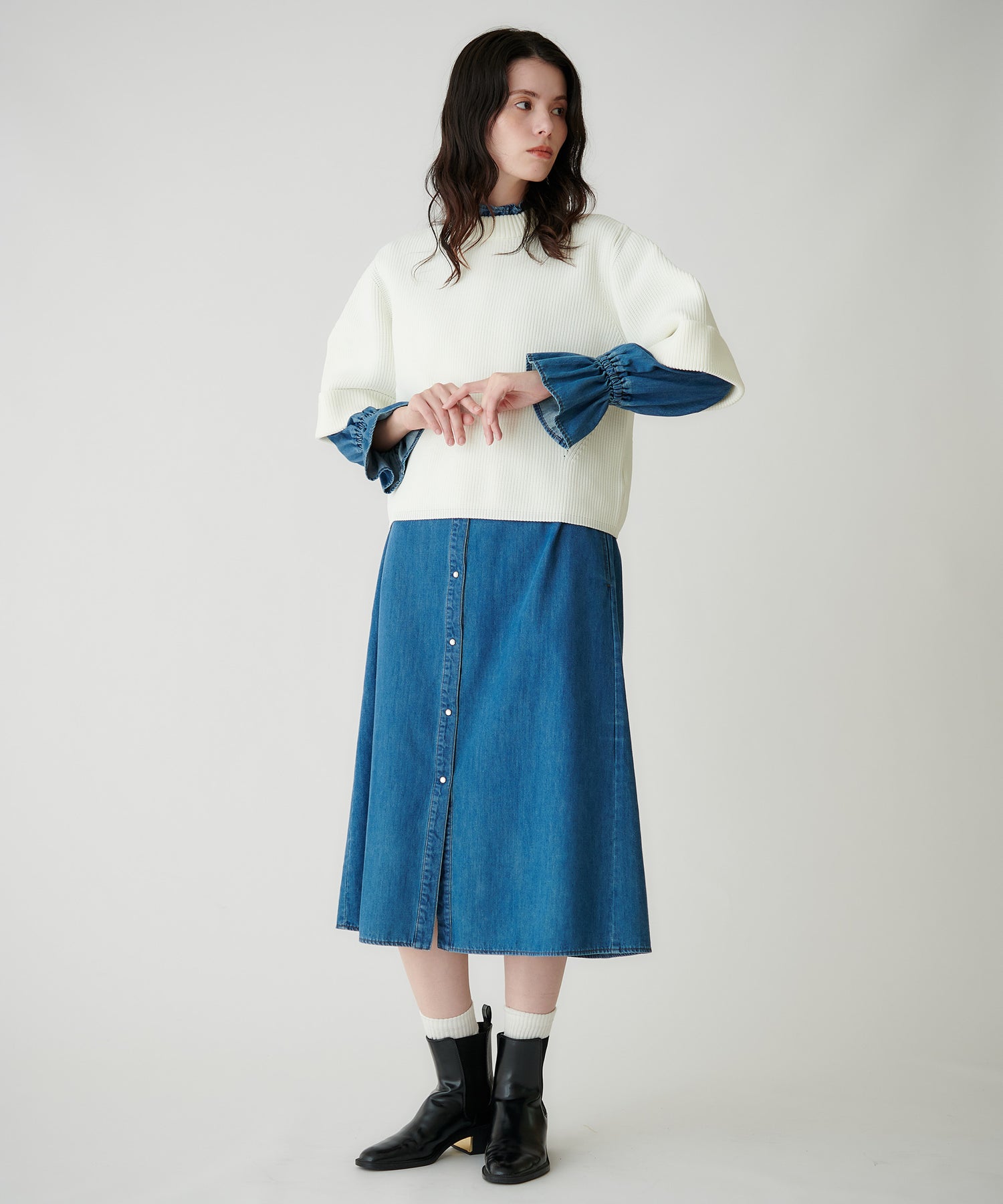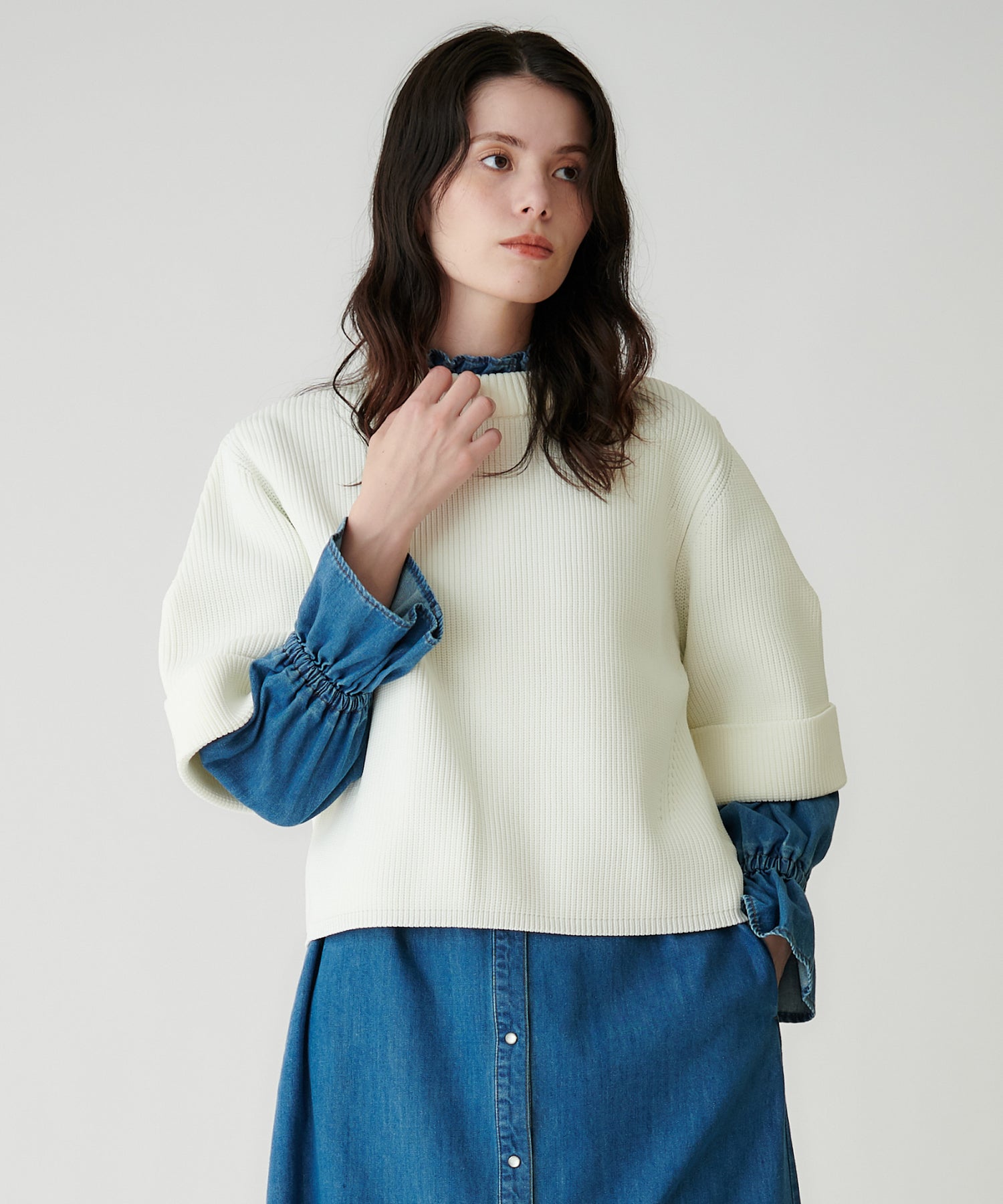 シャツやブラウスをレイヤードして、袖や裾からのぞかせた着こなしがおすすめ。デニムスカートやチノパンツと合わせて、抜け感のある大人カジュアルに。