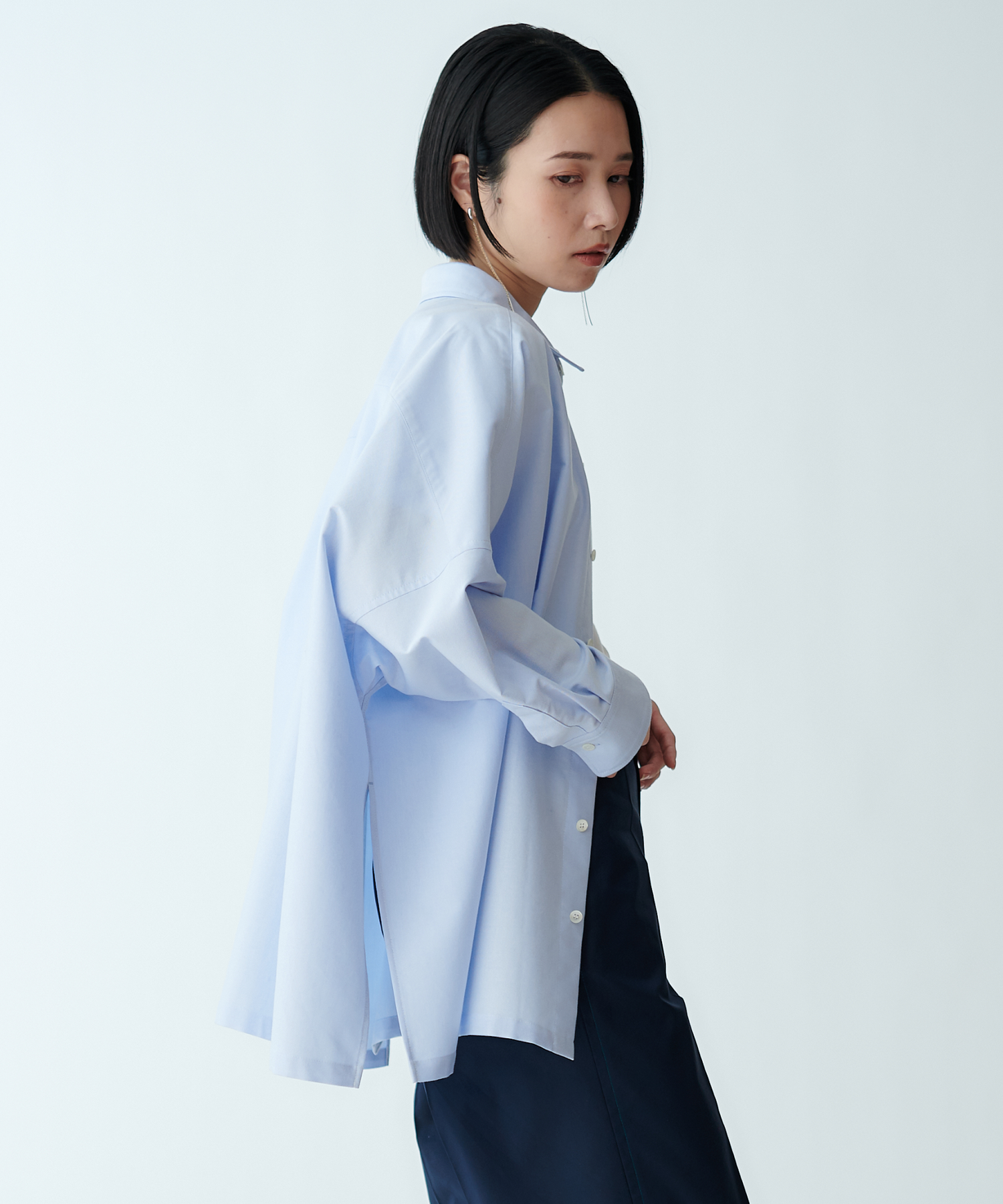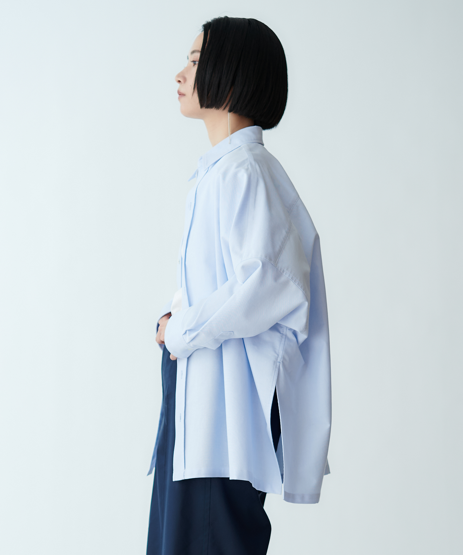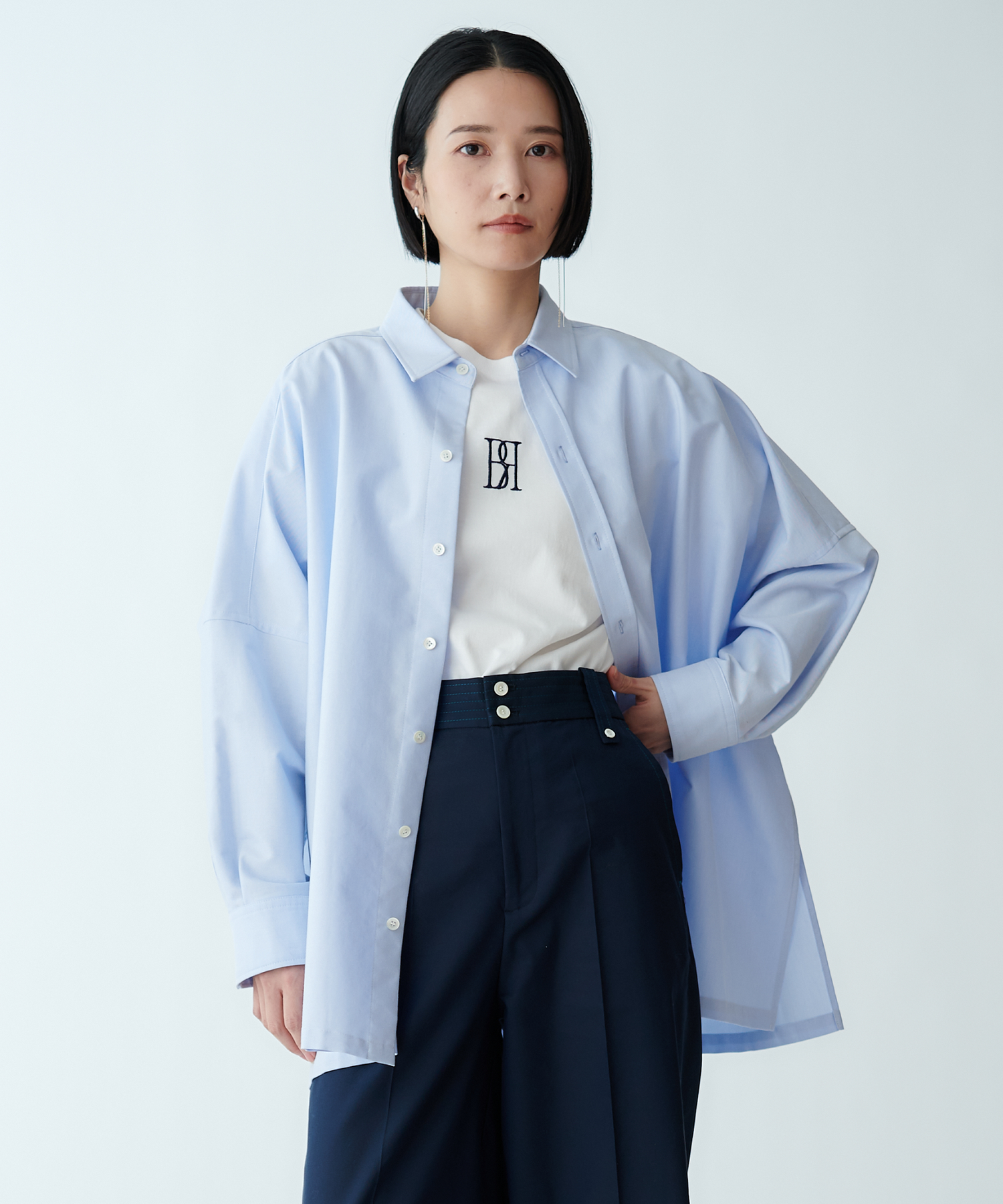 羽織りとしても使えるオーバーサイズで、ラフな抜け感を演出します。