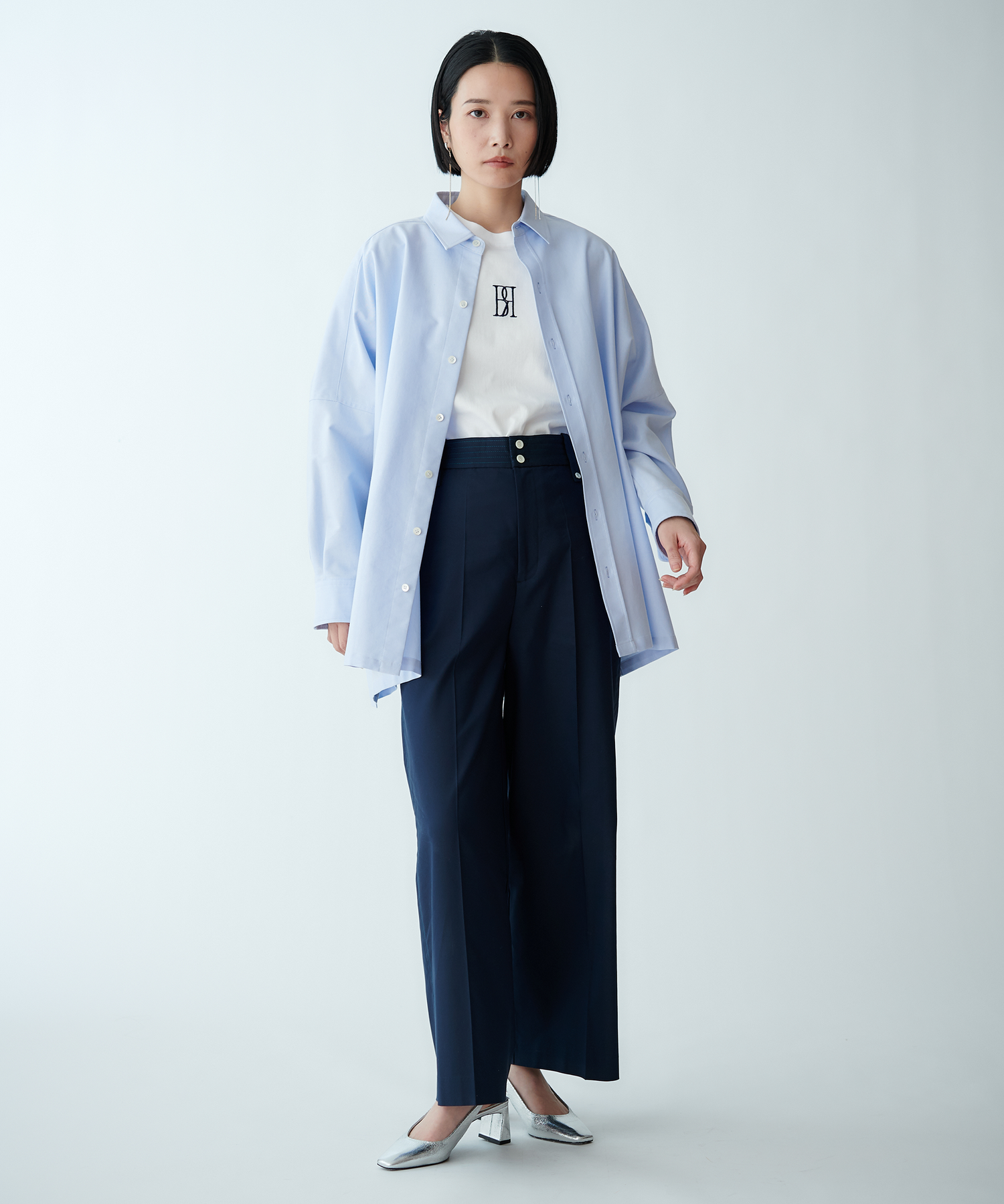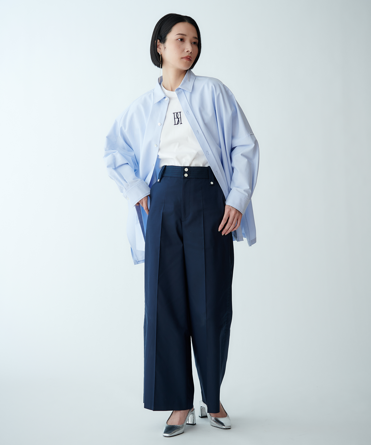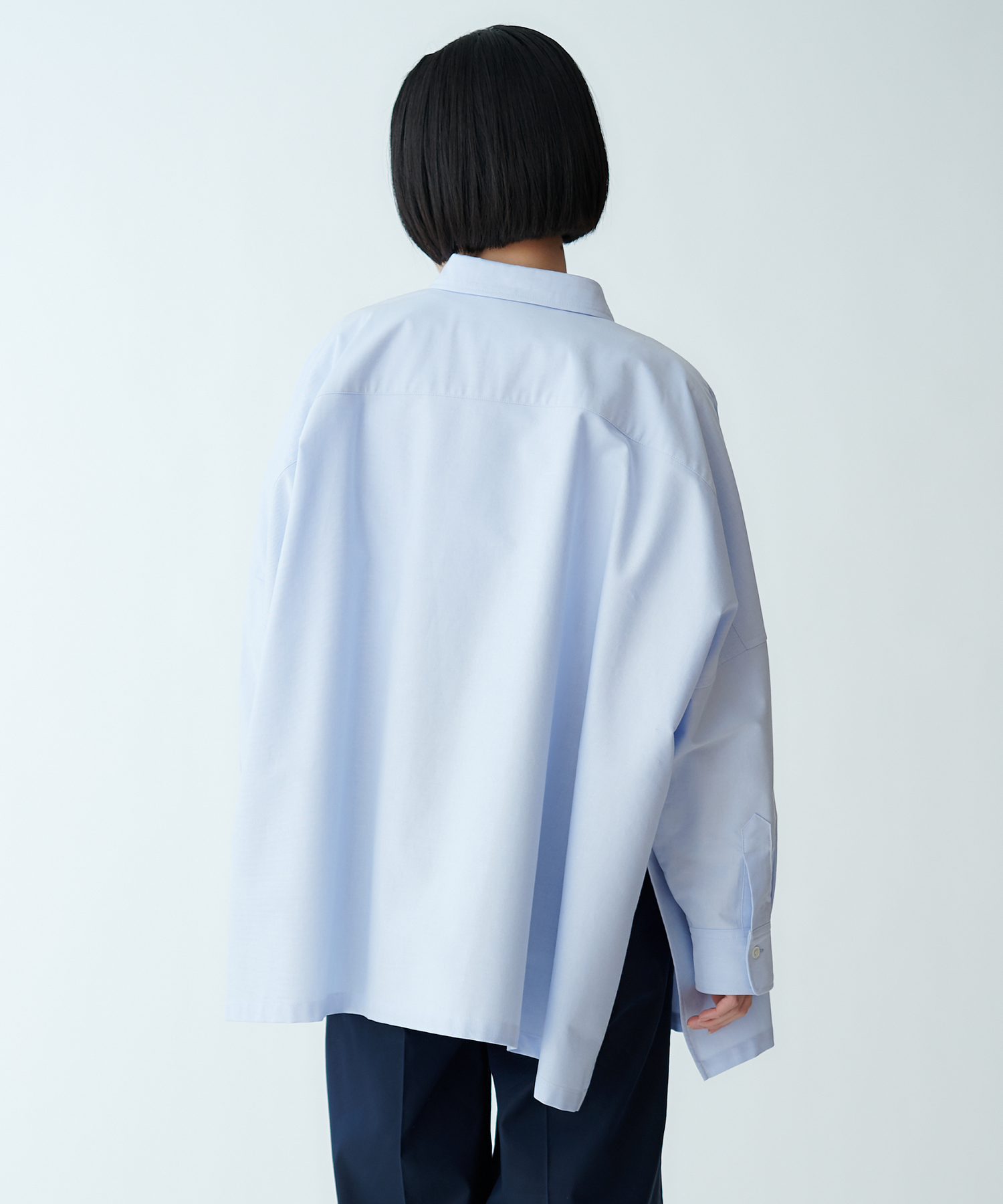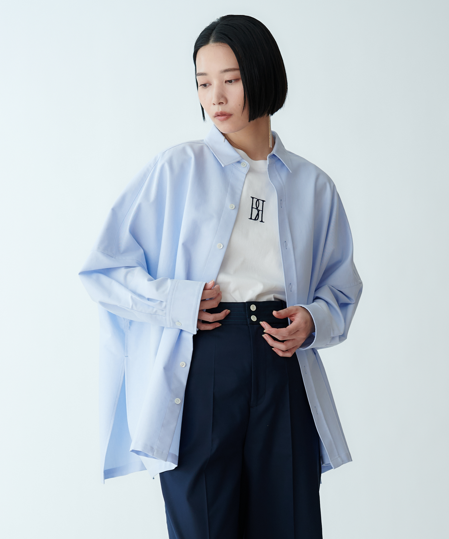 羽織りとしても使えるオーバーサイズで、ラフな抜け感を演出します。