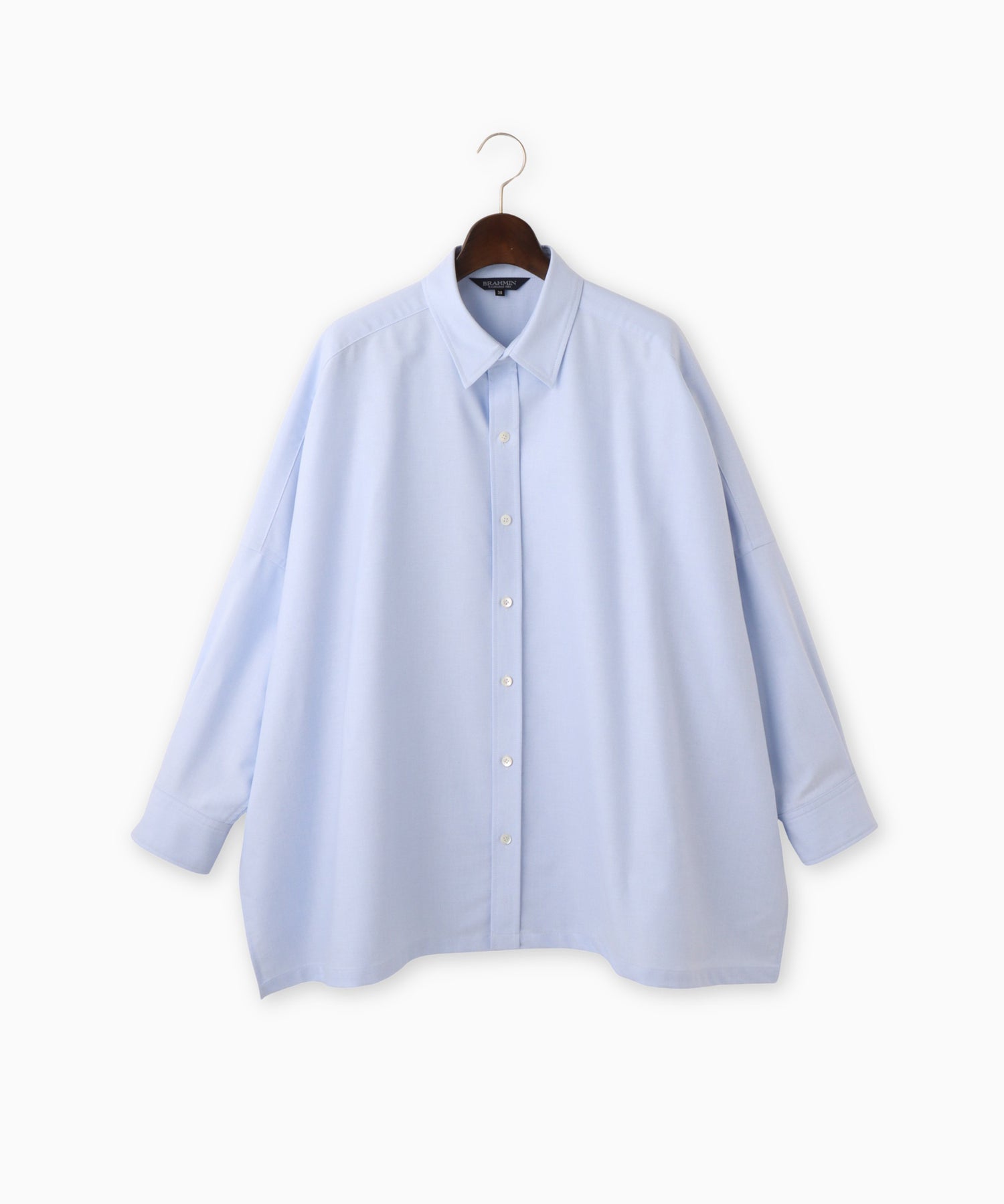 トラッド感のあるオックス生地を使った、ポンチョ風デザインのシャツ。