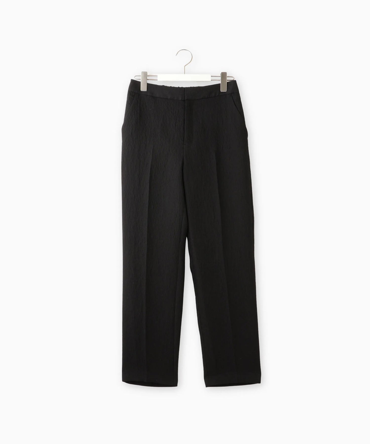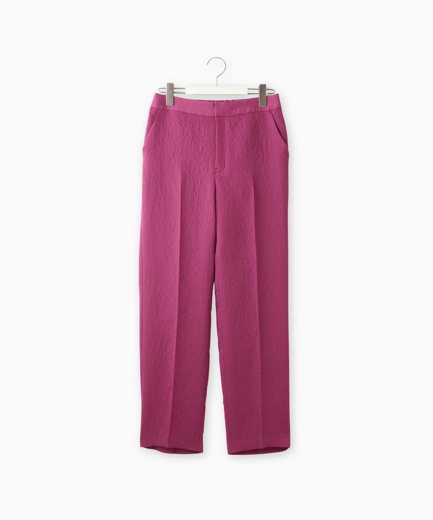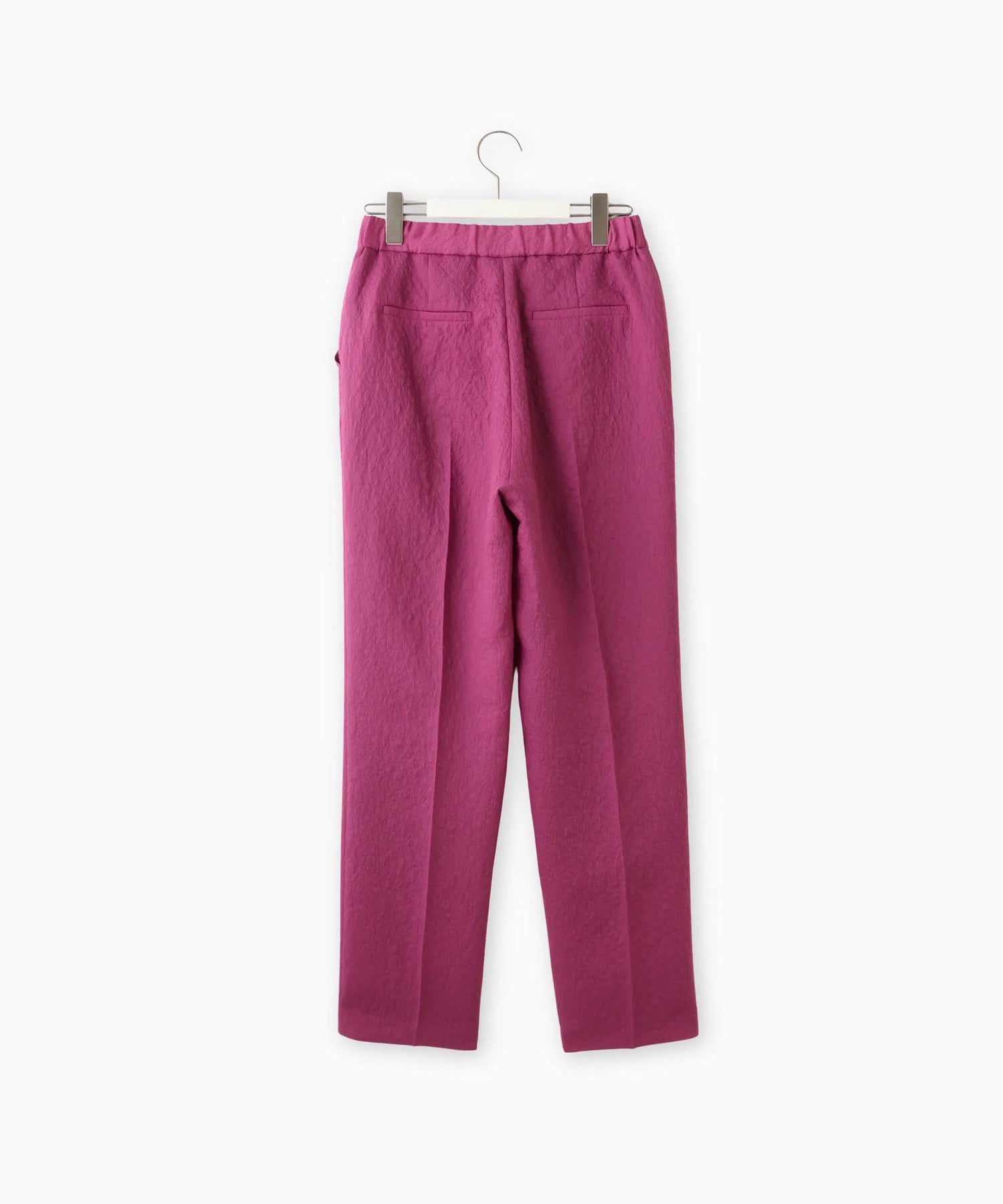 繊細なジャガード織が上品さを際立たせるテーパードパンツ。