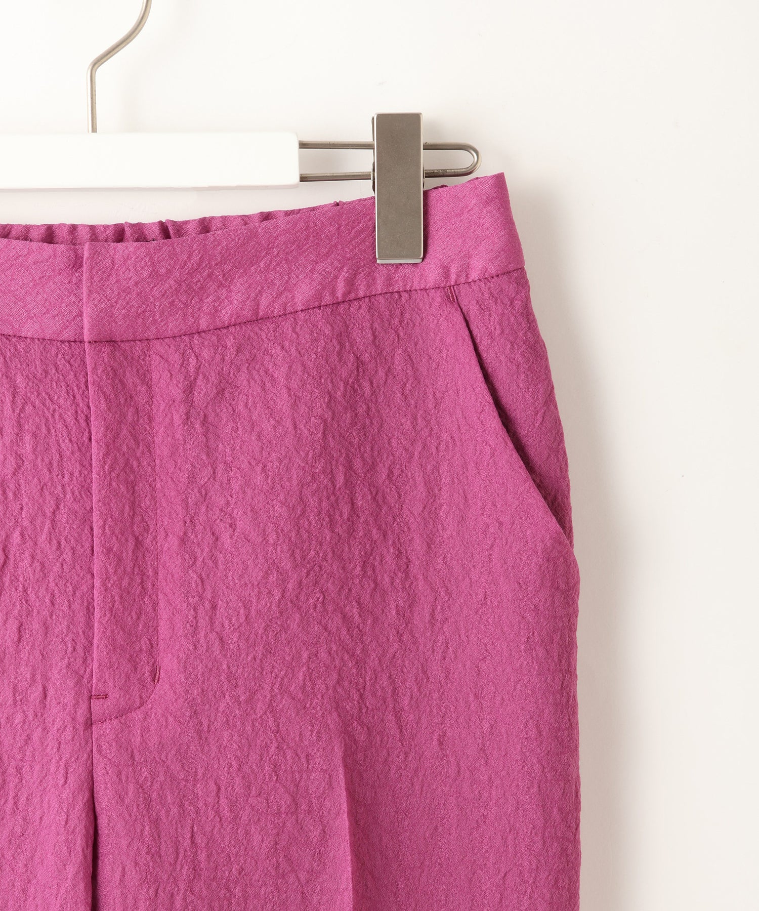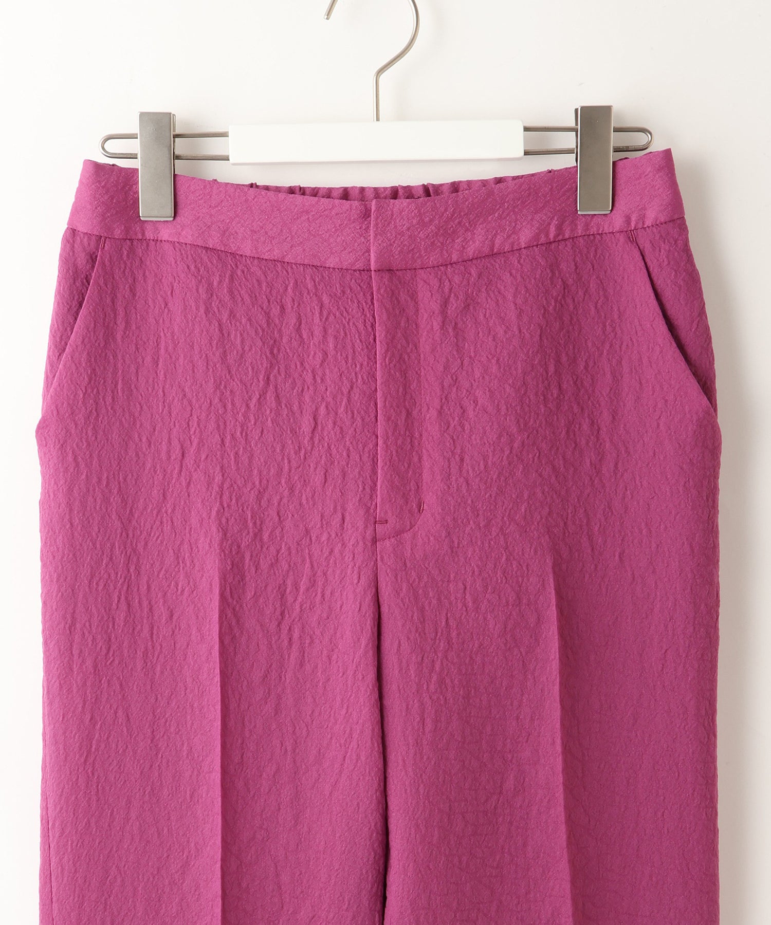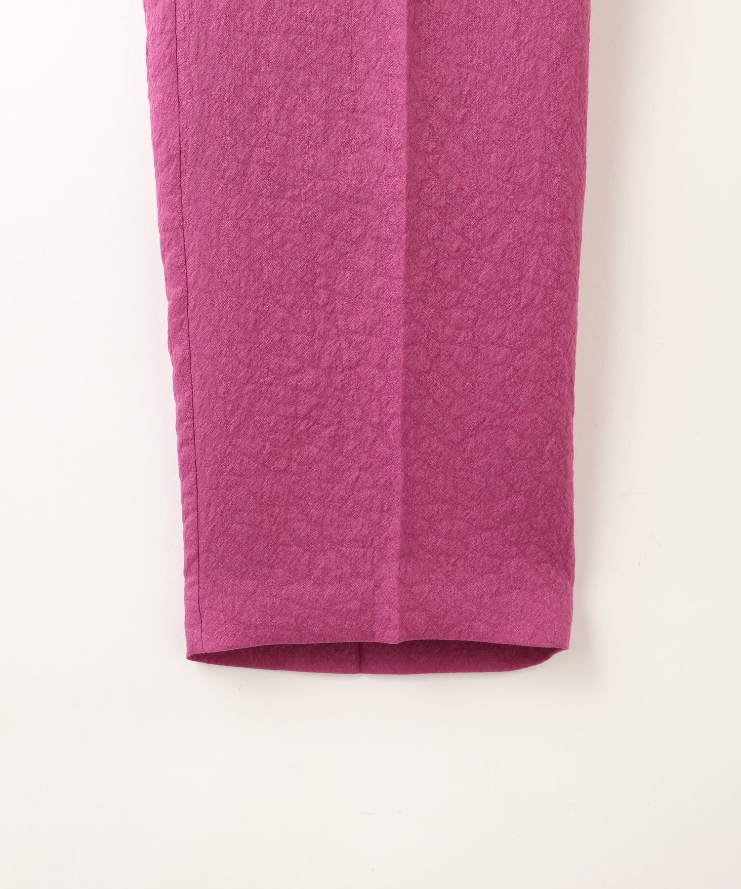 繊細なジャガード織が上品さを際立たせるテーパードパンツ。
