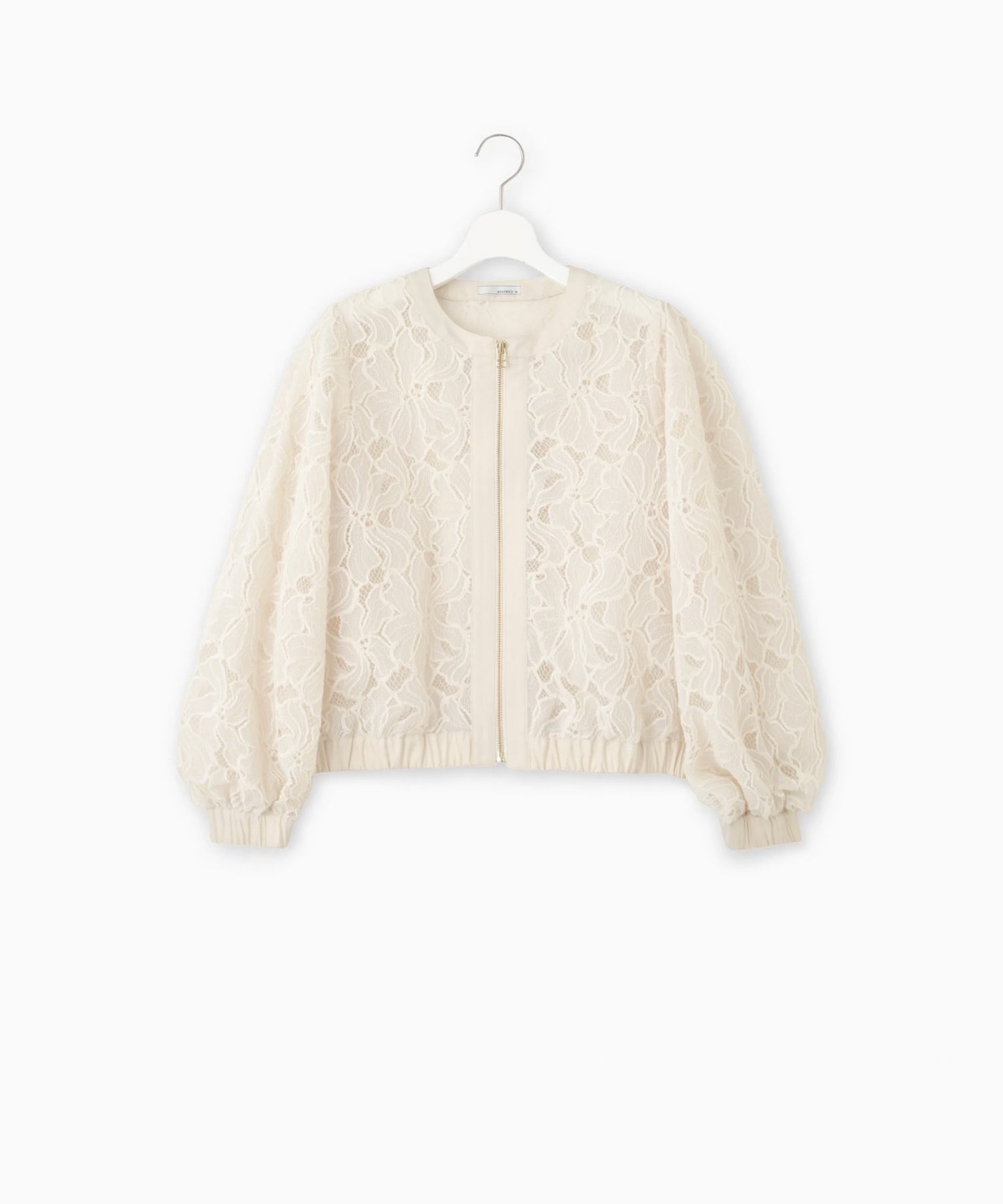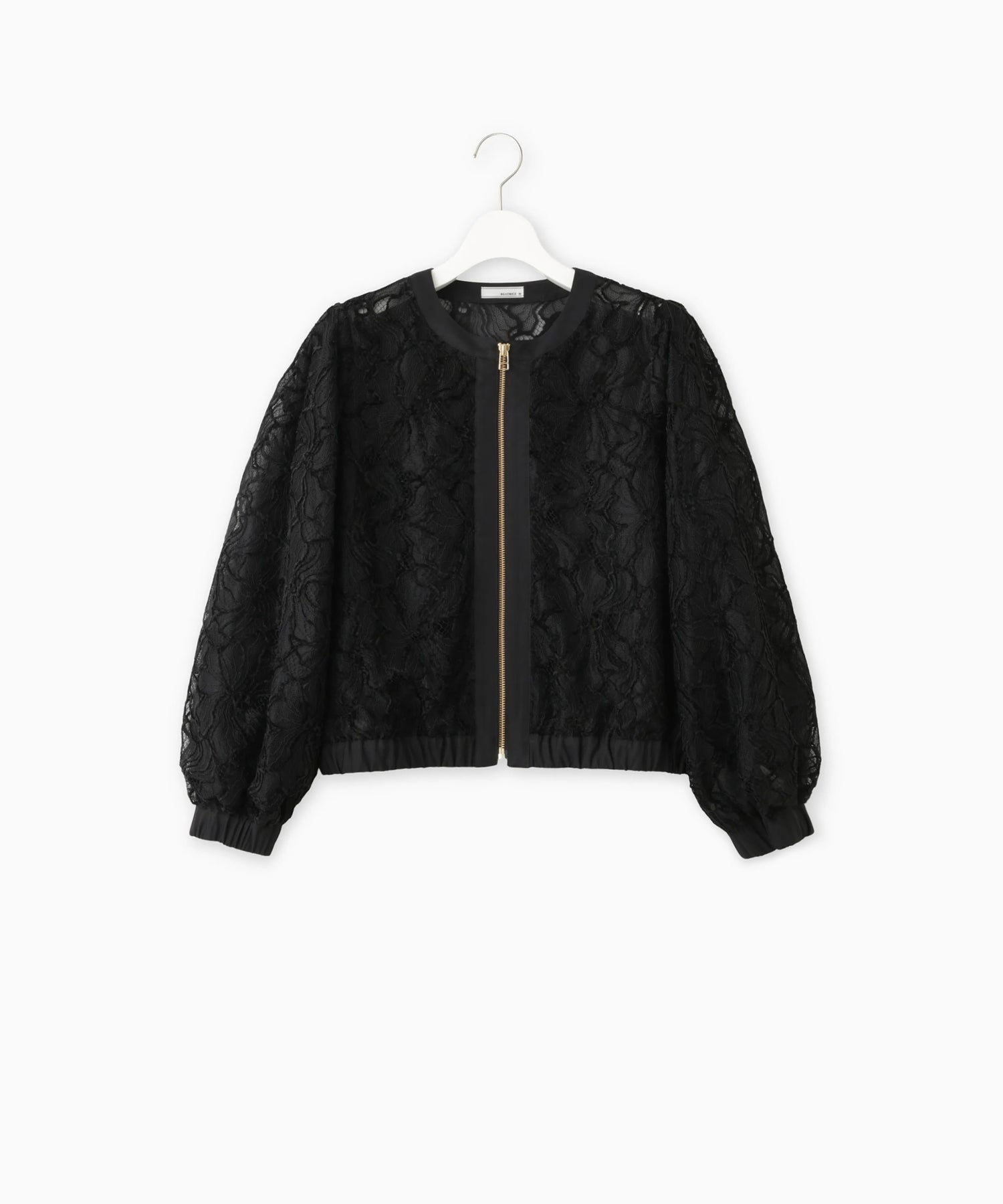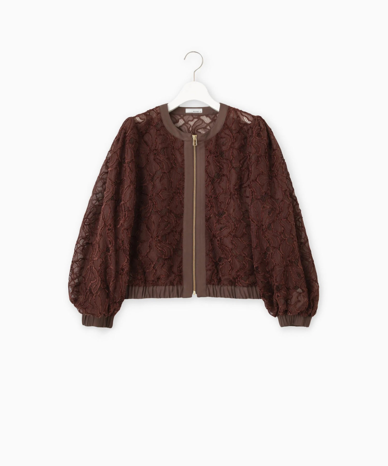 秋冬らしいモール糸を繊細なチュールに絡めたレース素材を、オーガンジーとの二重仕立てで仕上げた上品なブルゾン。