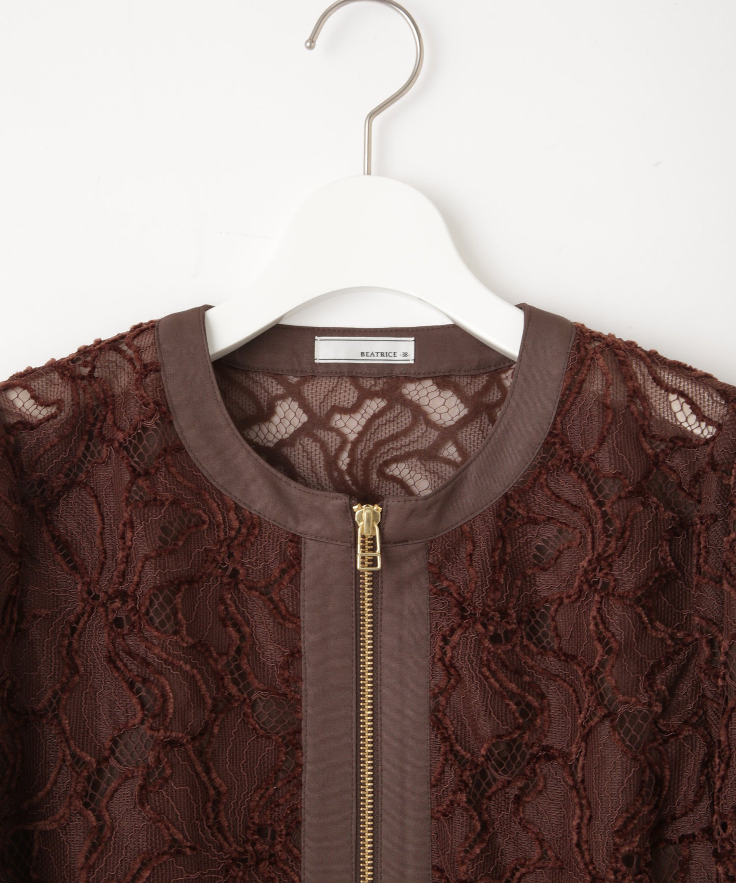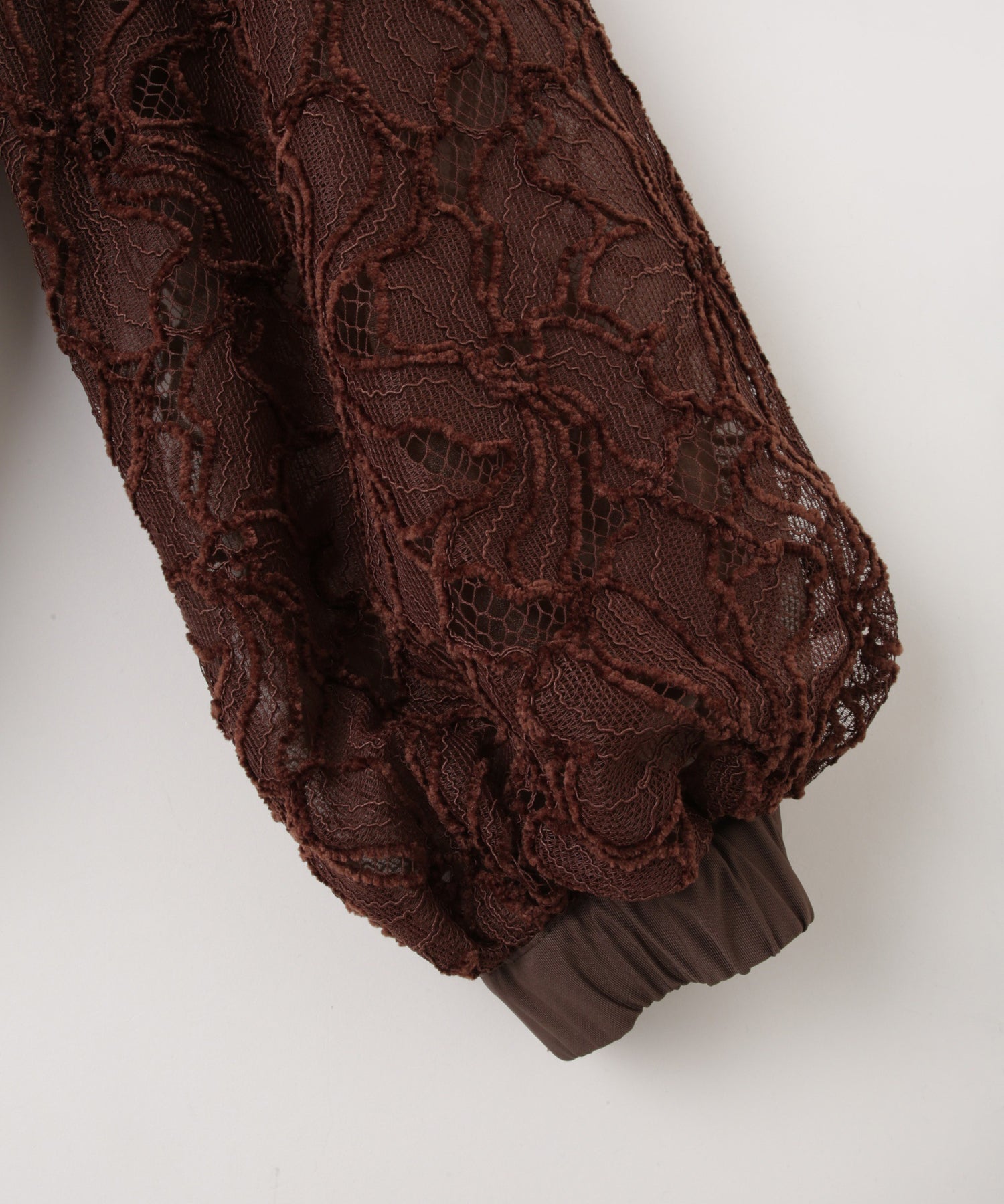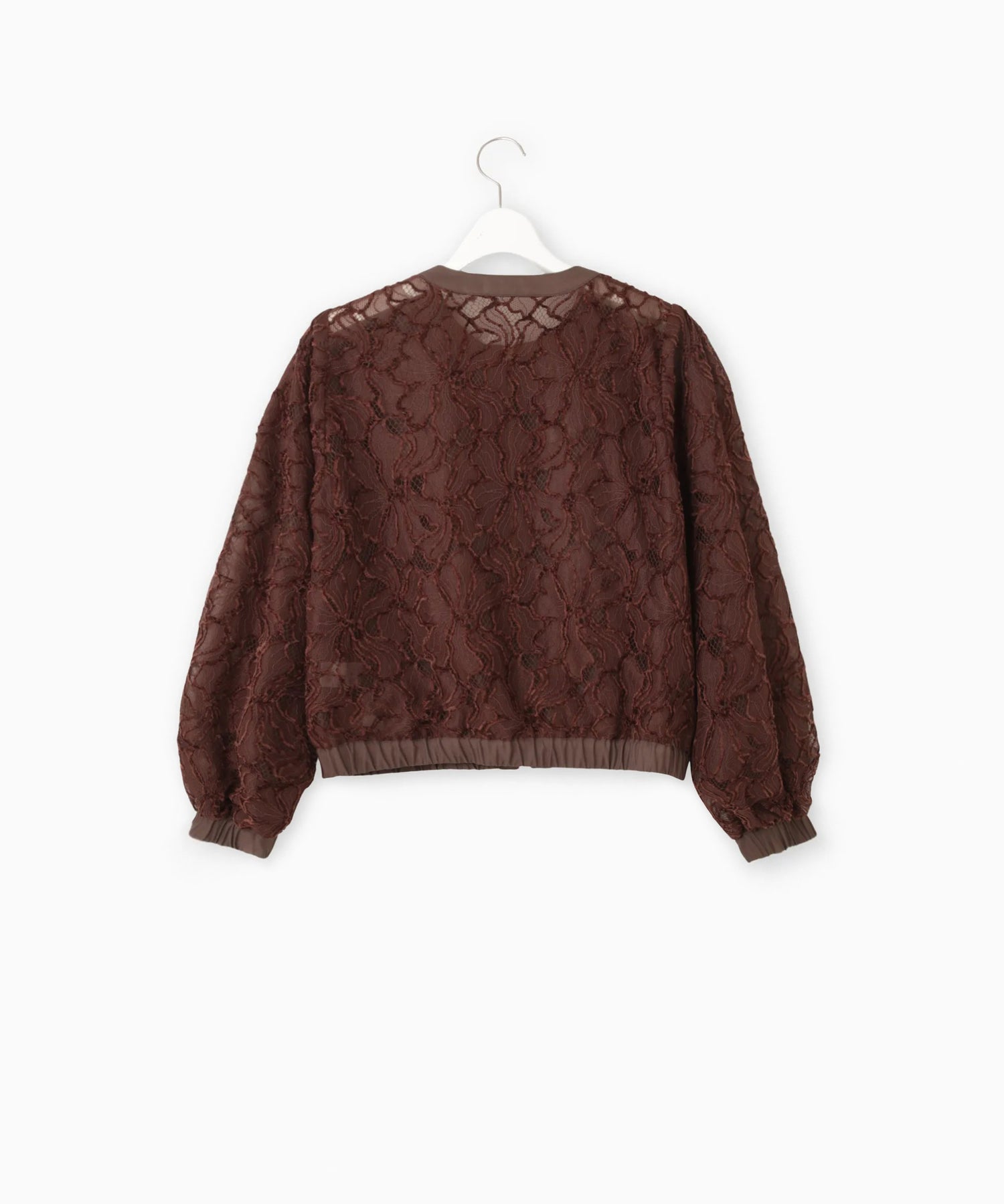 秋冬らしいモール糸を繊細なチュールに絡めたレース素材を、オーガンジーとの二重仕立てで仕上げた上品なブルゾン。