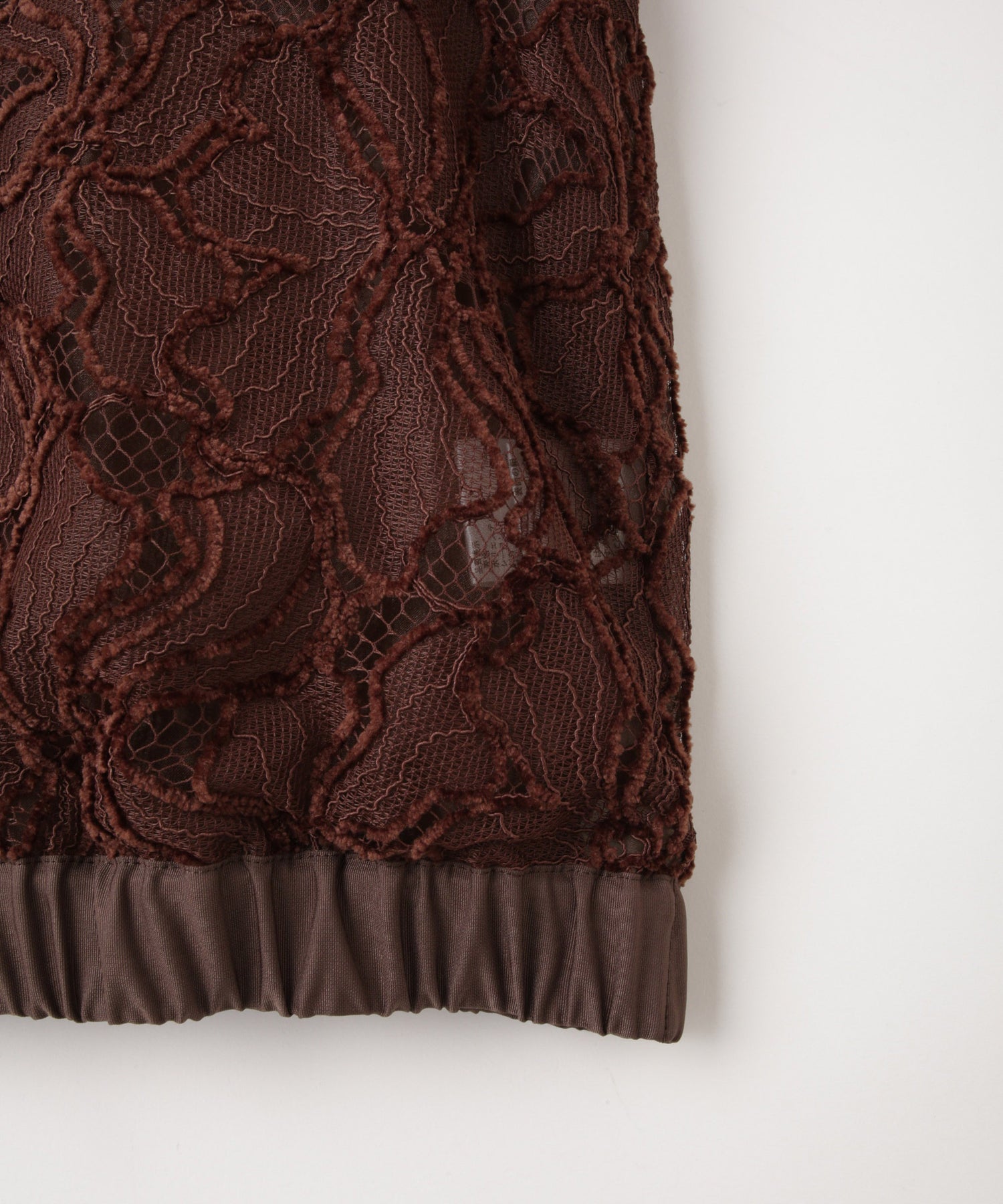 柔らかいチュールにモール糸を絡めたAWらしいモールレースを使用