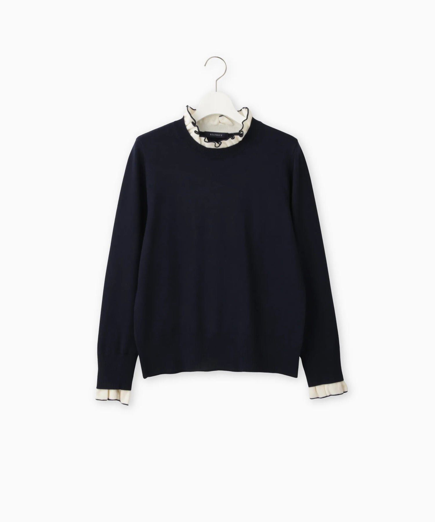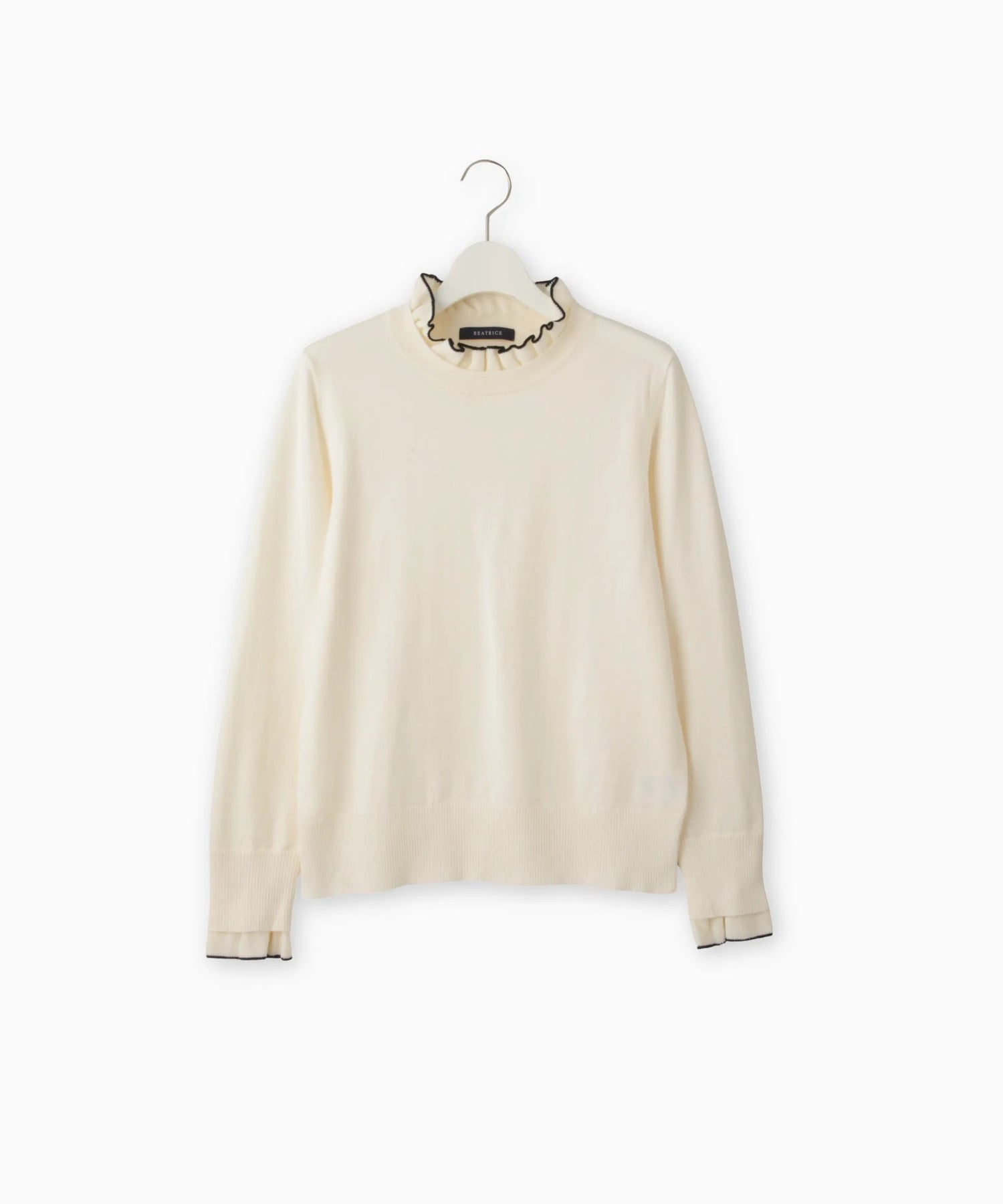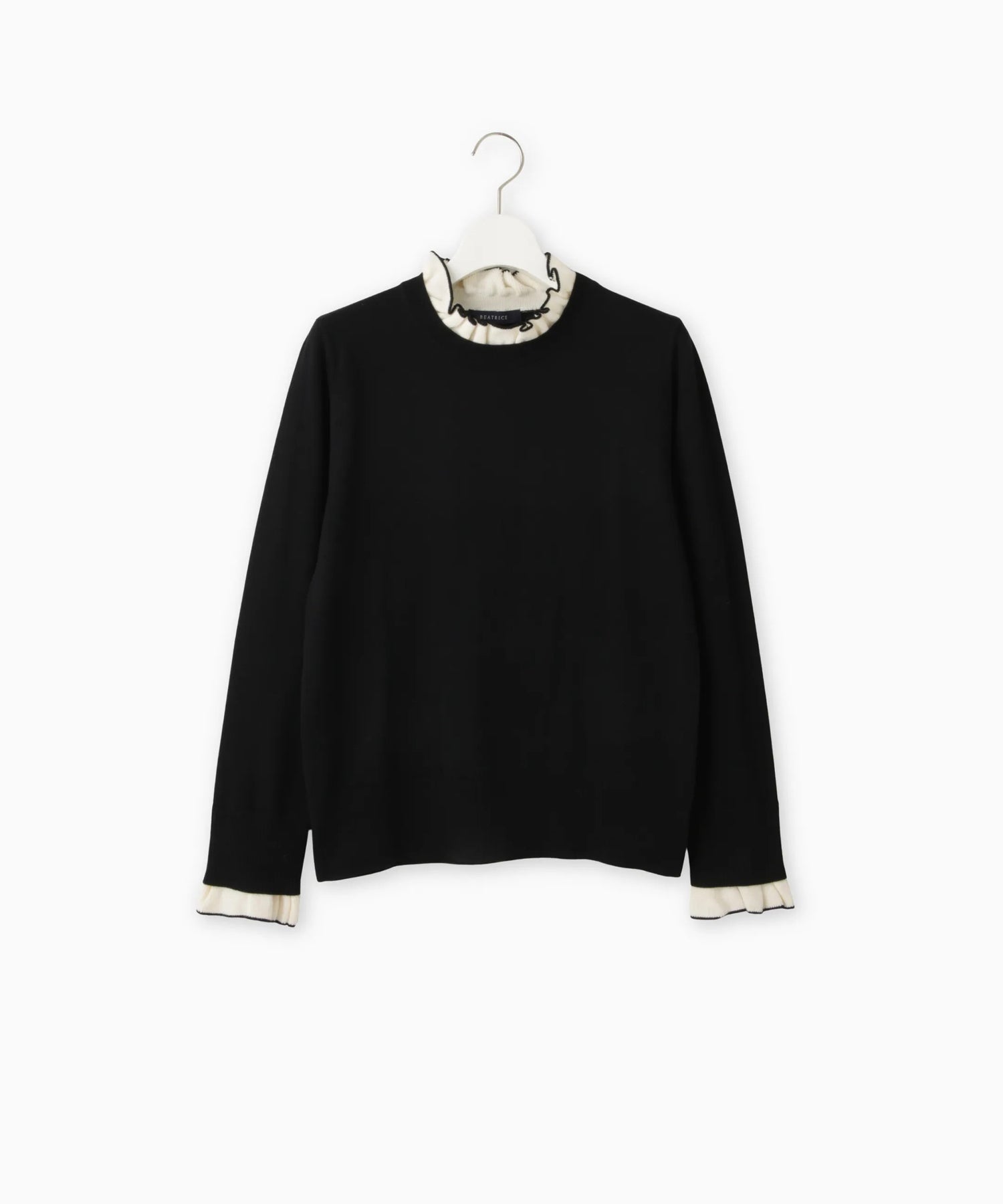 ネックと袖口にあしらったニットフリルが華やかさを添えるプルオーバー。