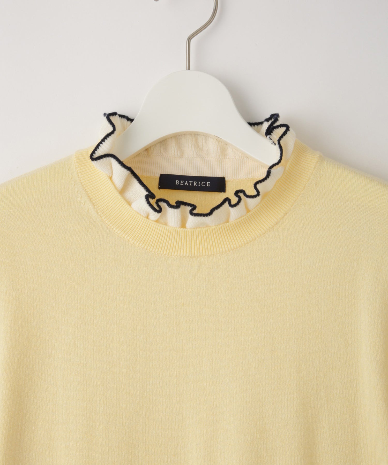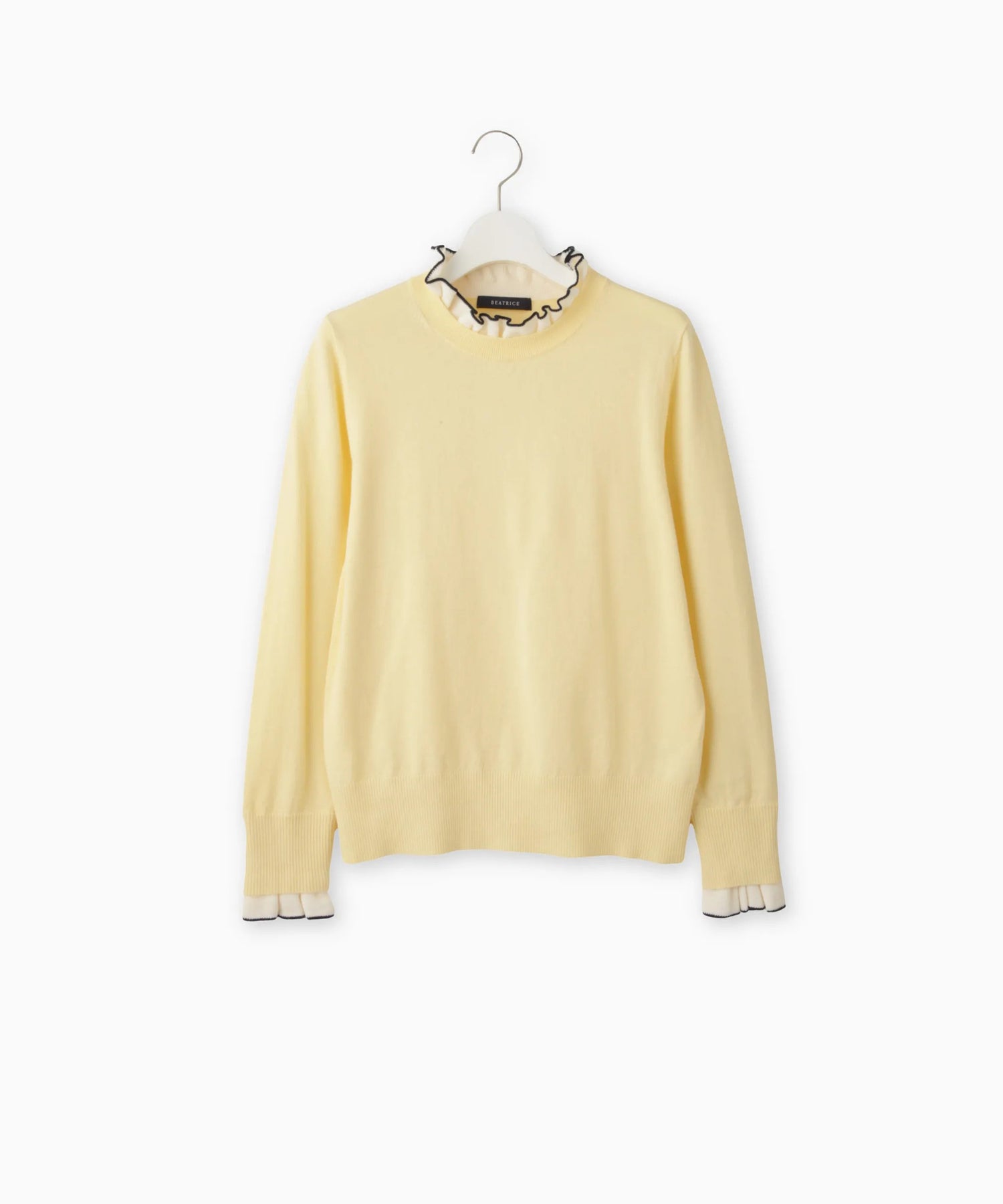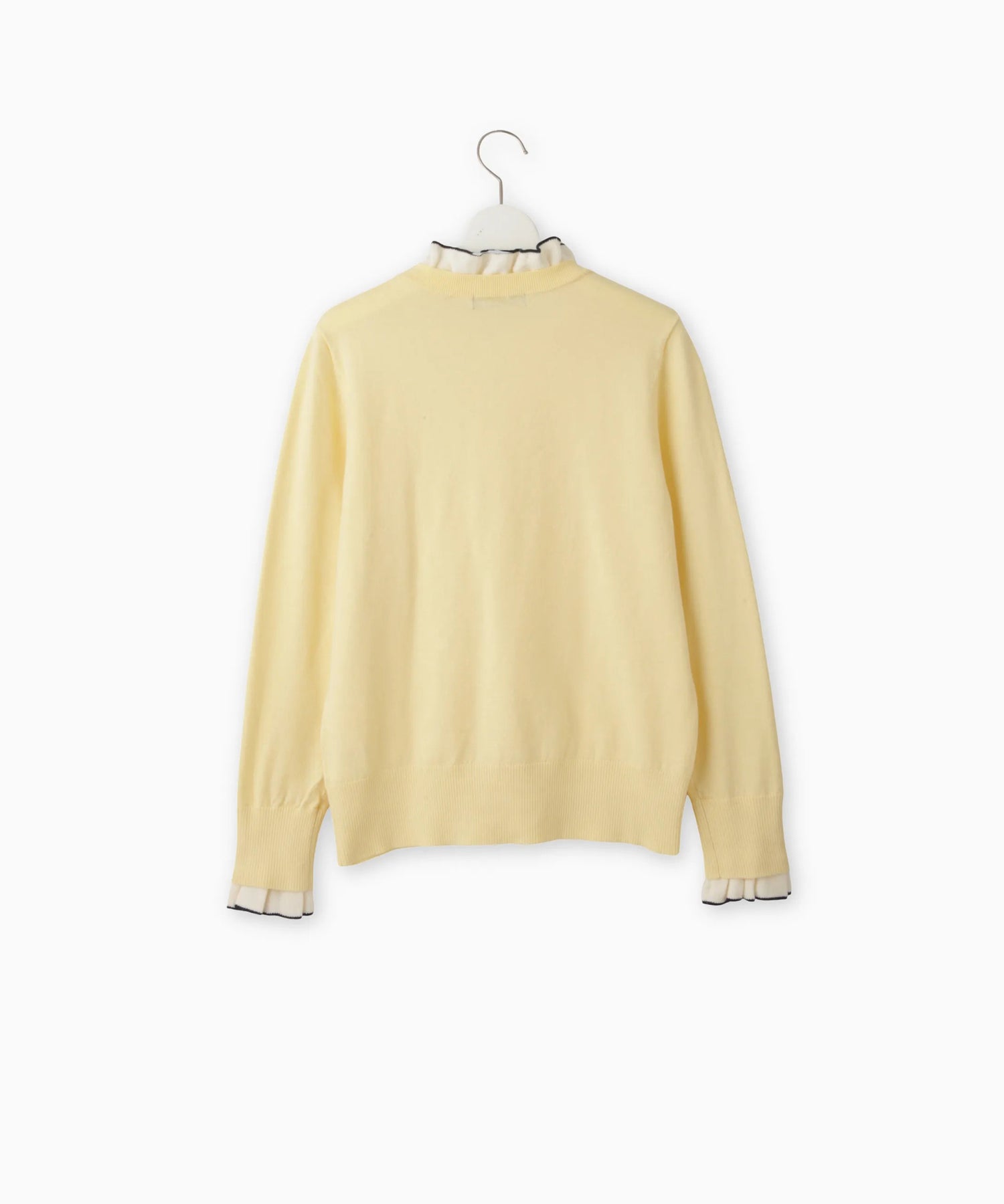 ネックと袖口にあしらったニットフリルが華やかさを添えるプルオーバー。