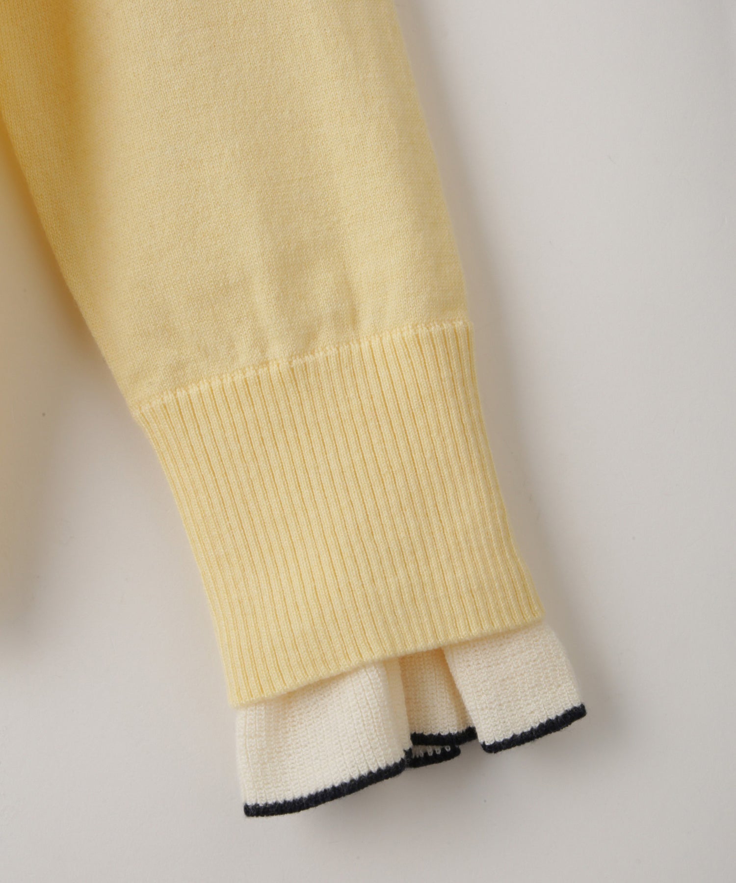 トリミングの配色がアクセントになり、シンプルながらも上品で存在感のあるデザインです。1枚で着映えする主役トップスとして活躍します。