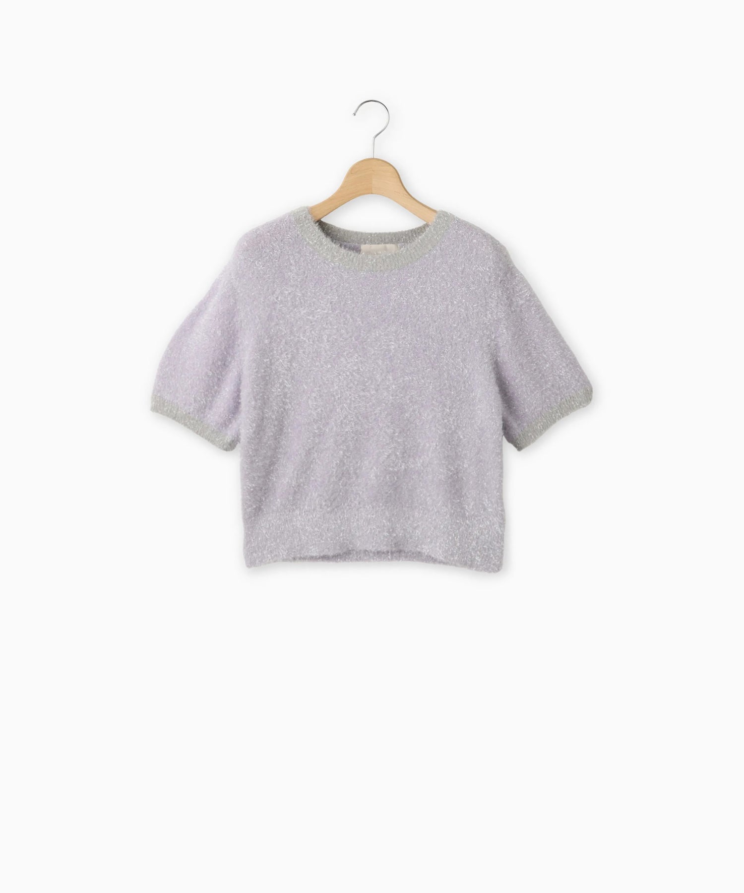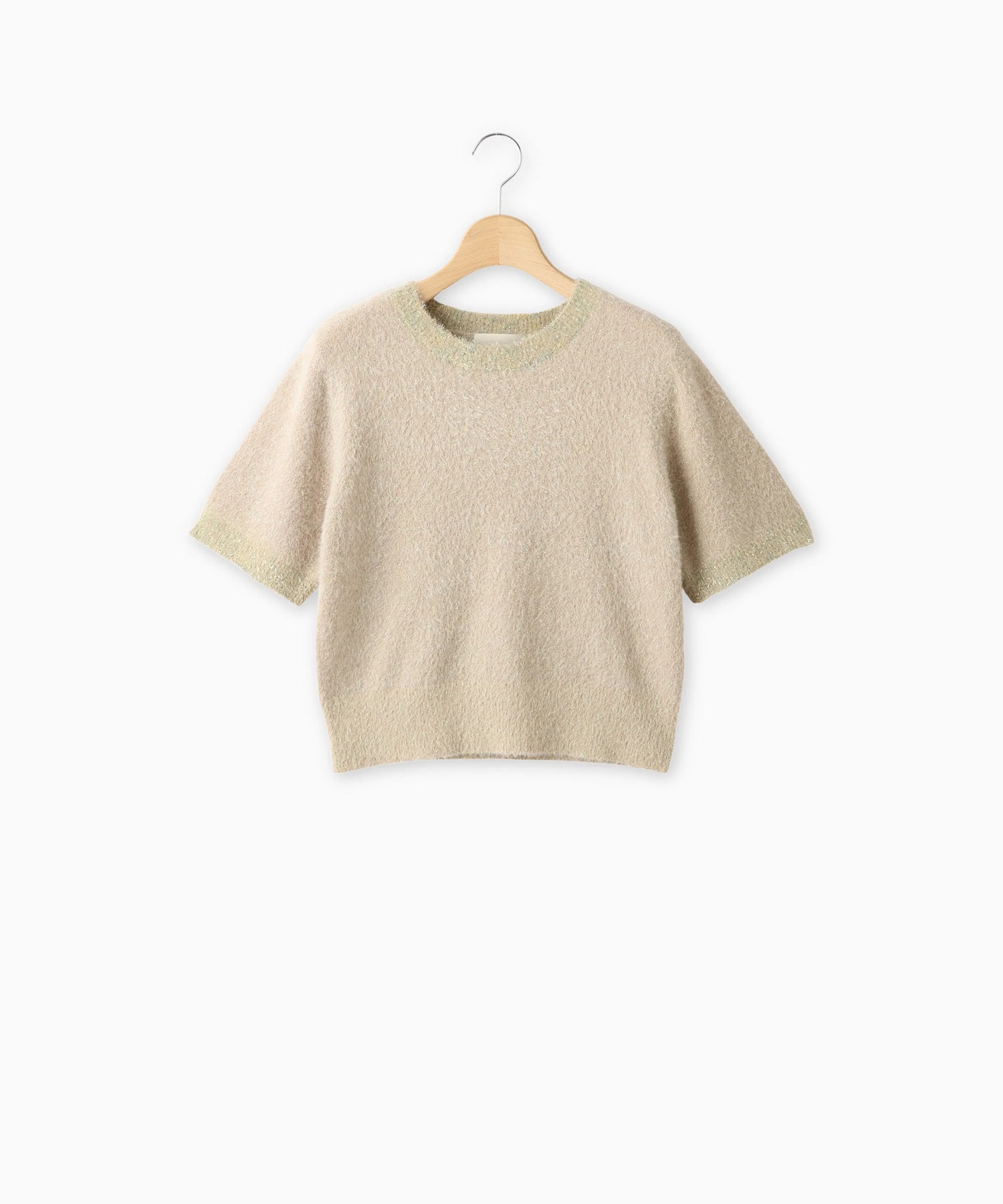 衿ぐりと袖口にあしらったさりげない配色デザインが、シンプルながらもスタイリングに奥行きを与える5分袖ニット。