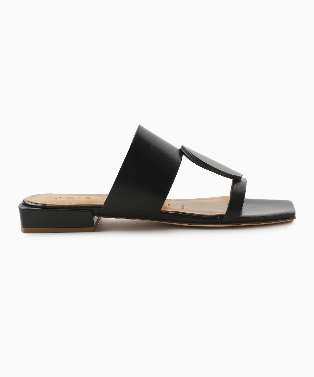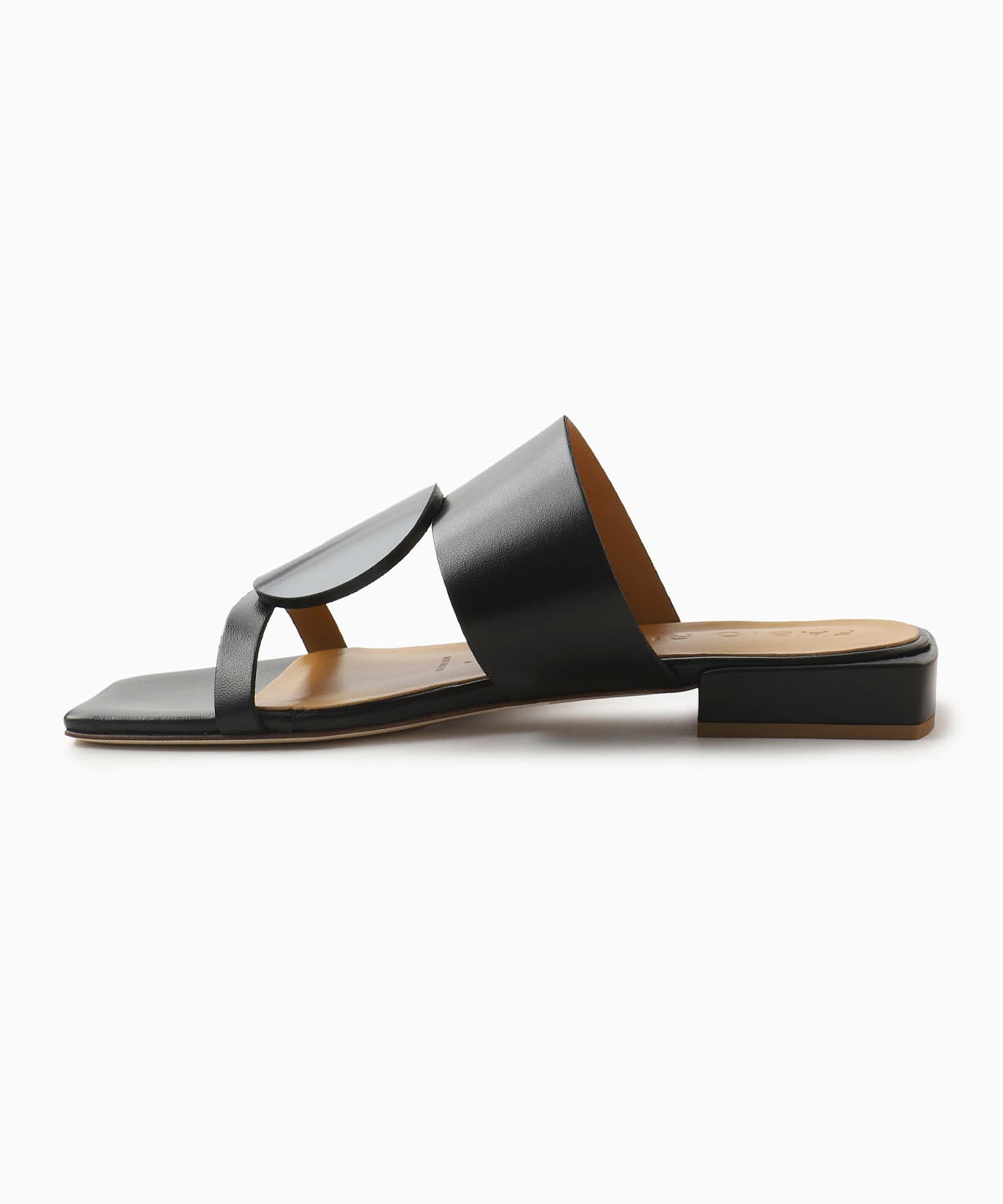 アッパーのデザインが目を惹くフラットサンダル。フラットソールで歩き易さ抜群の一点。デイリーに活躍すること間違いなしの1足です。デニムなどのカジュアルスタイルからパンツスタイルでモードなスタイリングにも幅広くお使いいただけます。