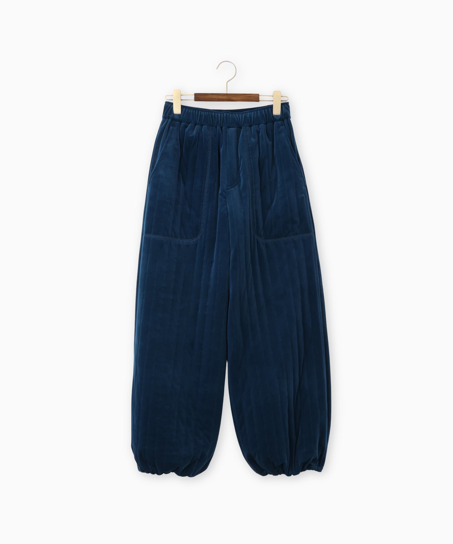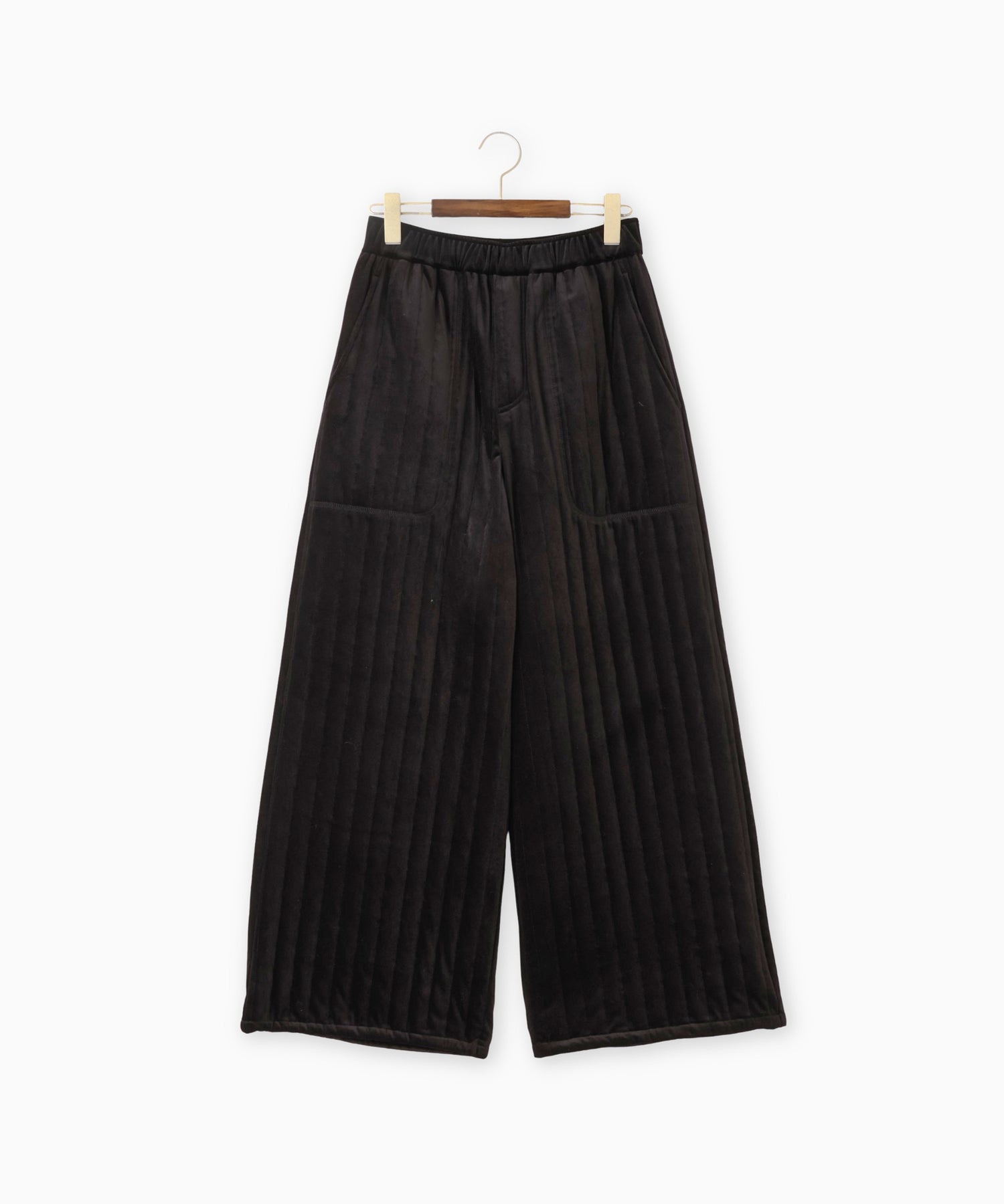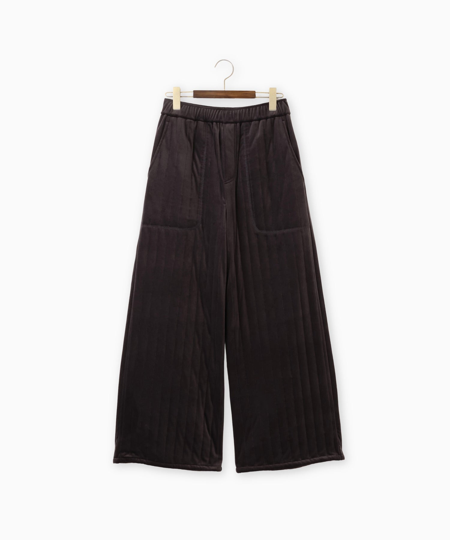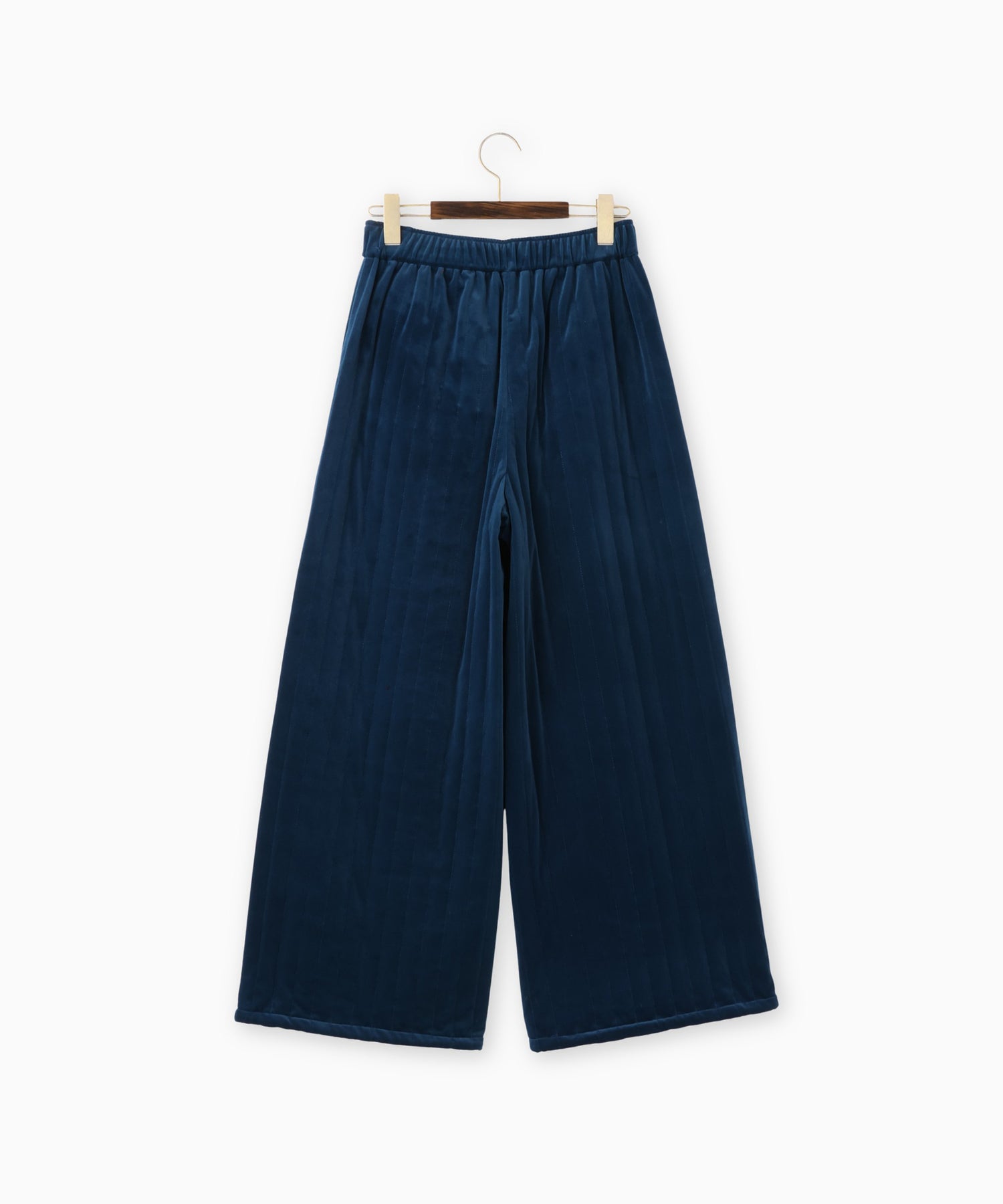 控えめな光沢のベロアと中わたで、見た目も着心地も暖かいパンツ。