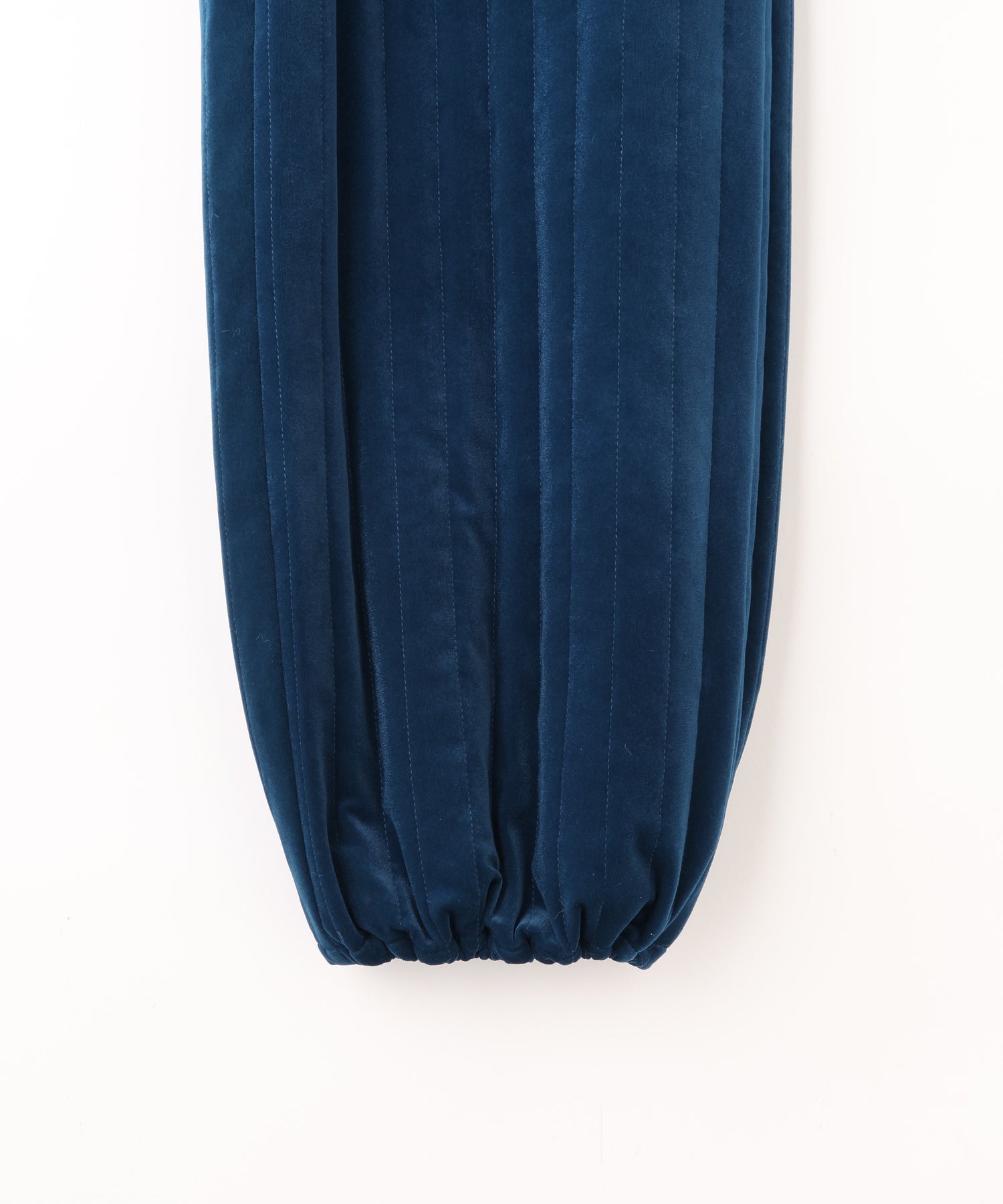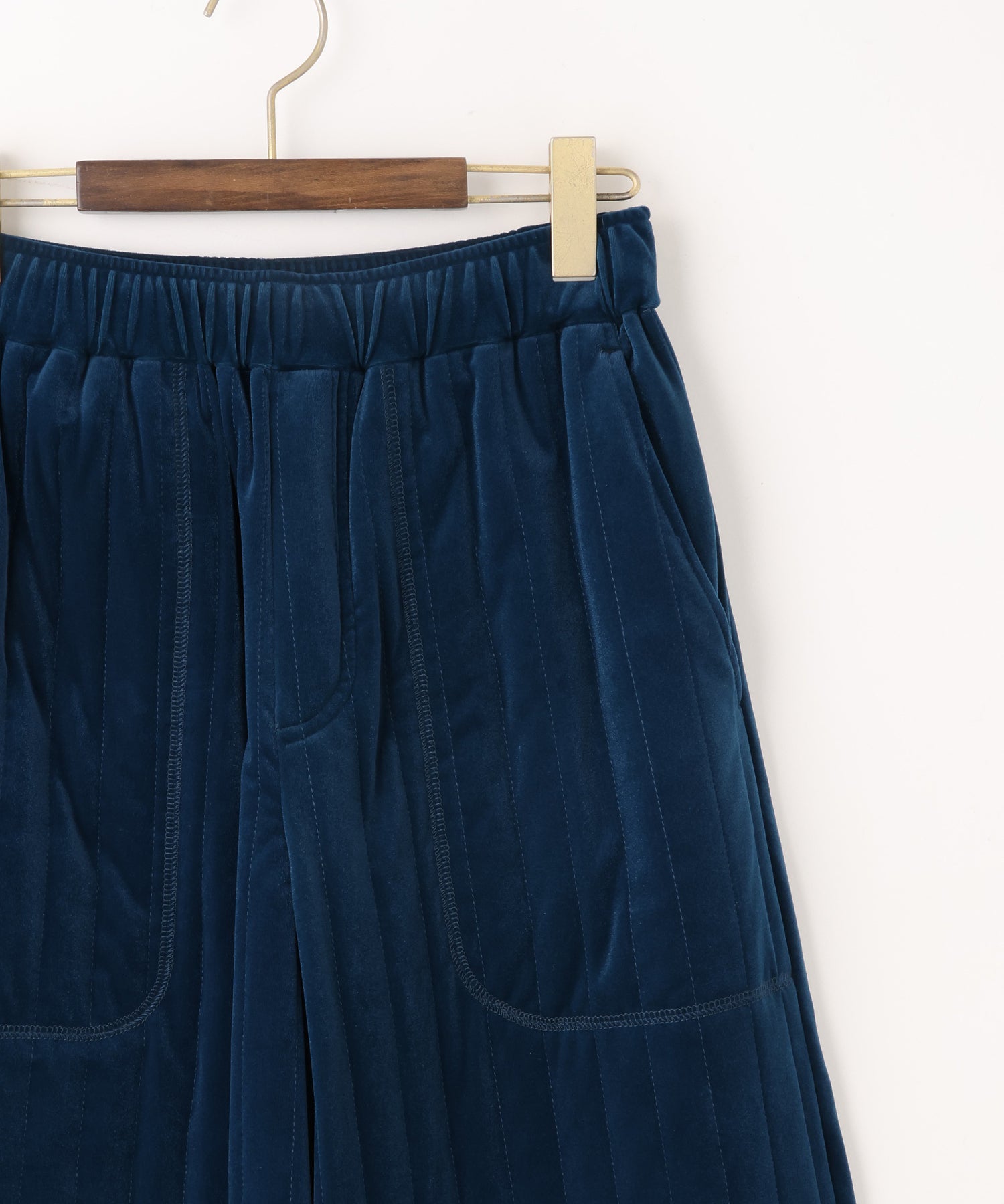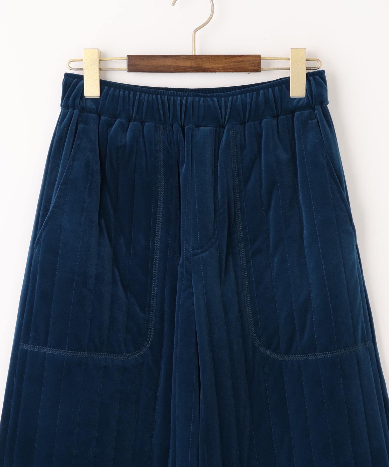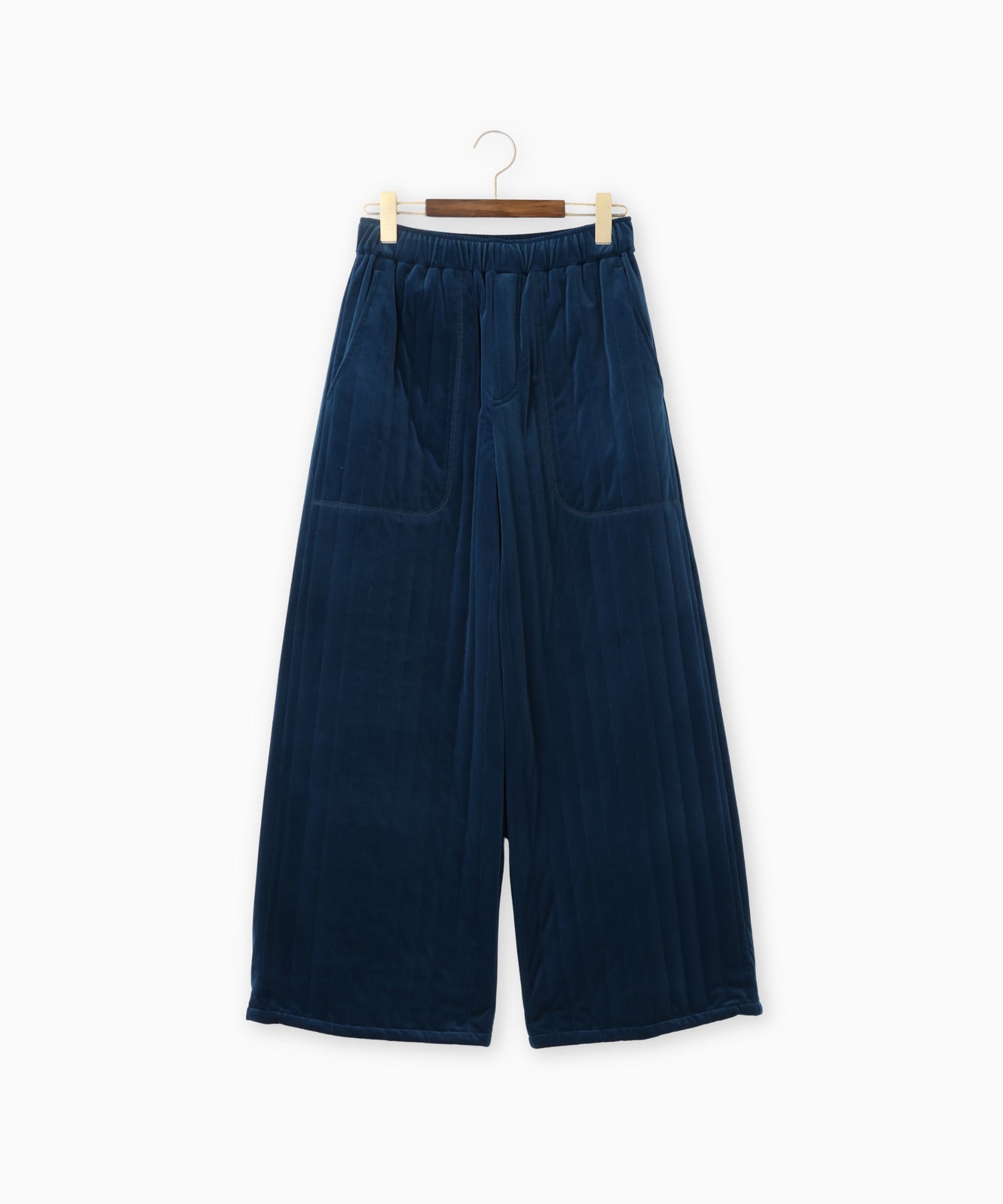 控えめな光沢のベロアと中わたで、見た目も着心地も暖かいパンツ。