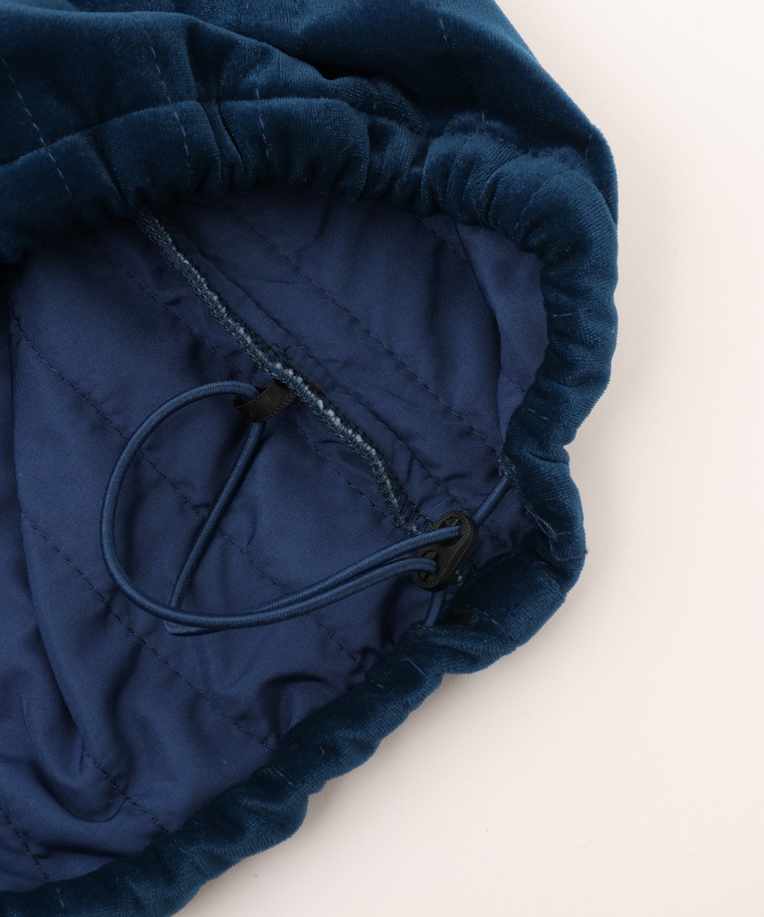 光沢を抑えたベロア生地と裏地の間に中わたを挟み、高い保温性を実現。