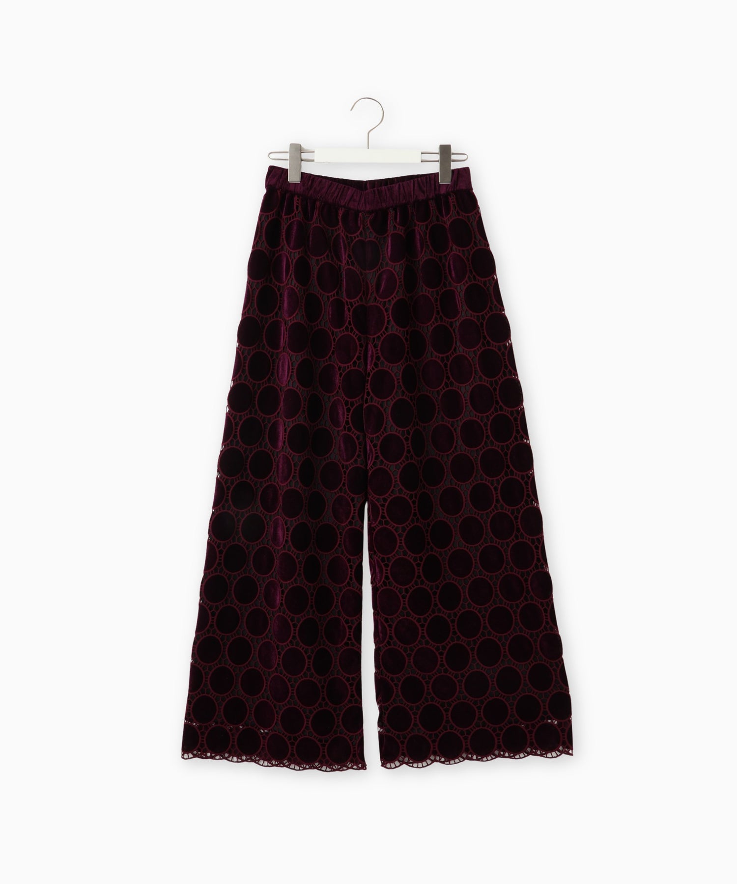 サークル柄で刺繍した程よい光沢感のあるベロア素材。