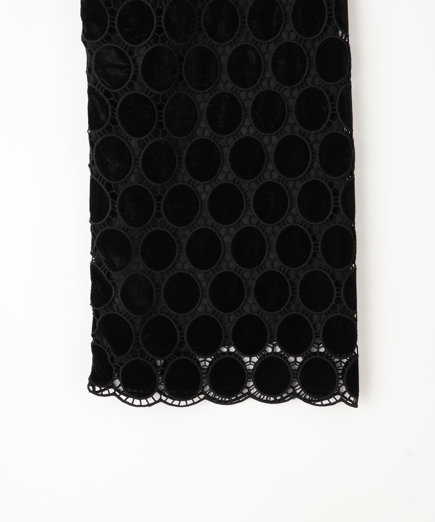BEATRICEオリジナル生地「ベロアドットレース」を使用。