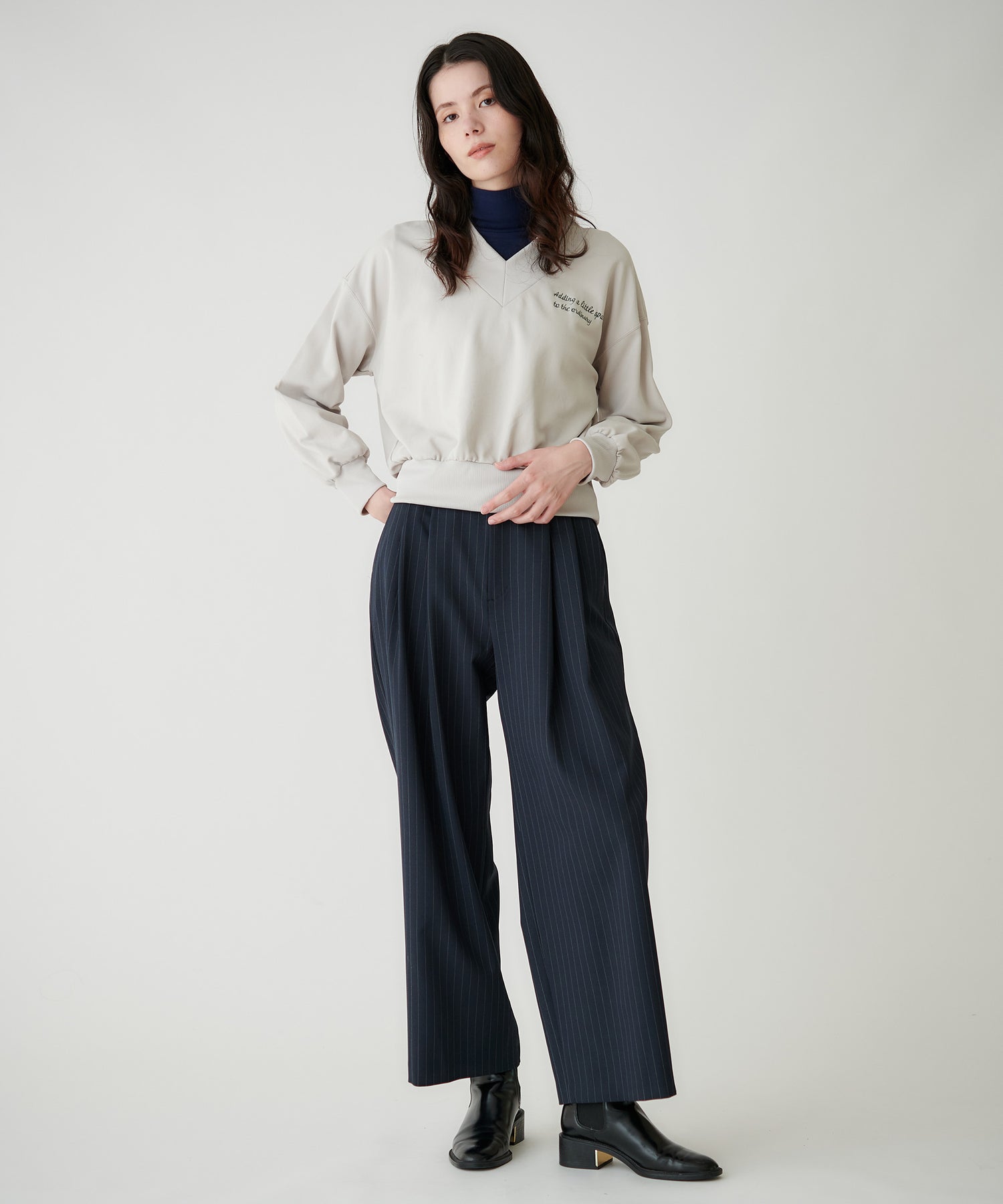 ワイドながらもすっきりとしたシルエットで、トップスを選ばず着回し可能。