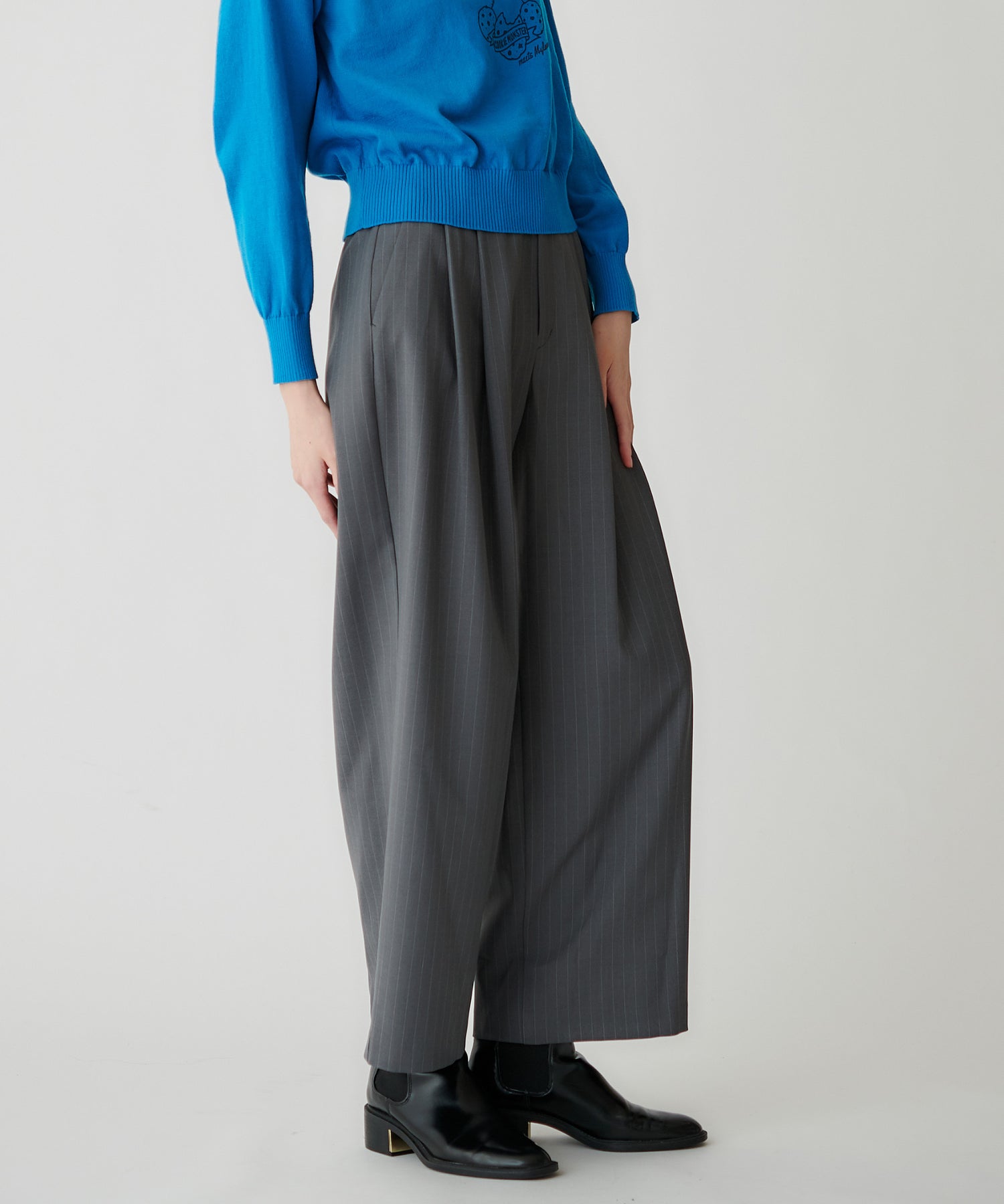 今年らしいワイドテーパードシルエットで、裾を少し細くすることですっきり感をプラス、着回しが効くイチオシの一本です。