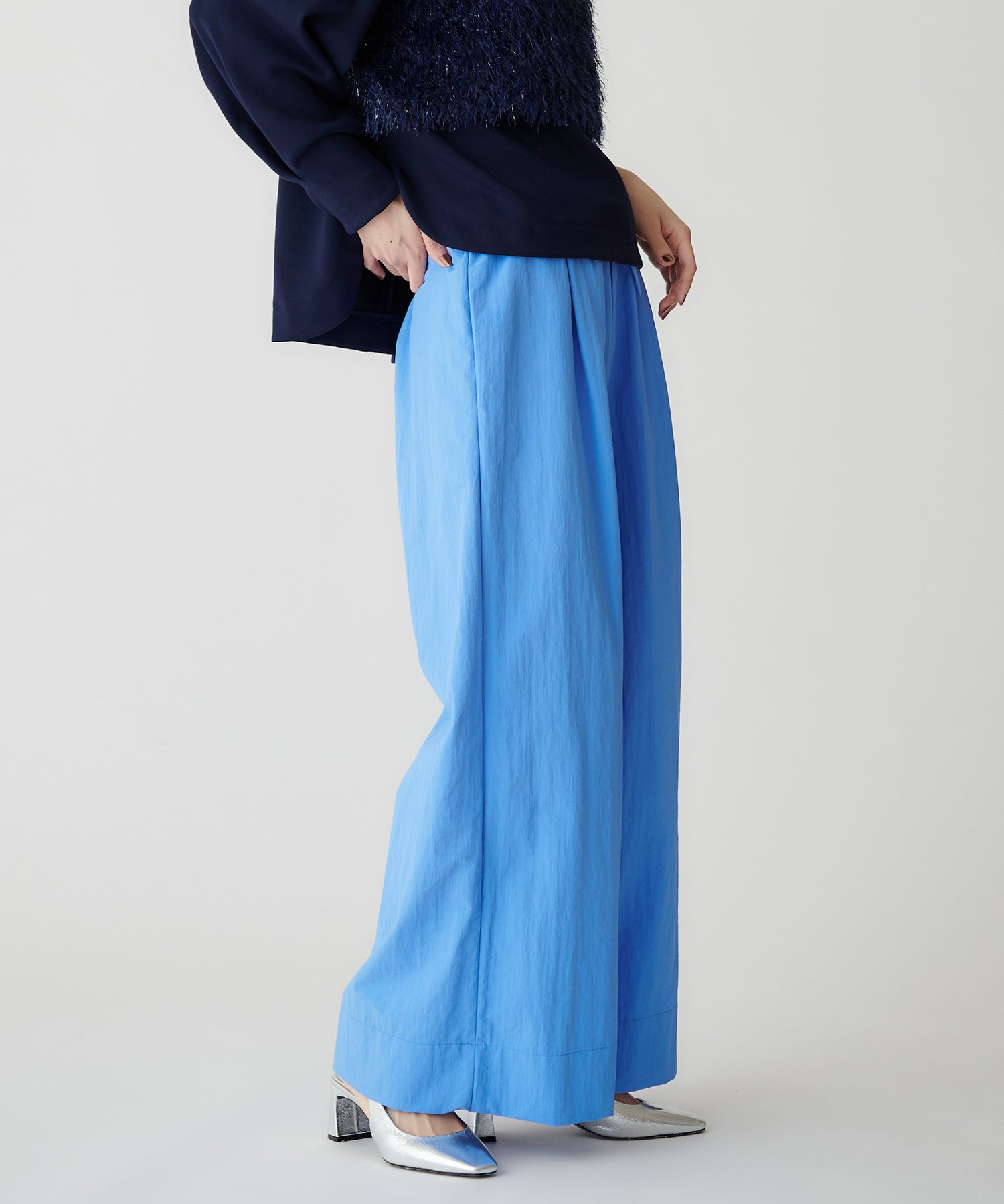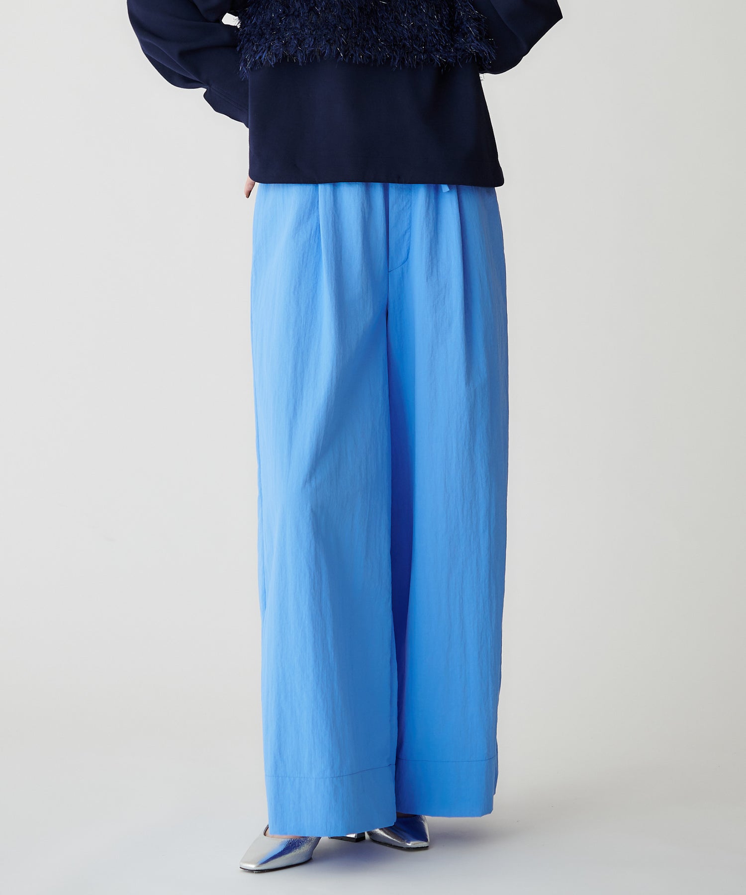 シーズンレスで着ていただける素材感と飽きのこないデザインのワイドパンツ。