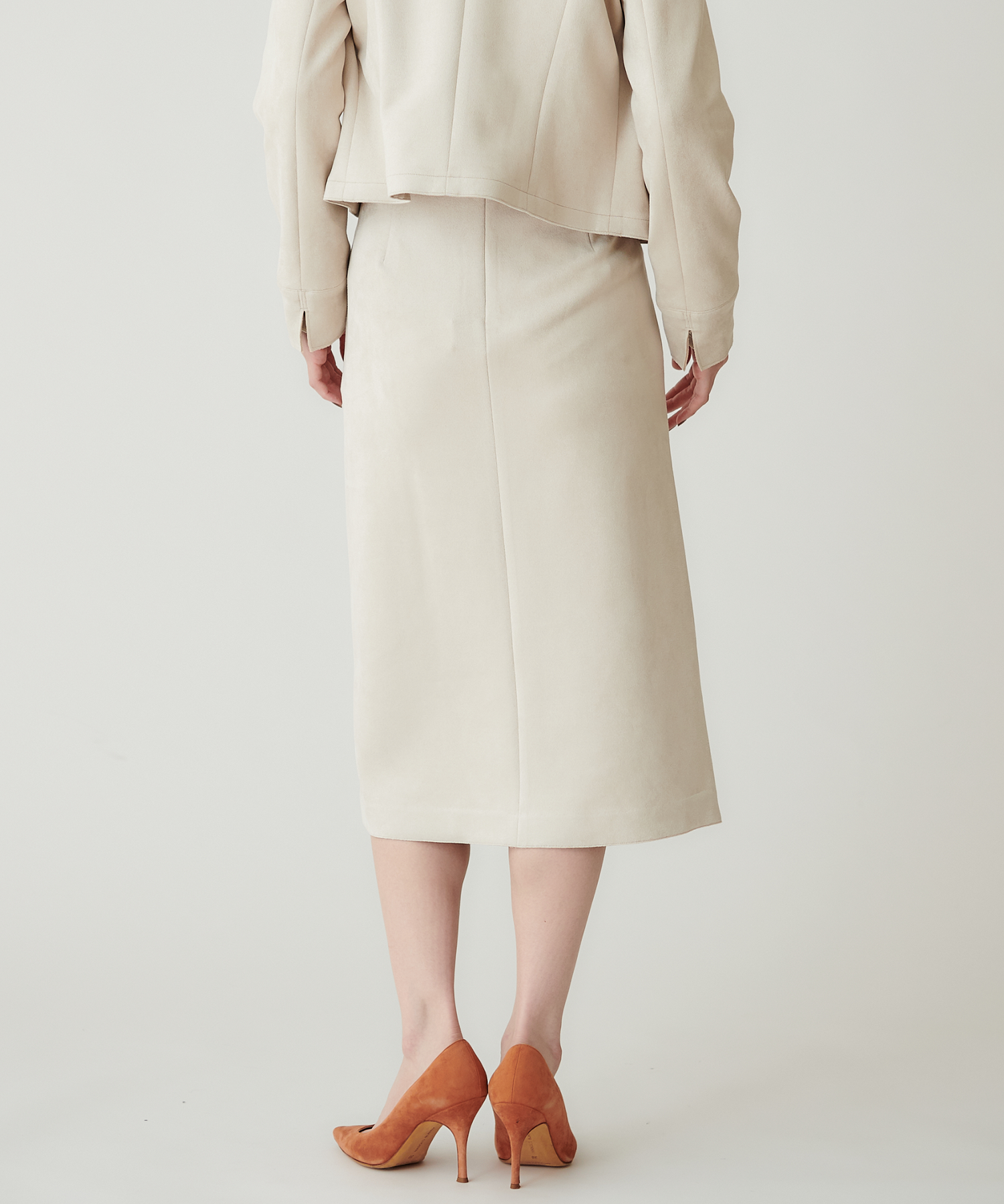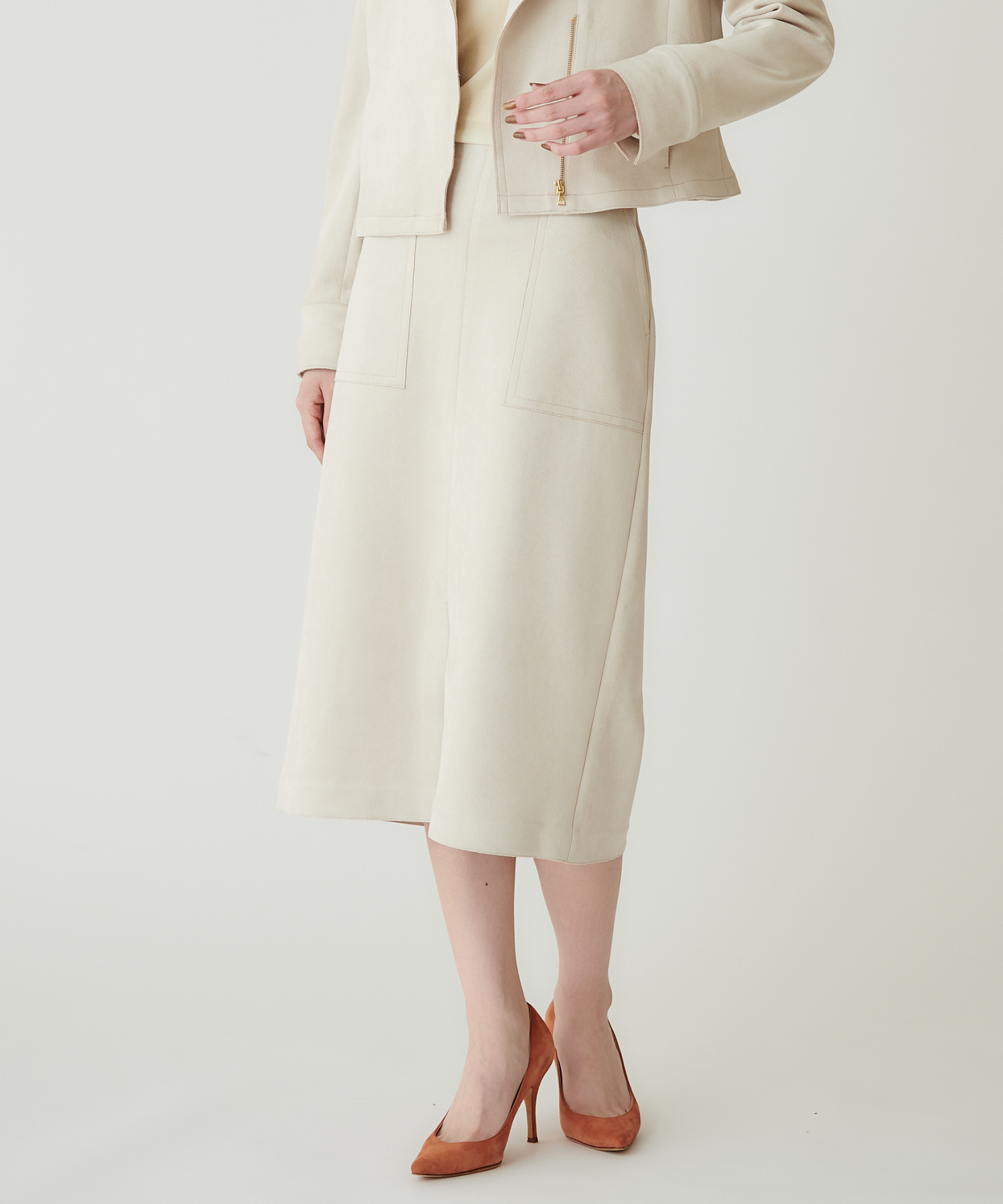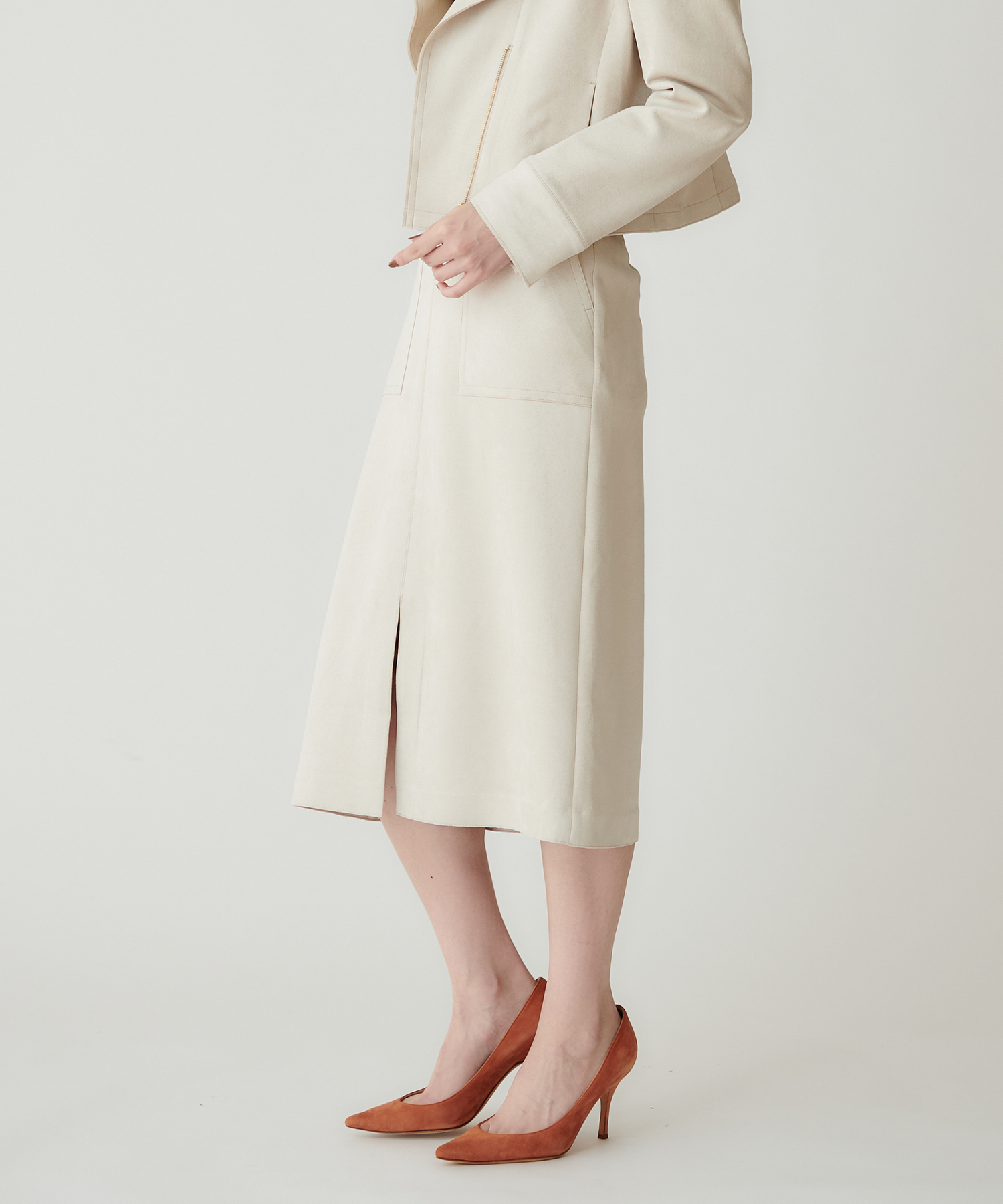 台形型でフロントスリットが女性らしさを演出するミディアム丈のスカート。
