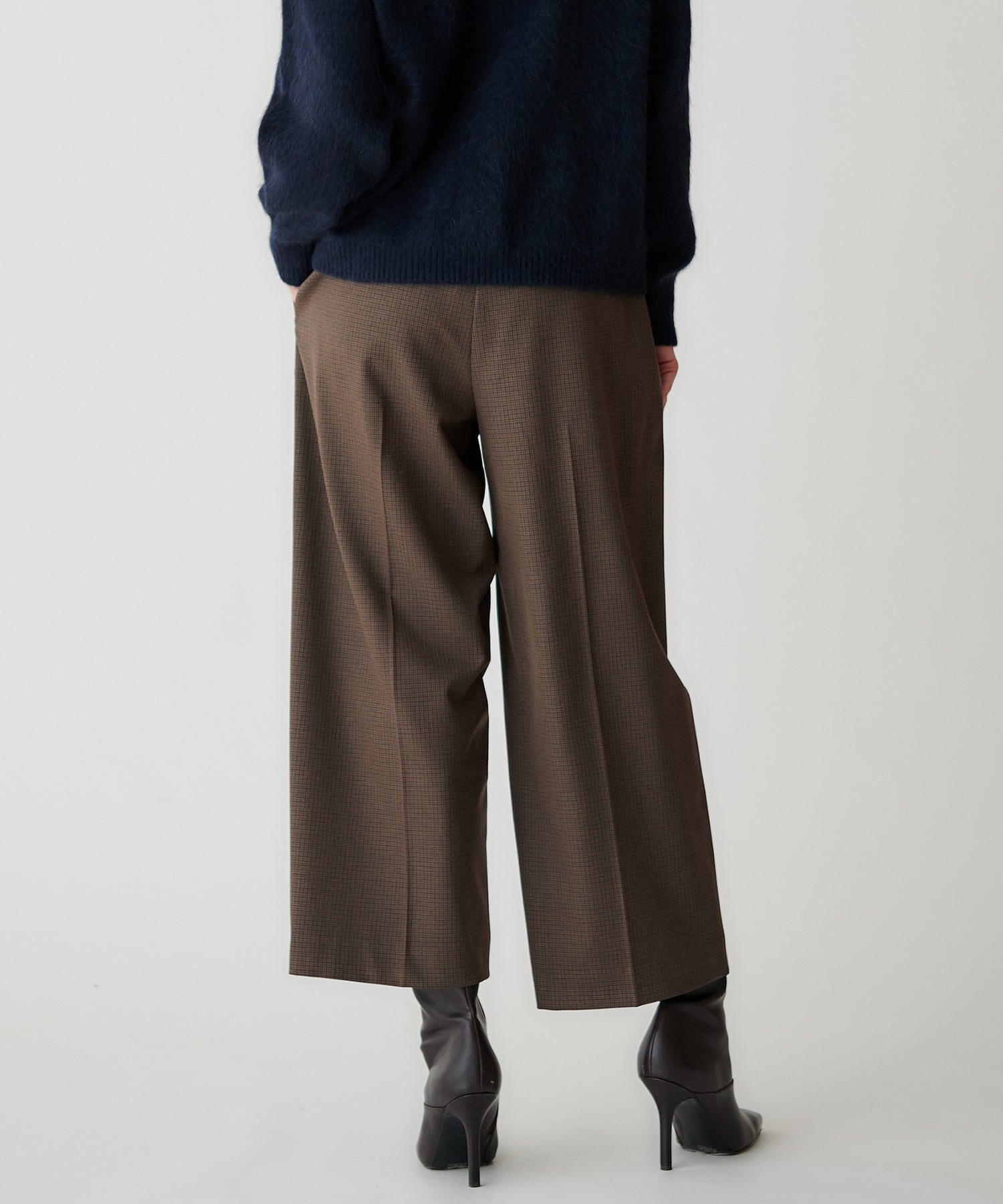 トラディショナルな千鳥格子柄が目を引くワイドパンツ。
