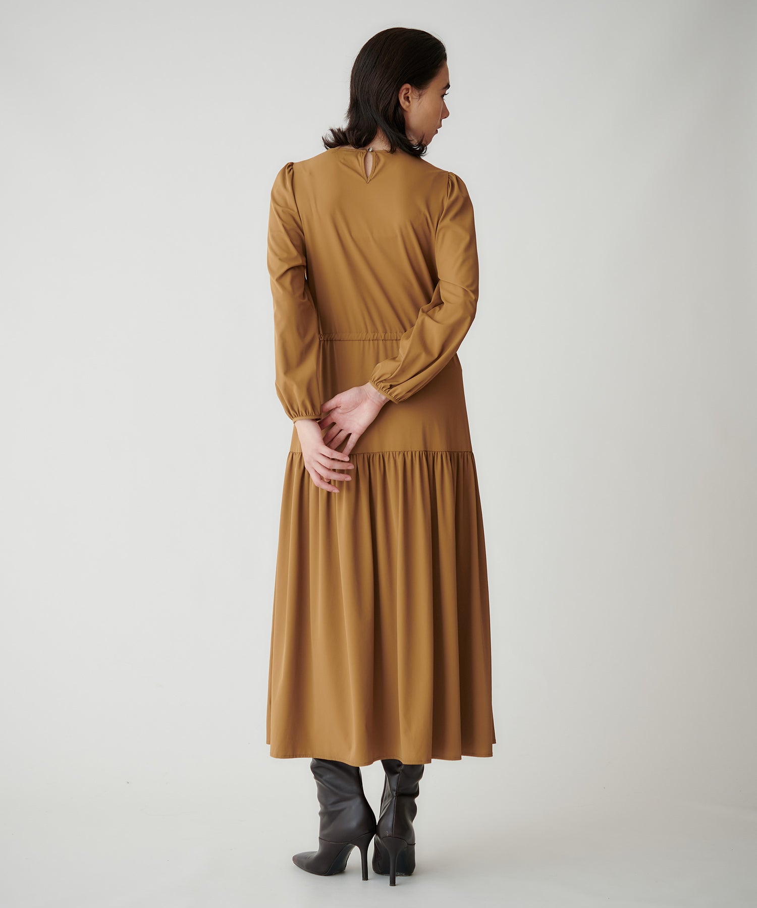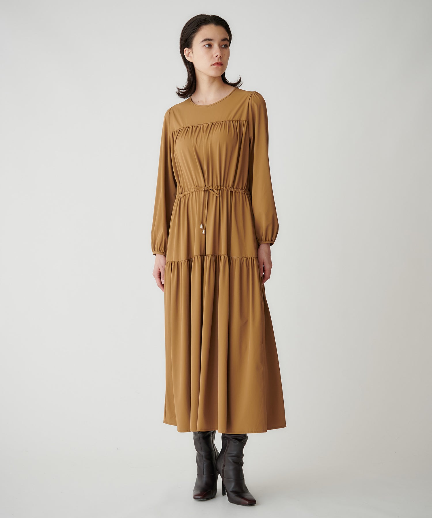 胸元とウエストに寄せた細やかなギャザーが、ふんわりと柔らかな立体感を演出するロングワンピース。ウエストはドロスト仕様で、軽く絞ることでシルエットの変化も楽しめ、女性らしいメリハリをつくります。