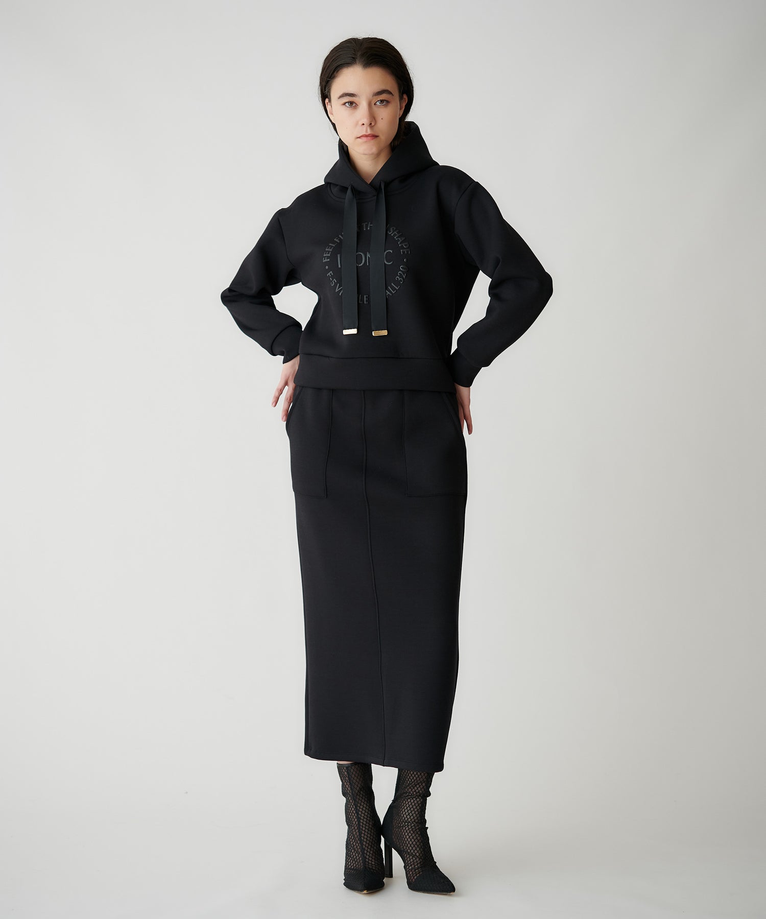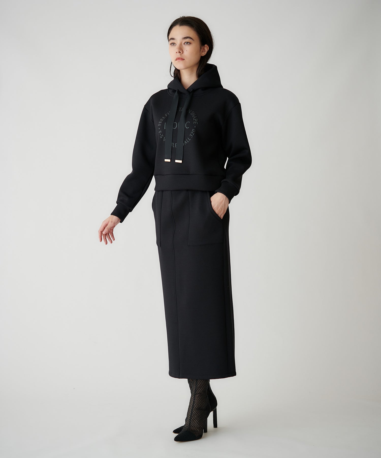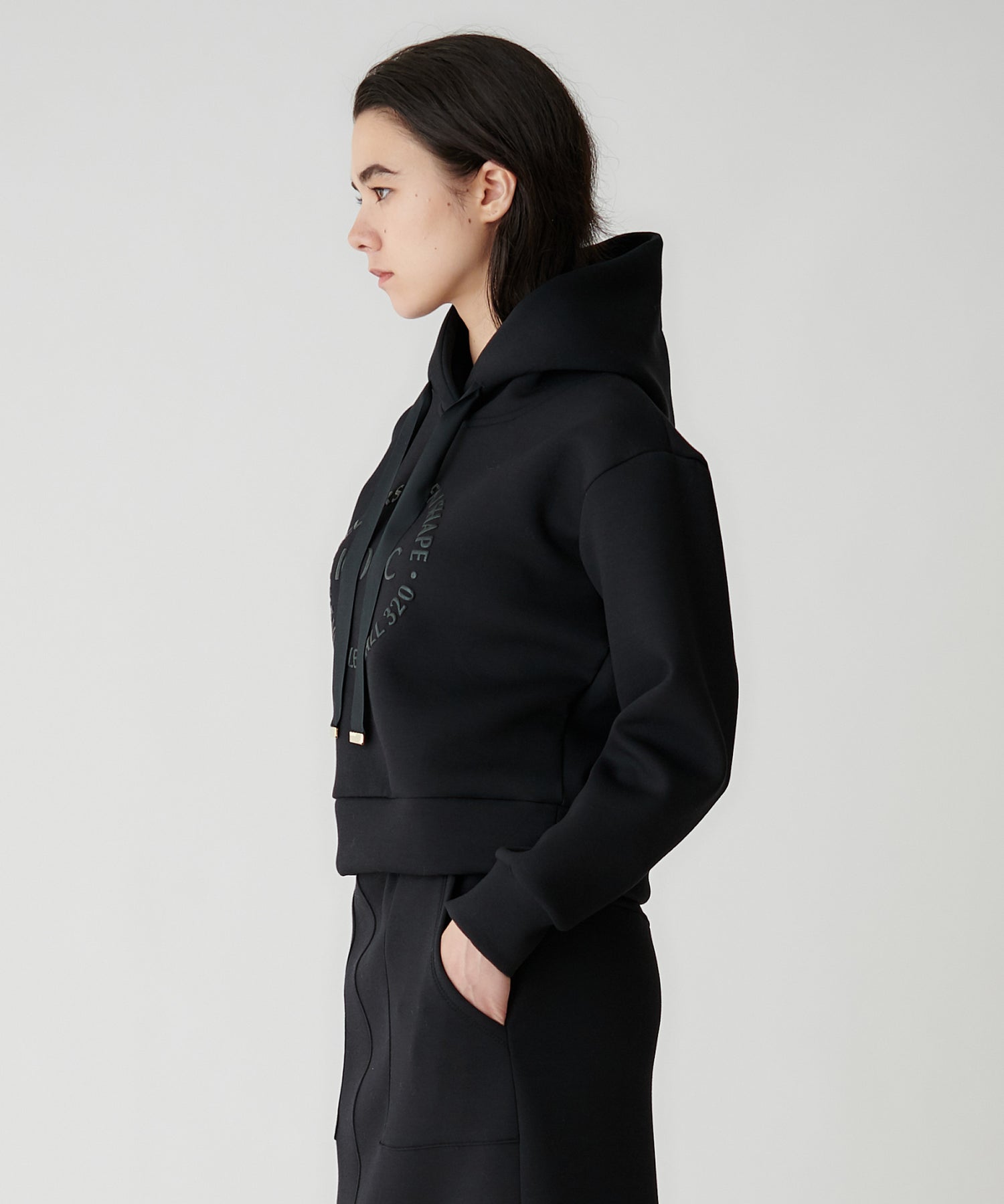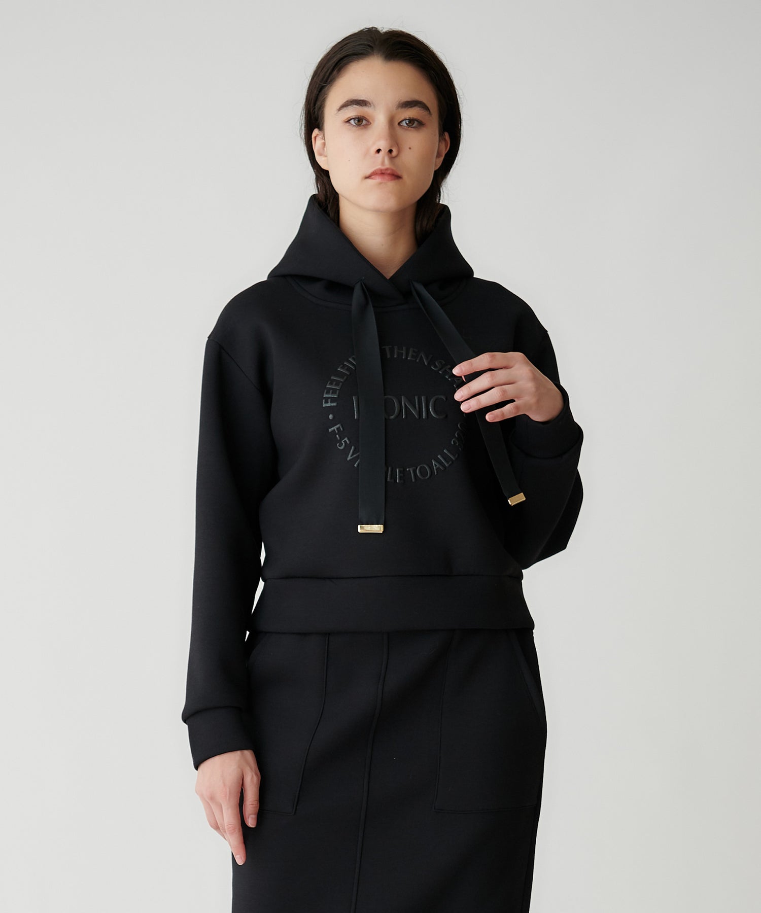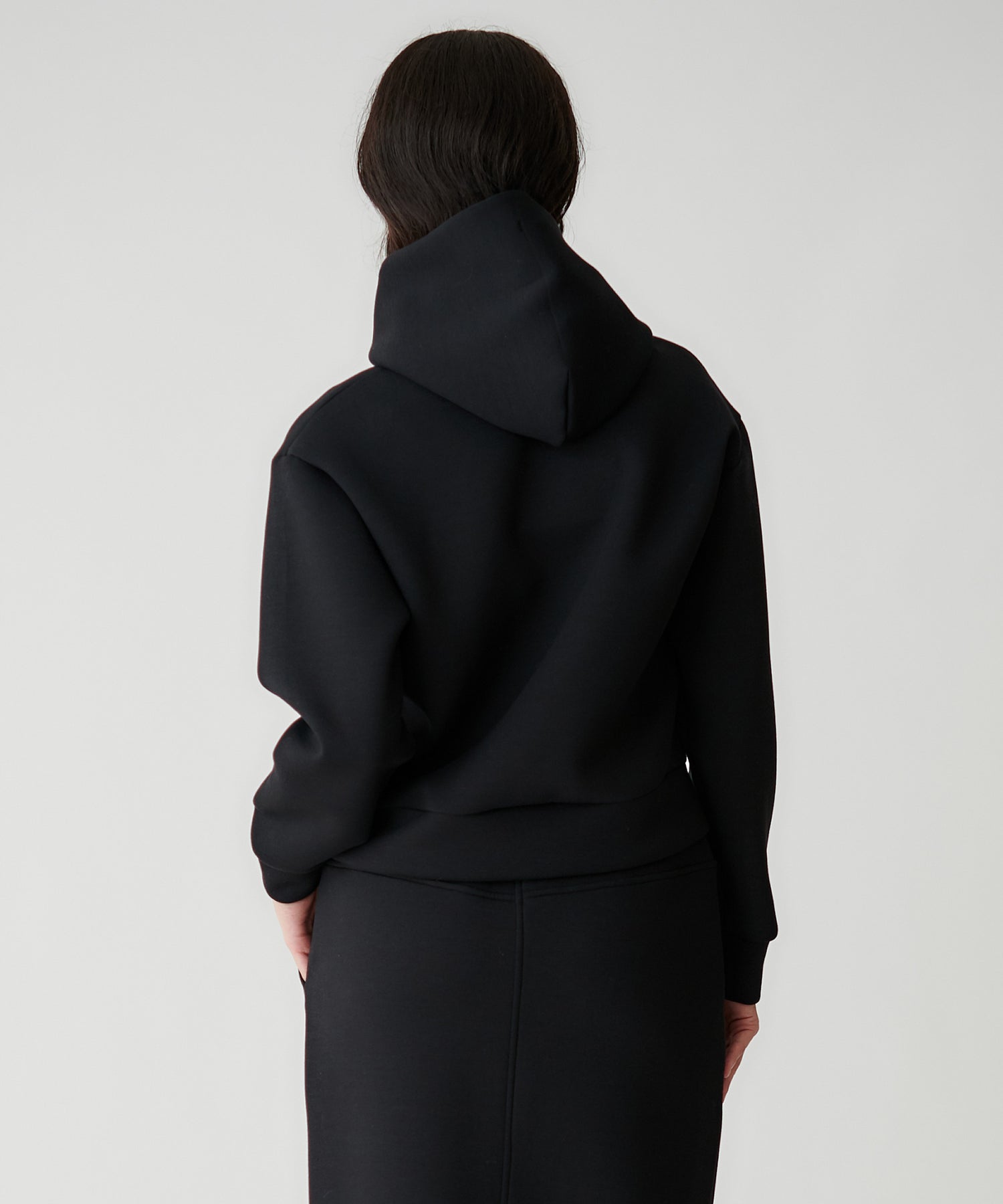 柔らかなハリとストレッチ性を持つダンボール素材のパーカー。
