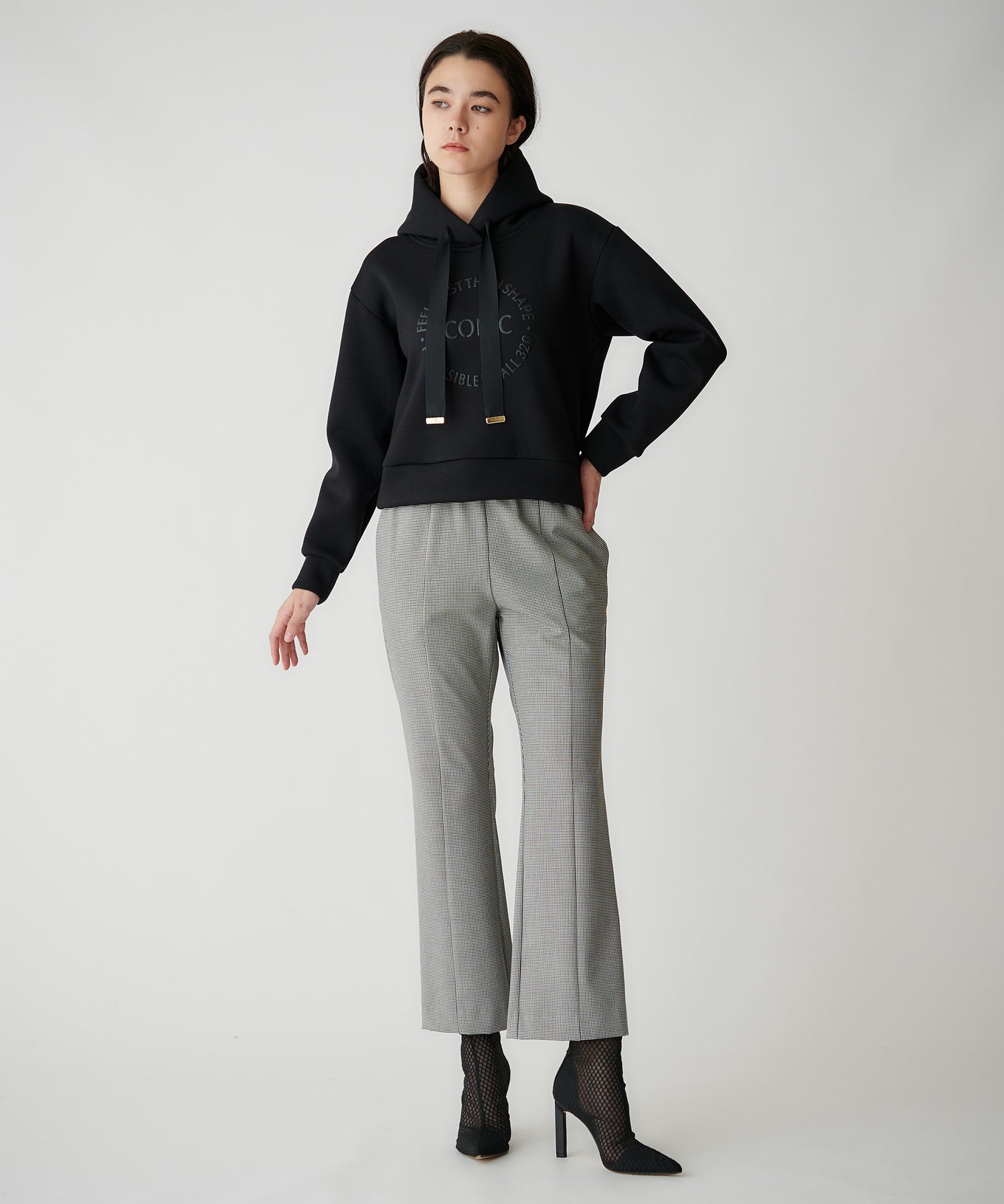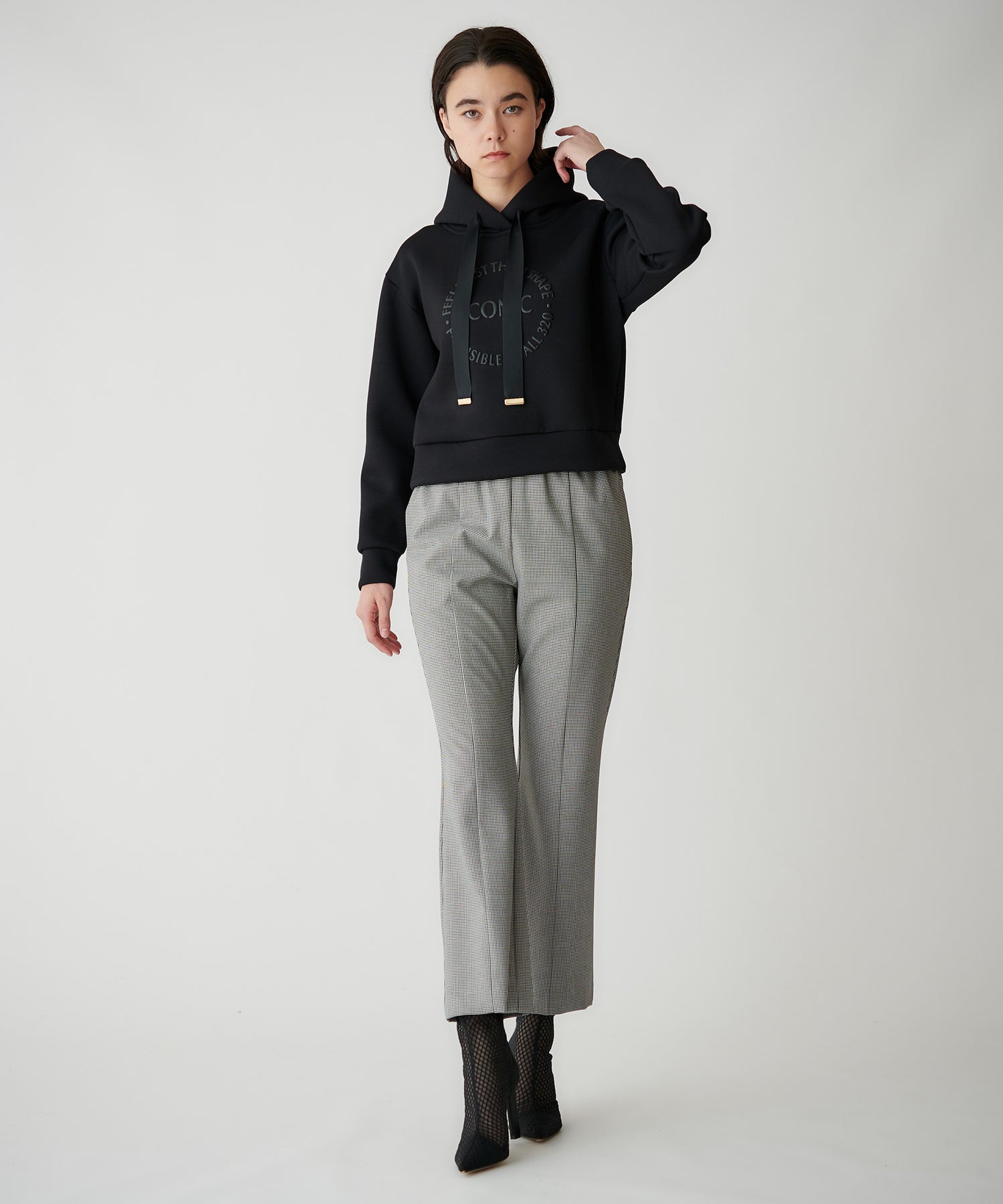 ジャスト丈を活かし、ワイドパンツやフレアスカートと合わせると好バランス。