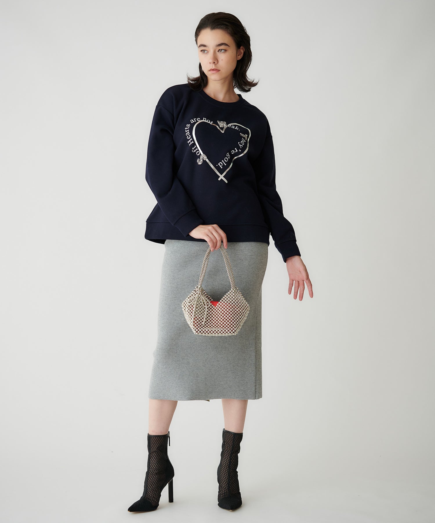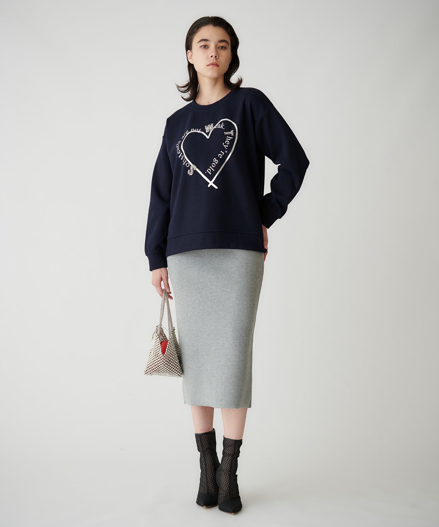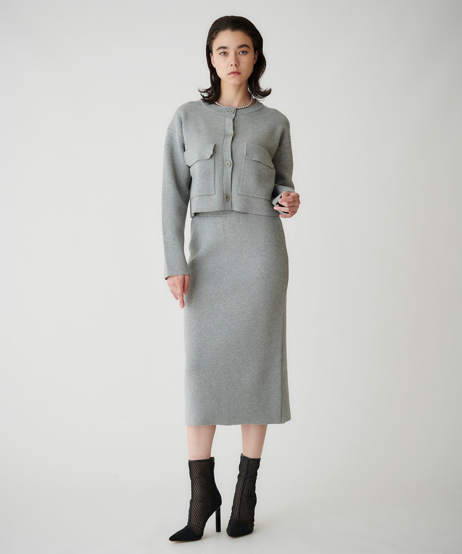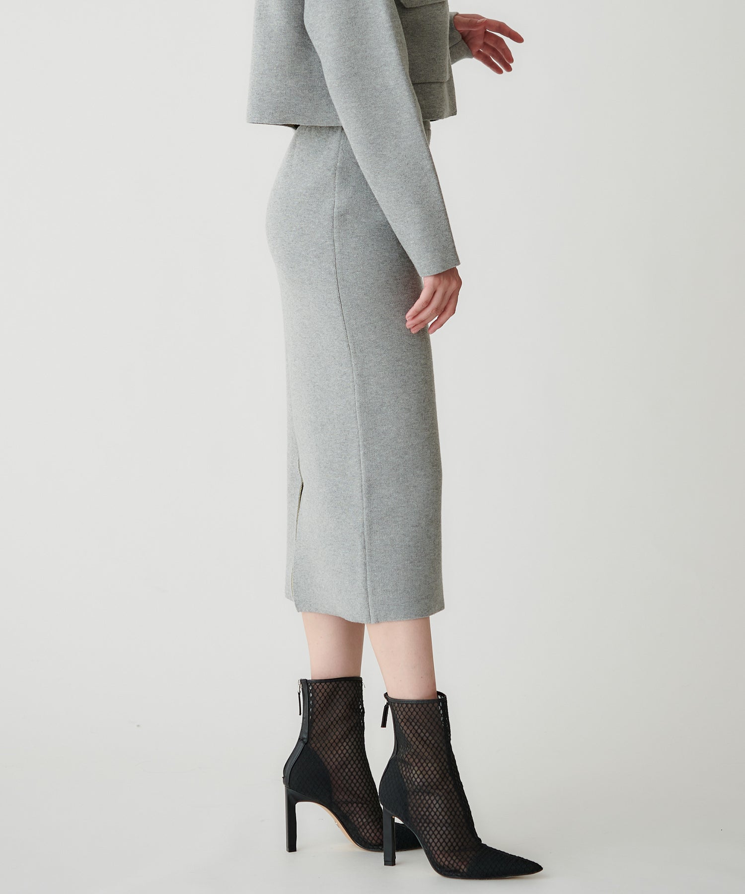 接結ニット素材を使用した、ミニマルなタイトスカート。