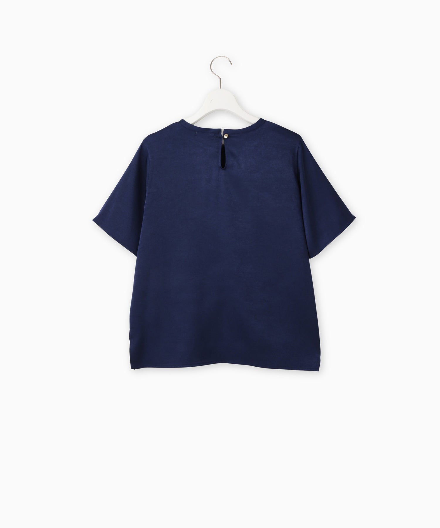 どんなアイテムとも合わせやすいサテンTブラウス。