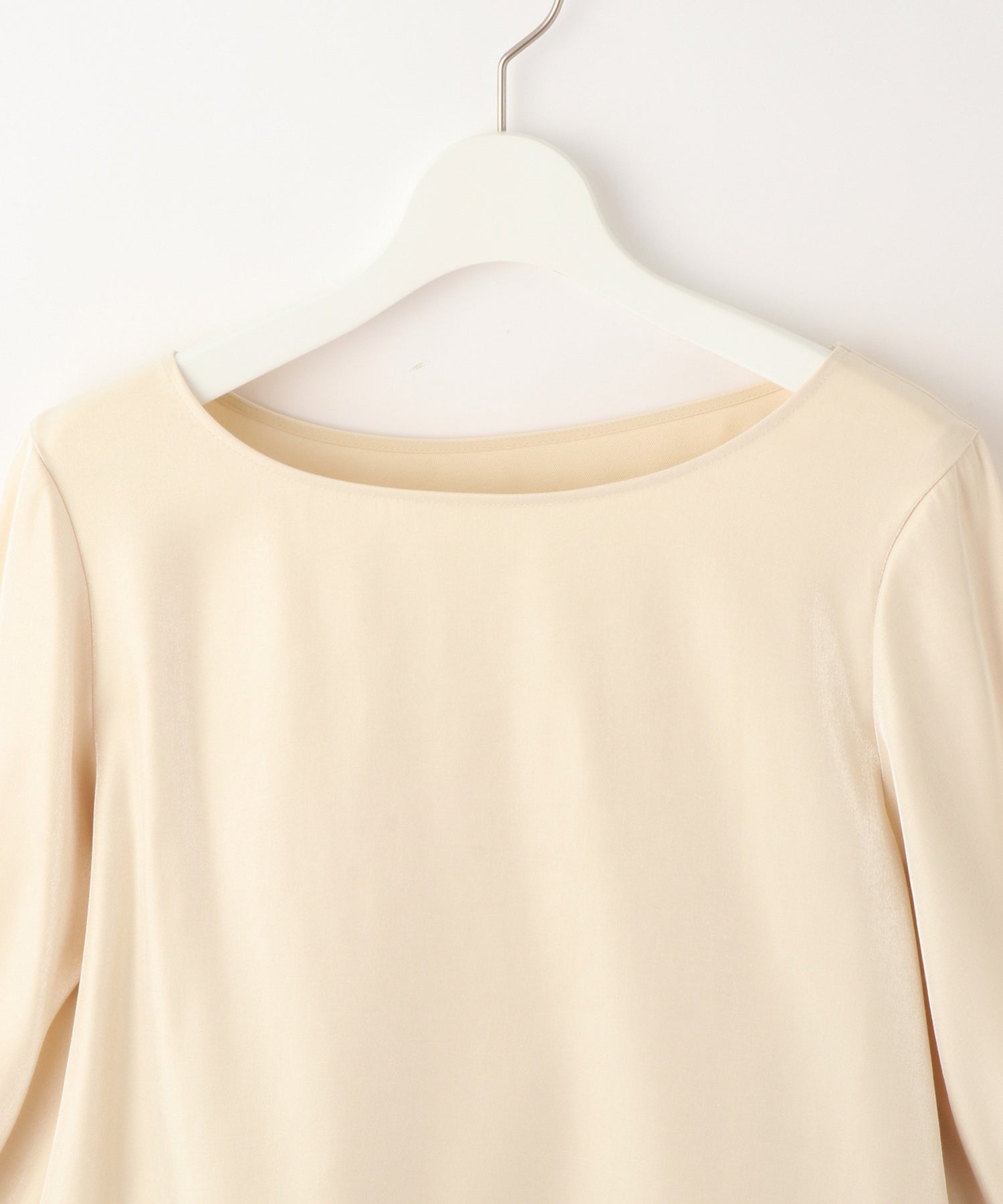 首元はすっきりとしたボートネックで、顔まわりもすっきり見せてくれます。