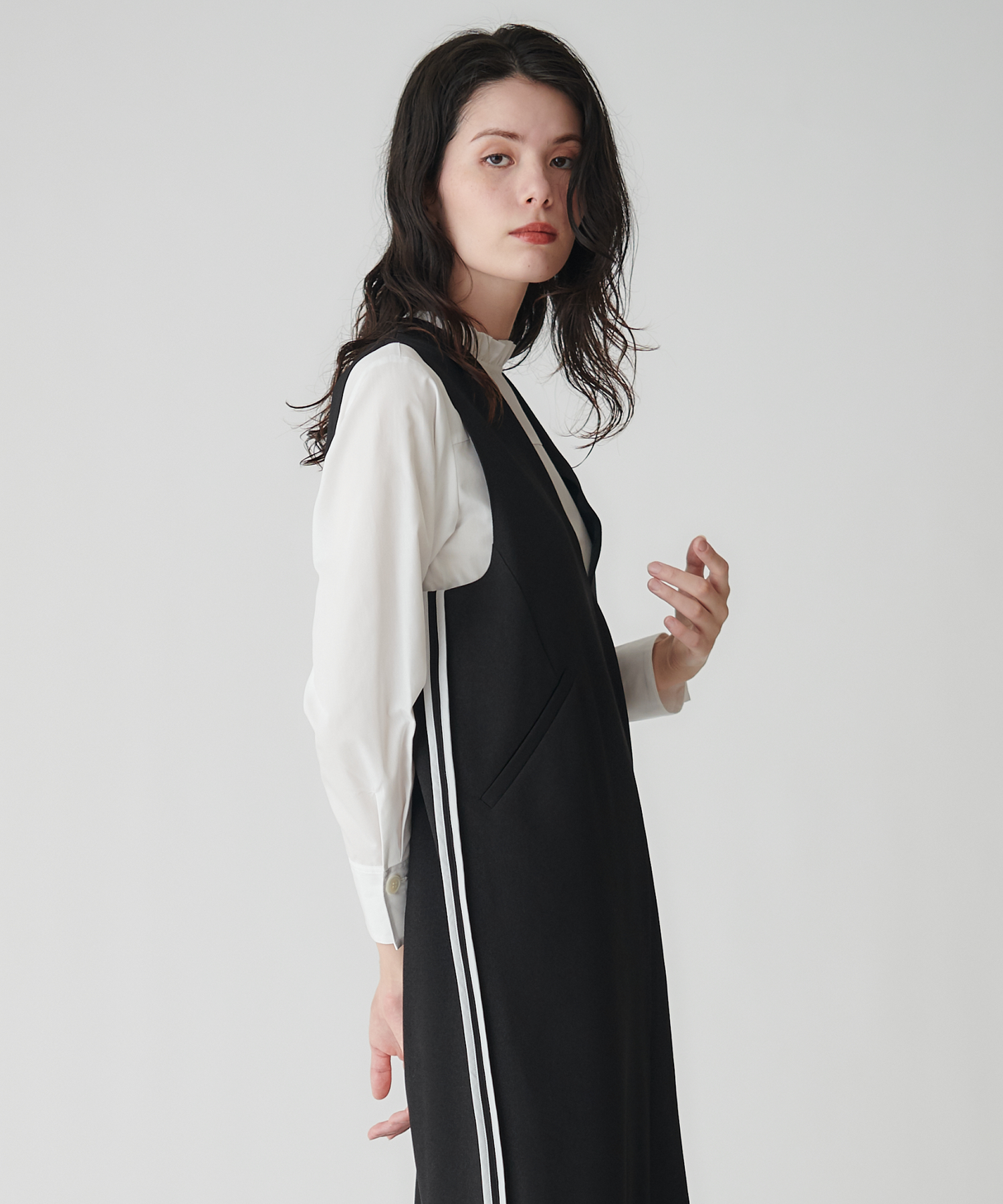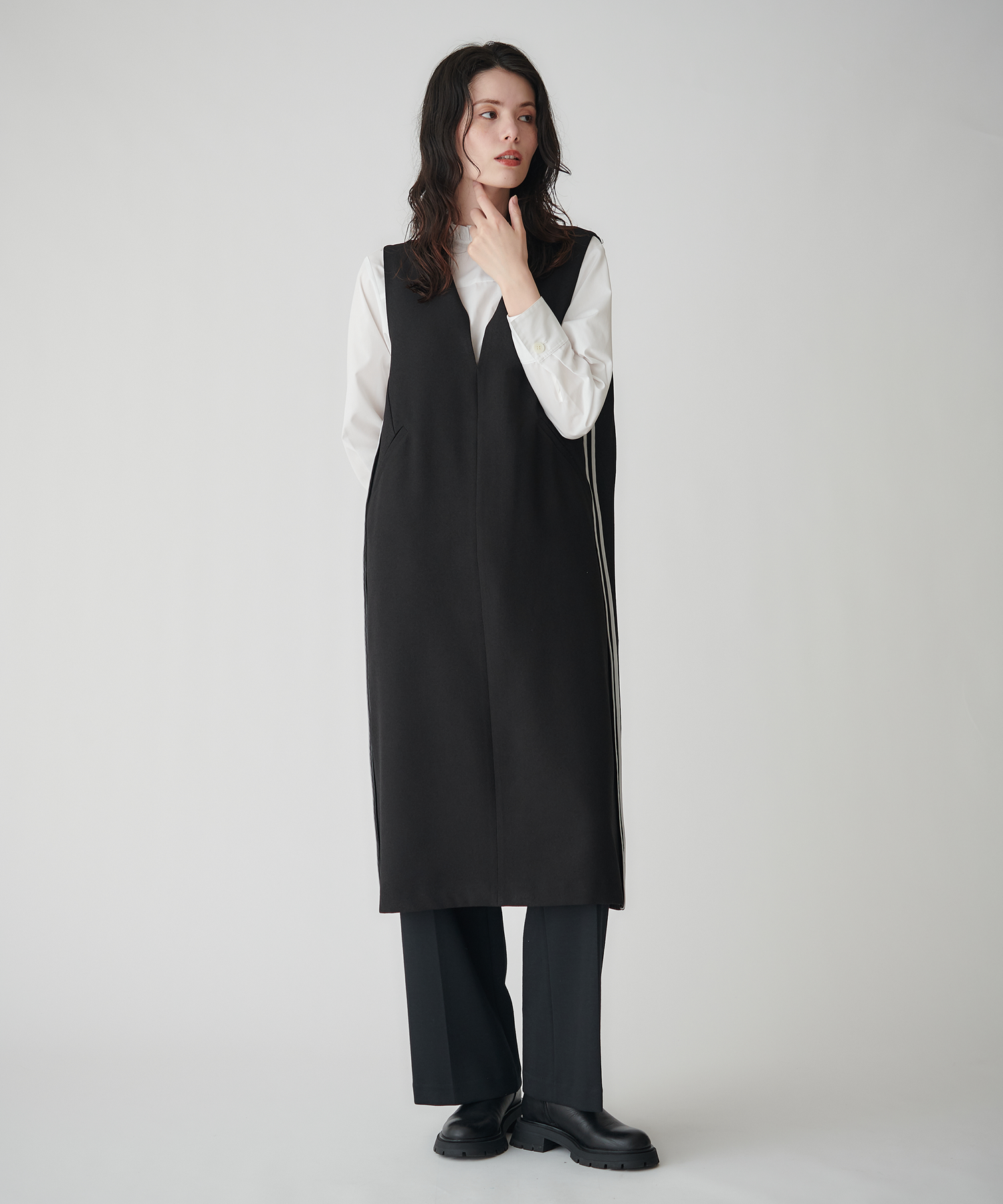 ボトムはスラックスやタイトスカートで上品にまとめても、デニムでカジュアルダウンしても◎。脇スリットのデザインを活かして、ワイドパンツと合わせたリラックススタイルも楽しめます。