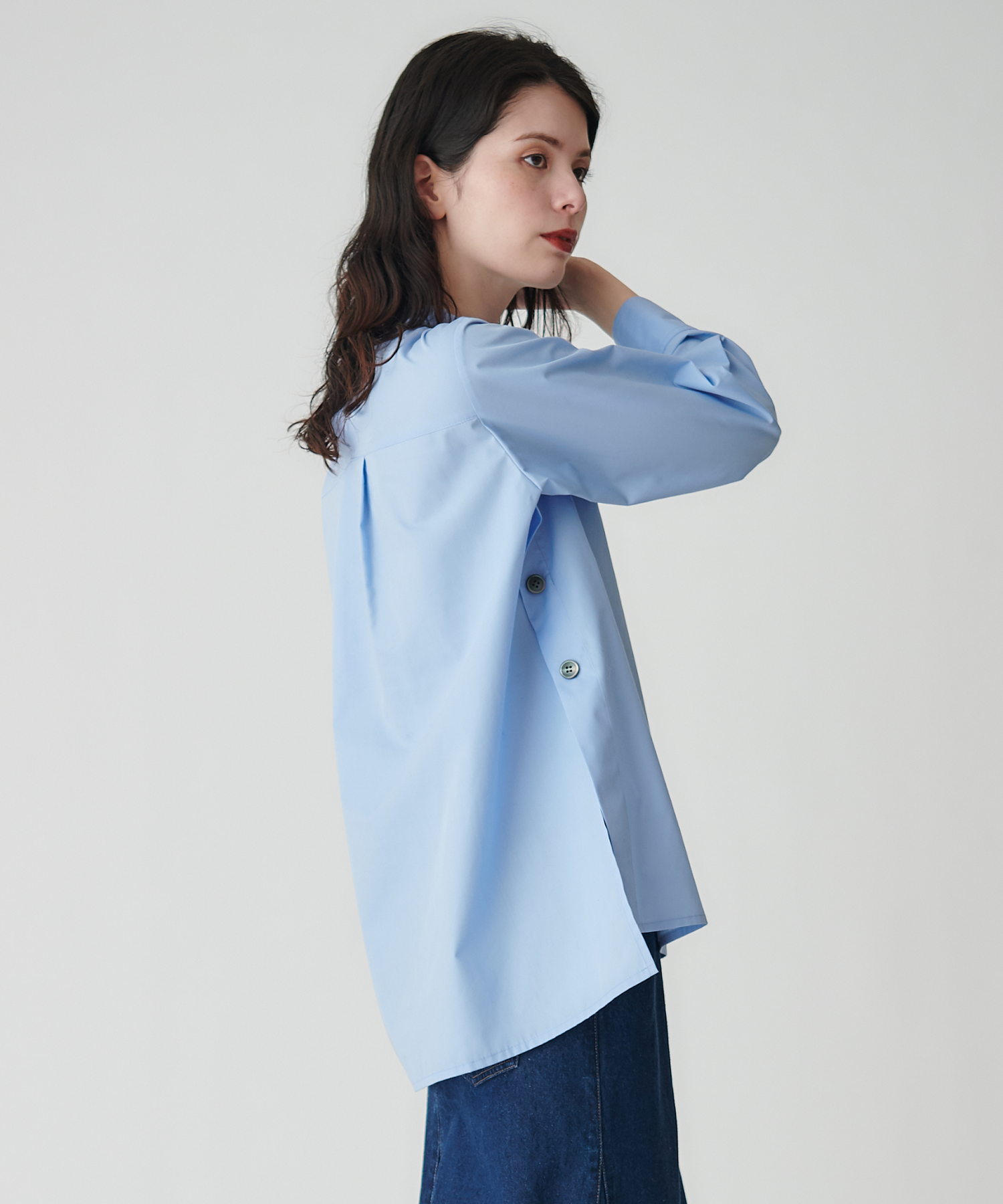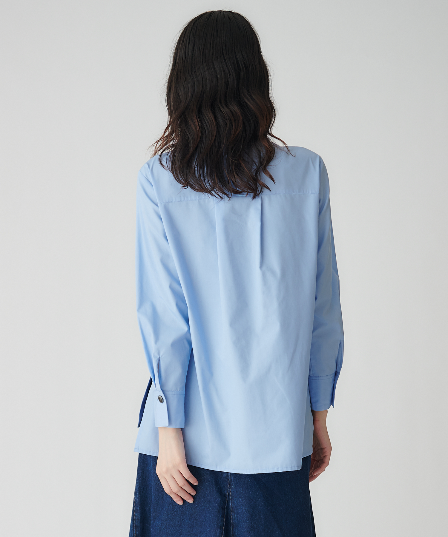 脇のスリットとボタンでさりげなく抜け感を演出したシャツ。