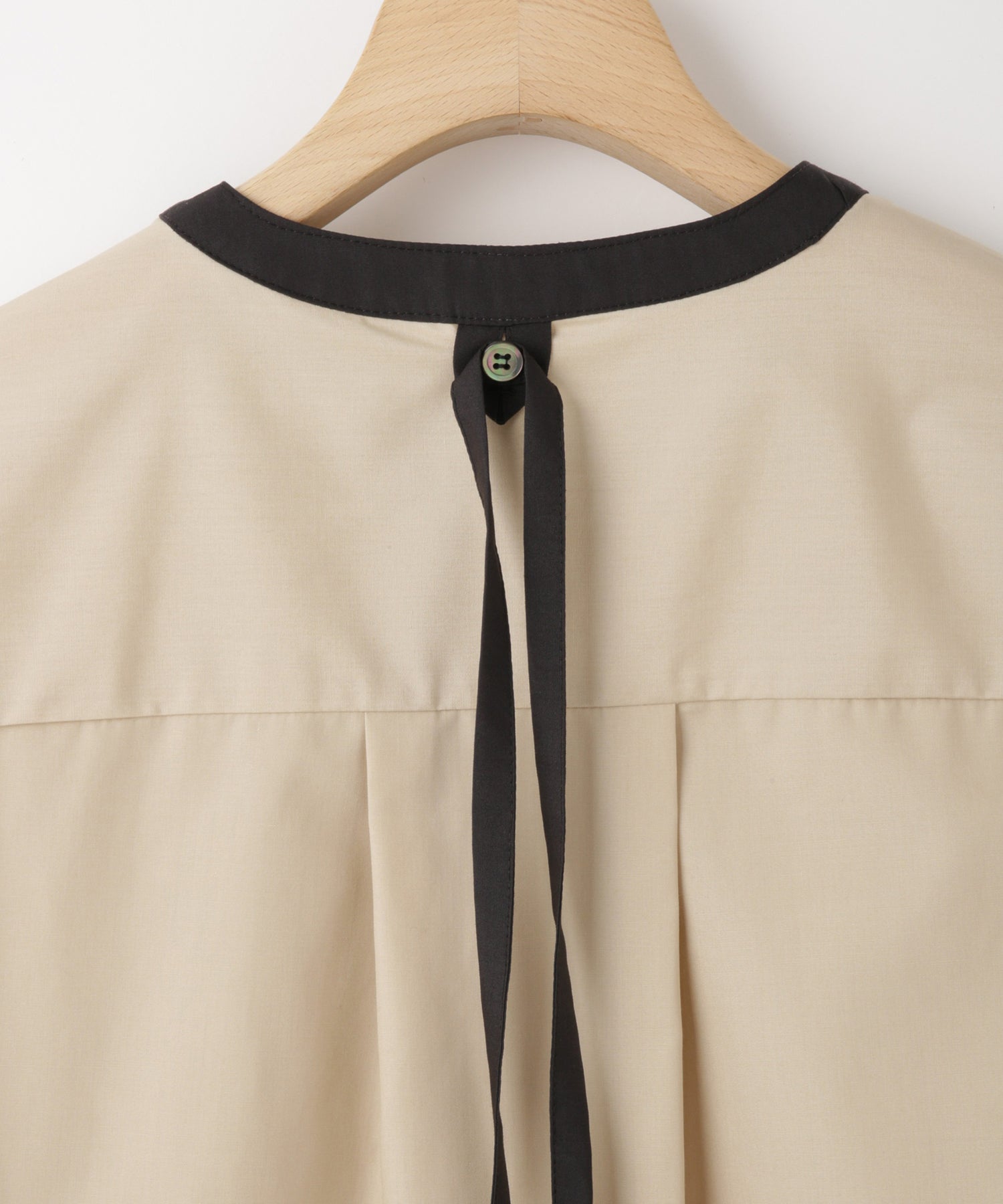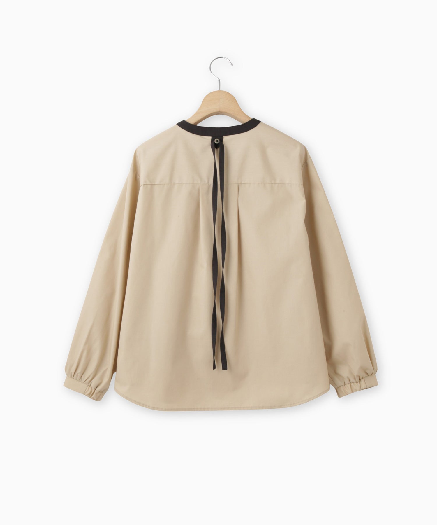クレリックな衿配色+同色の後ろリボンがポイントのブラウス。