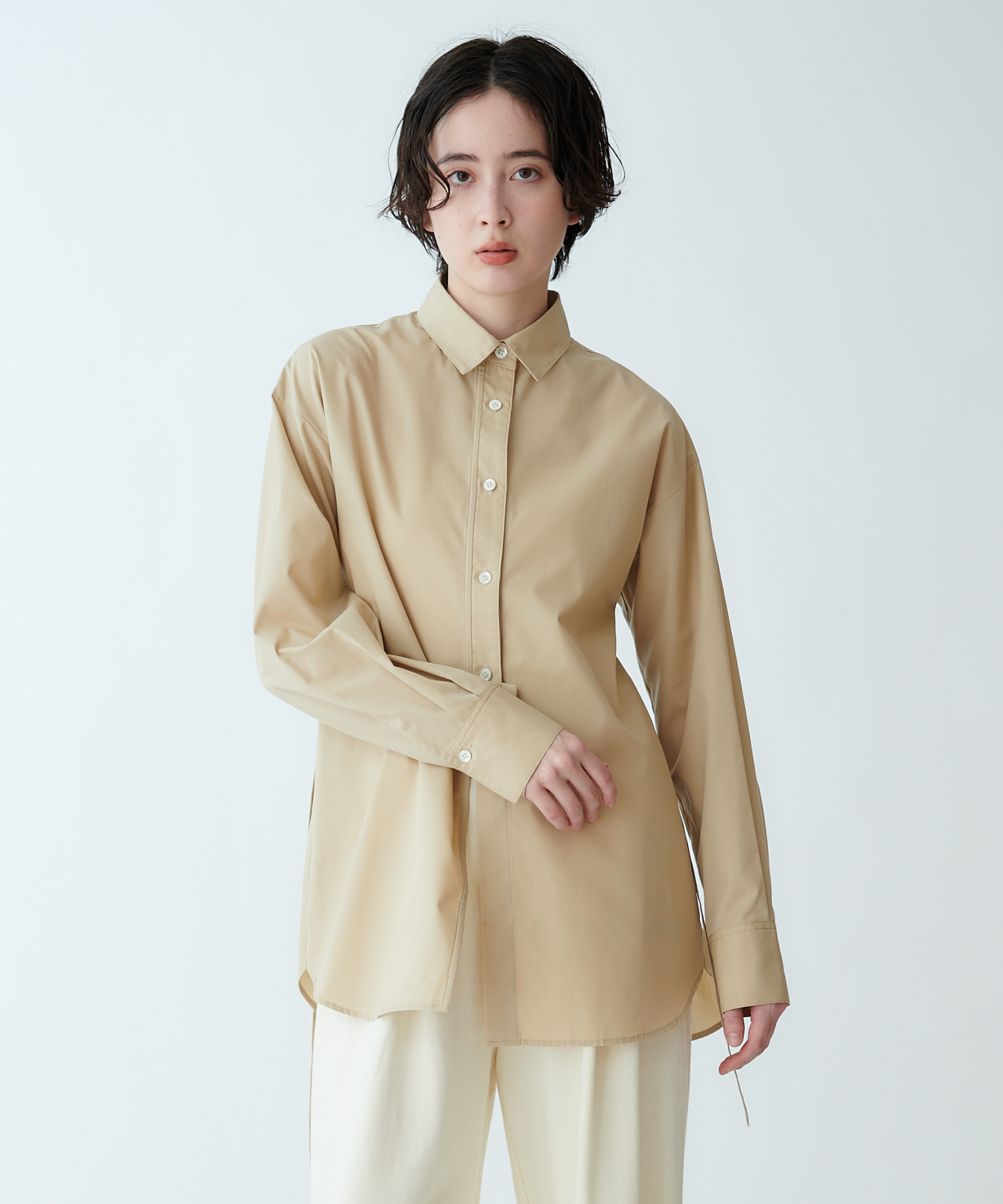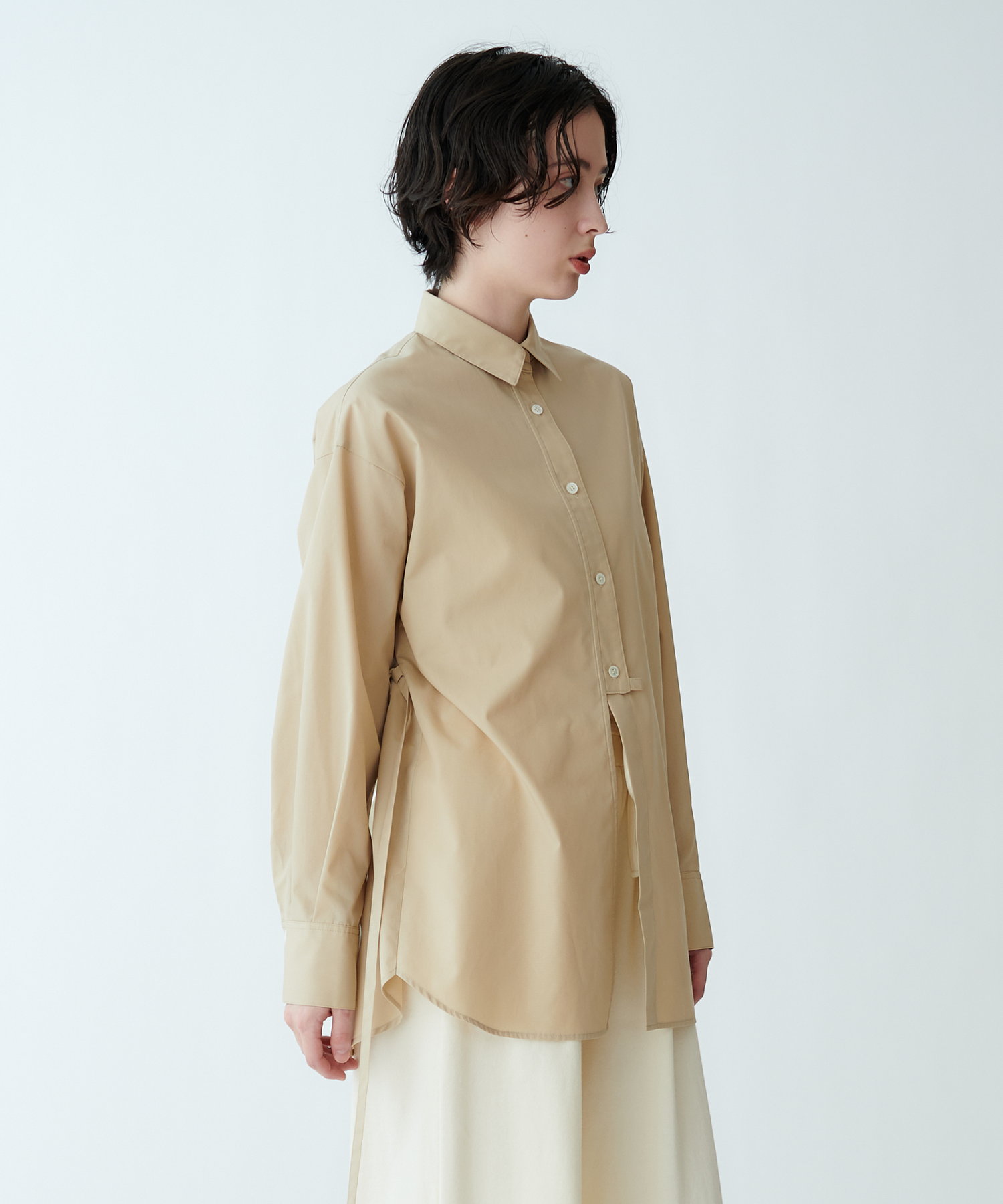 前立てを途中までにして、下はスリットあきのようにしたシャツ。