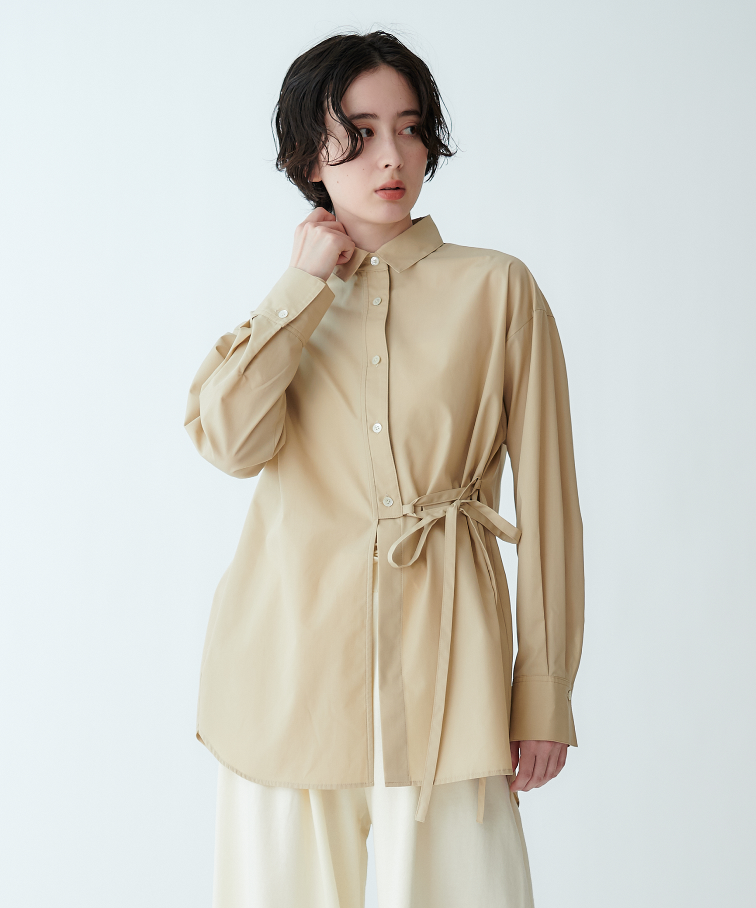 リボンの結び方次第で印象チェンジが楽しめるので、きちんと感を出したい日はタイトに、ラフに着たい日はゆるめに結んでリラックス感のある着こなしもおすすめ。