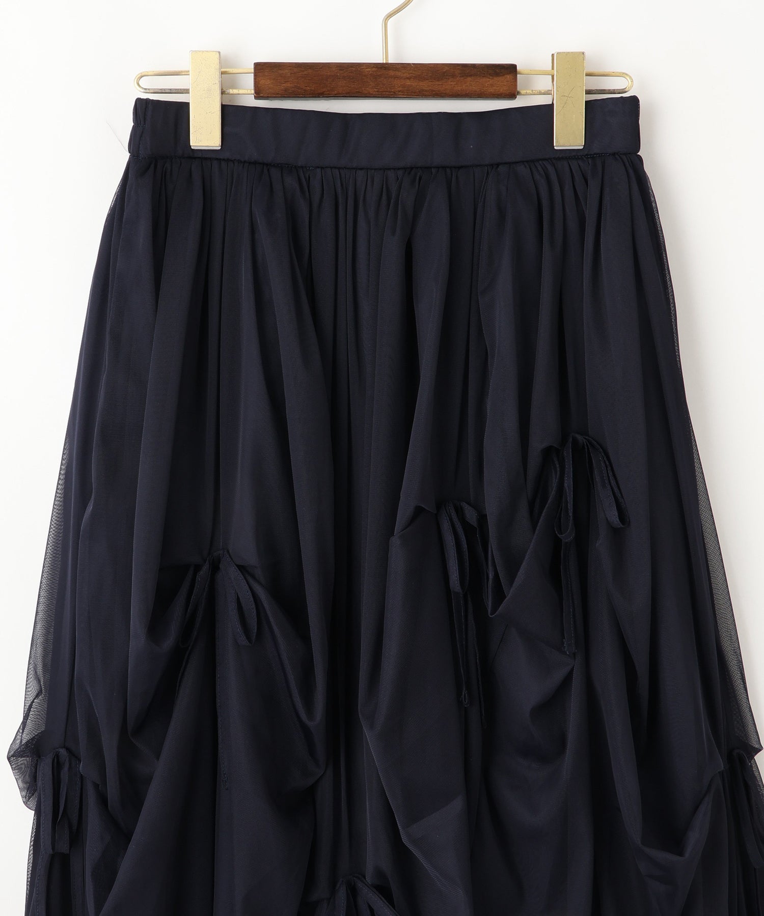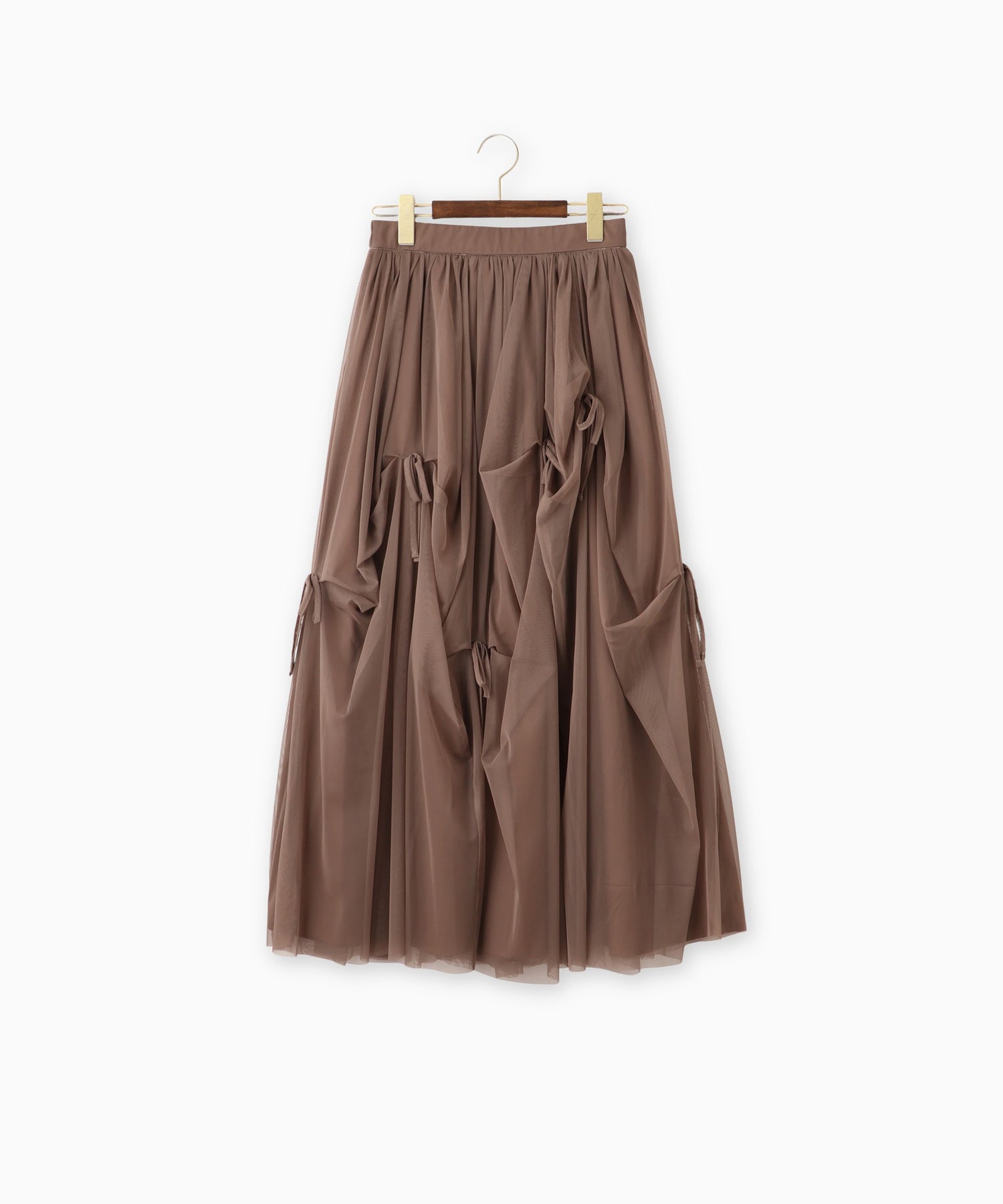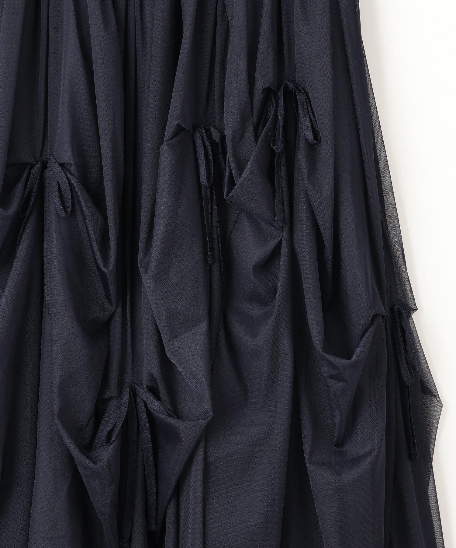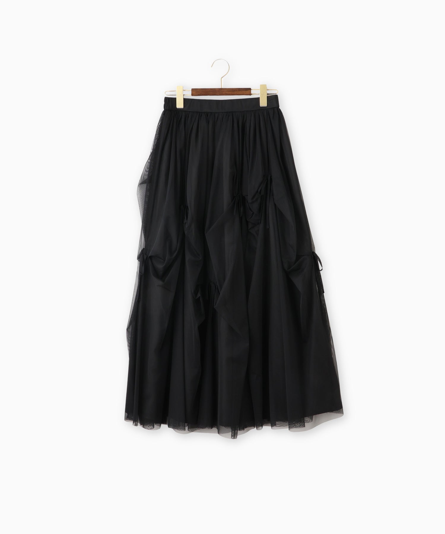 繊細なソフトチュールにランダムタックを施し、立体感と動きのあるシルエットを実現したチュールスカート。