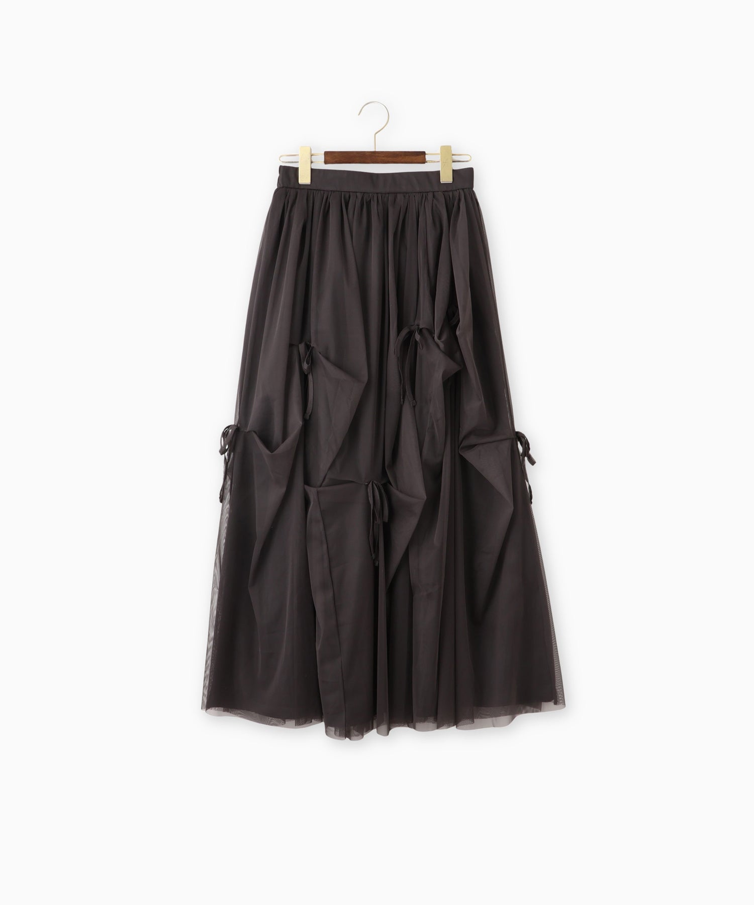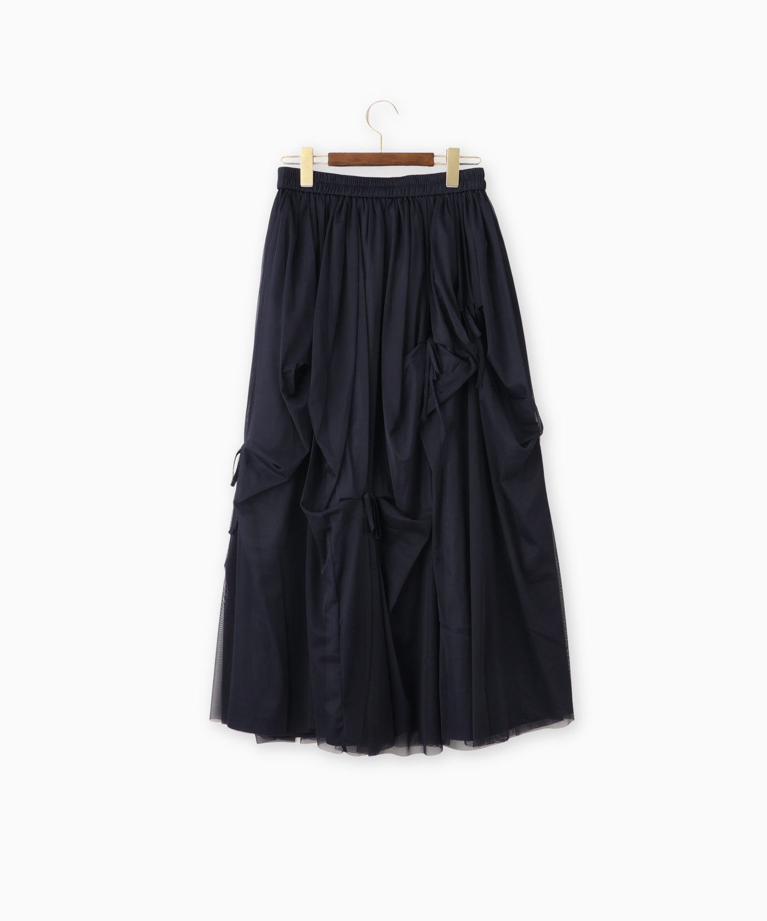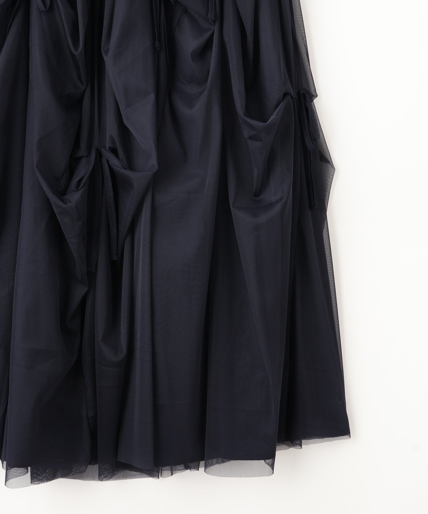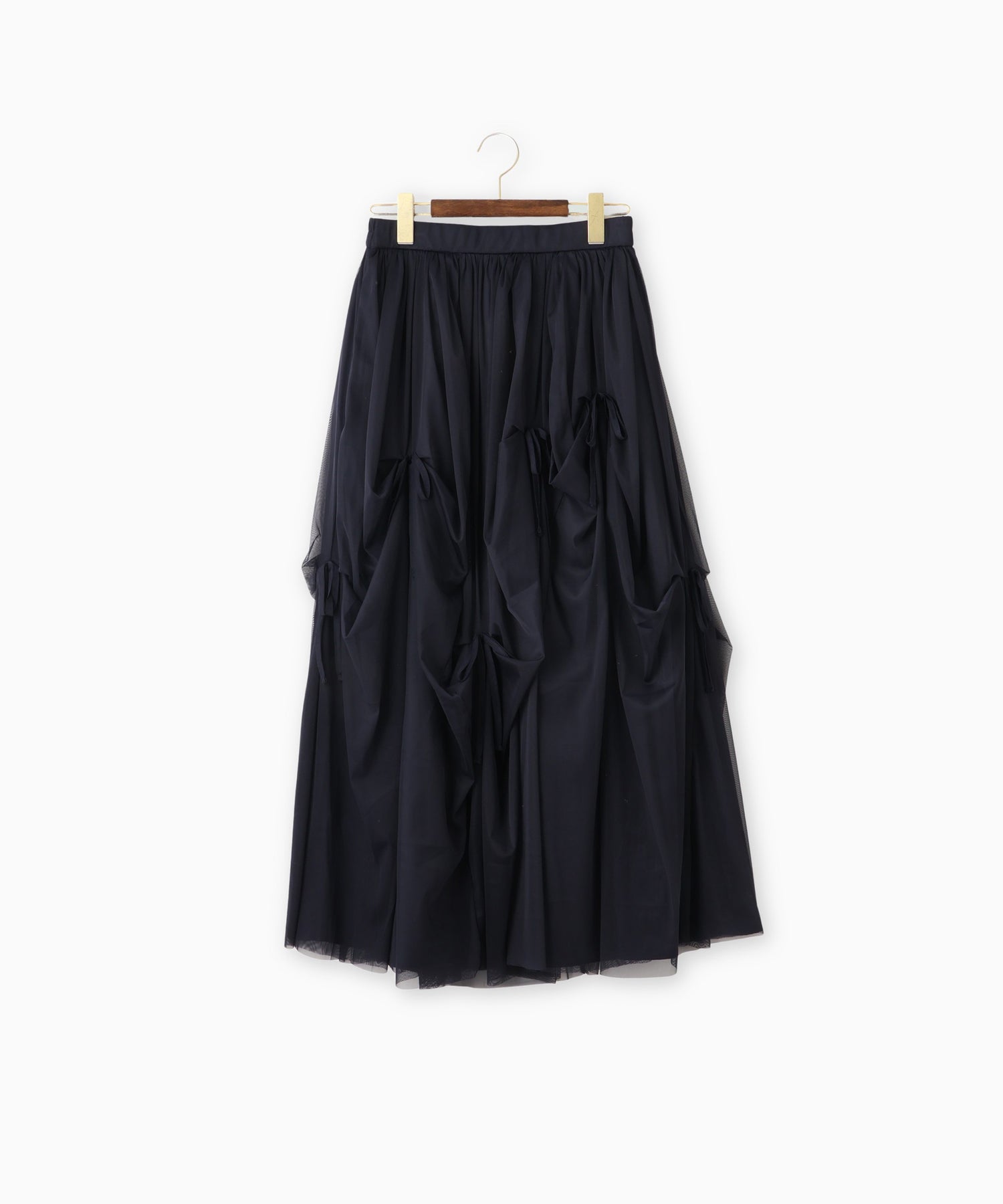 繊細なソフトチュールにランダムタックを施し、立体感と動きのあるシルエットを実現したチュールスカート。