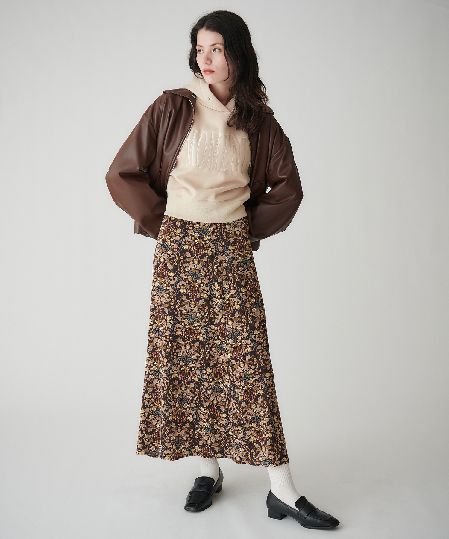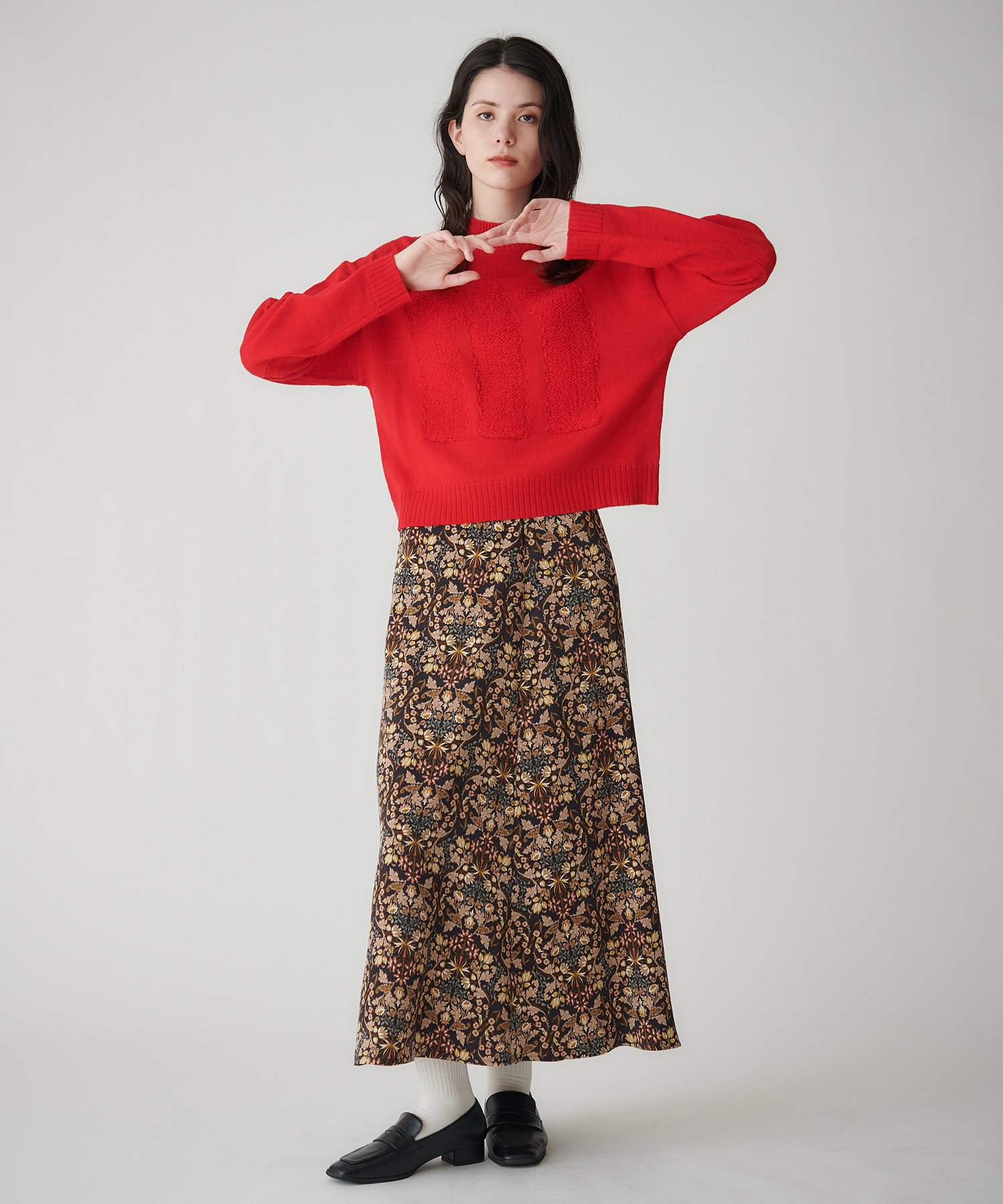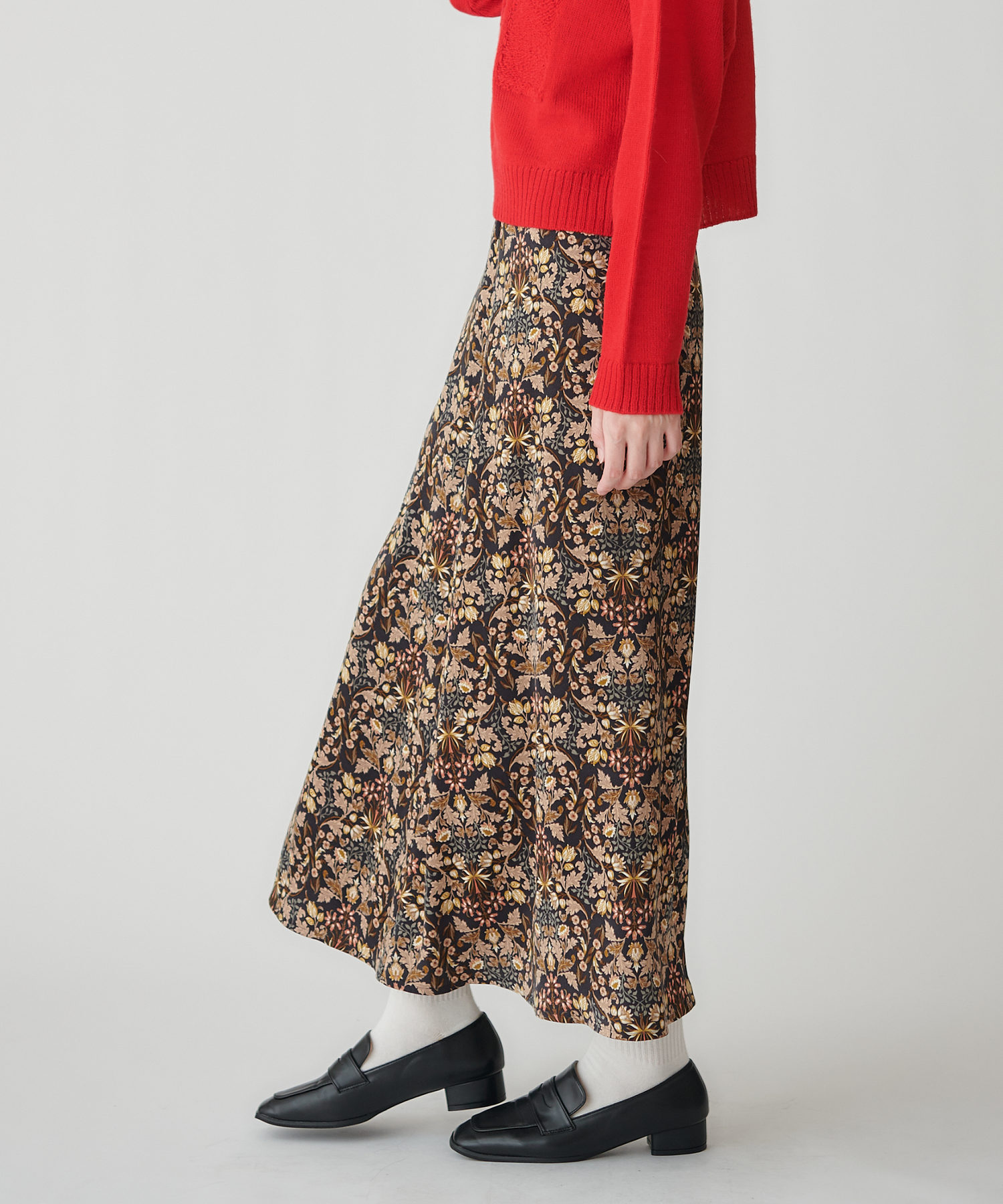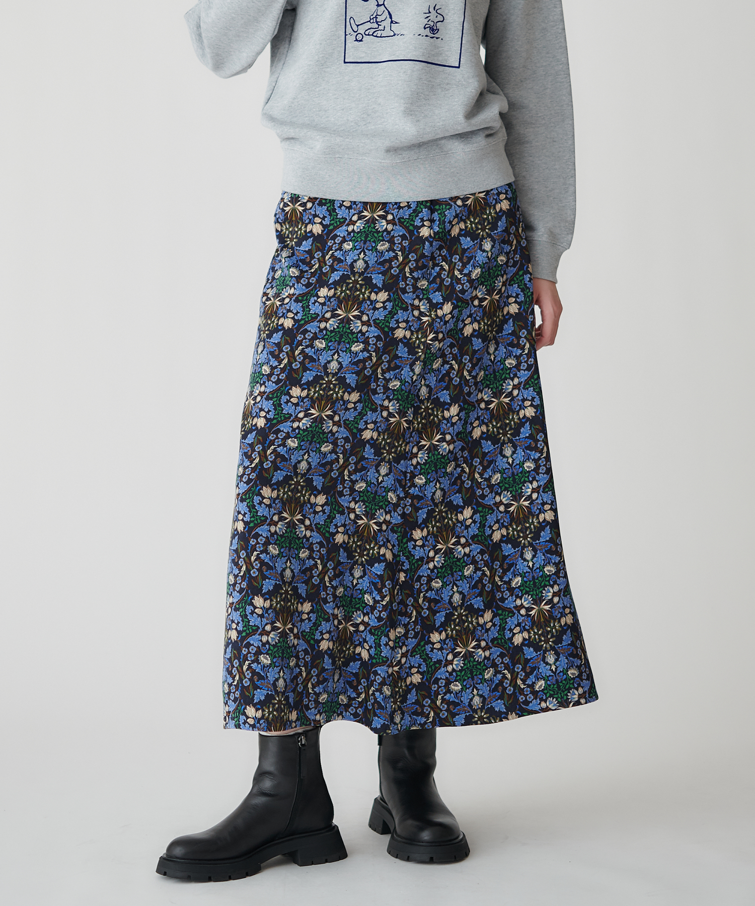 アート感覚あふれる花柄プリントが印象的なスカート。