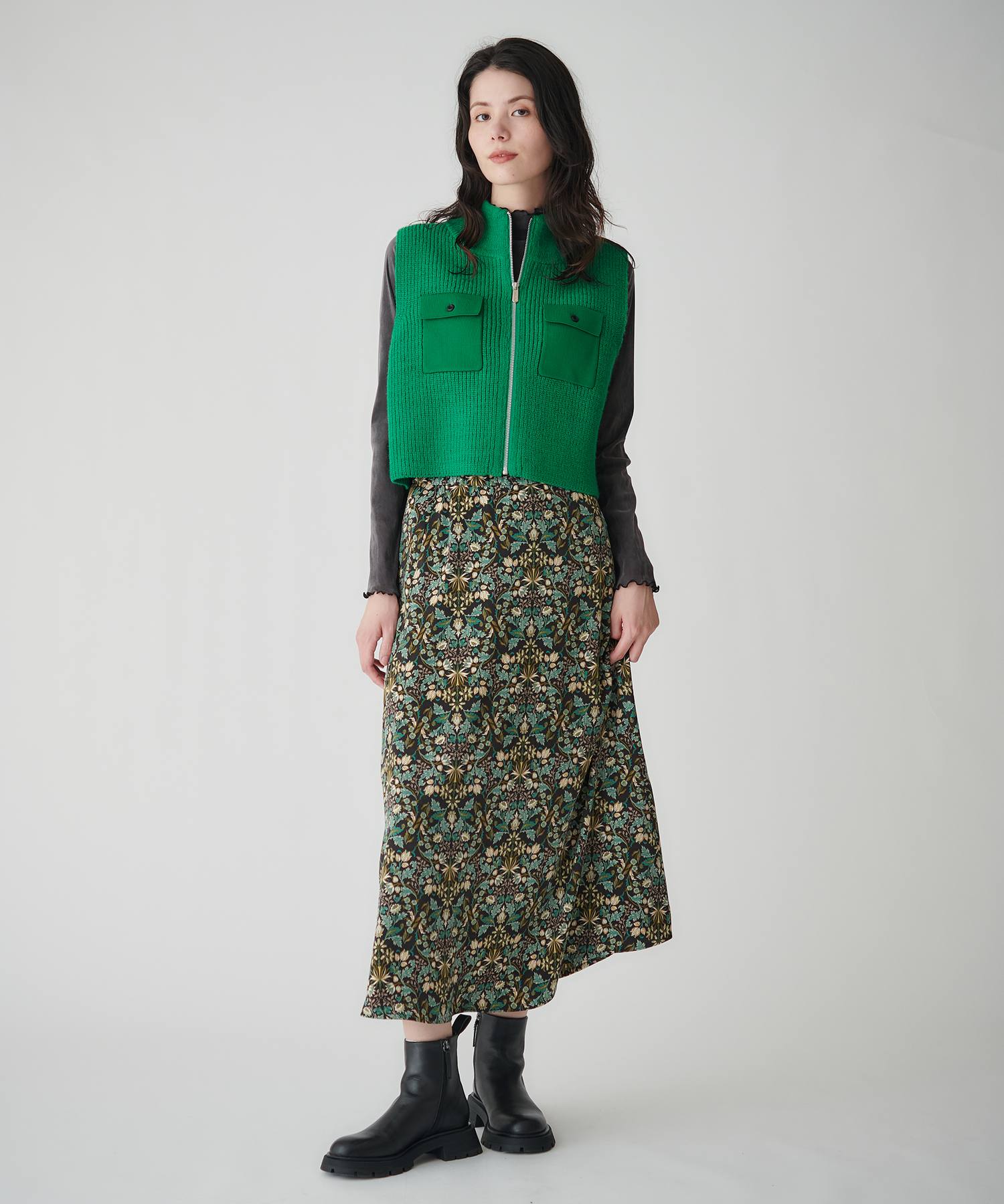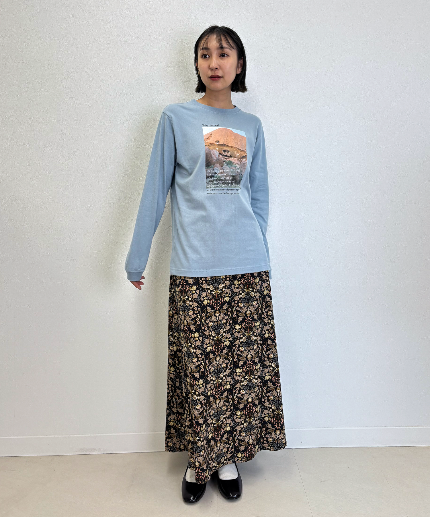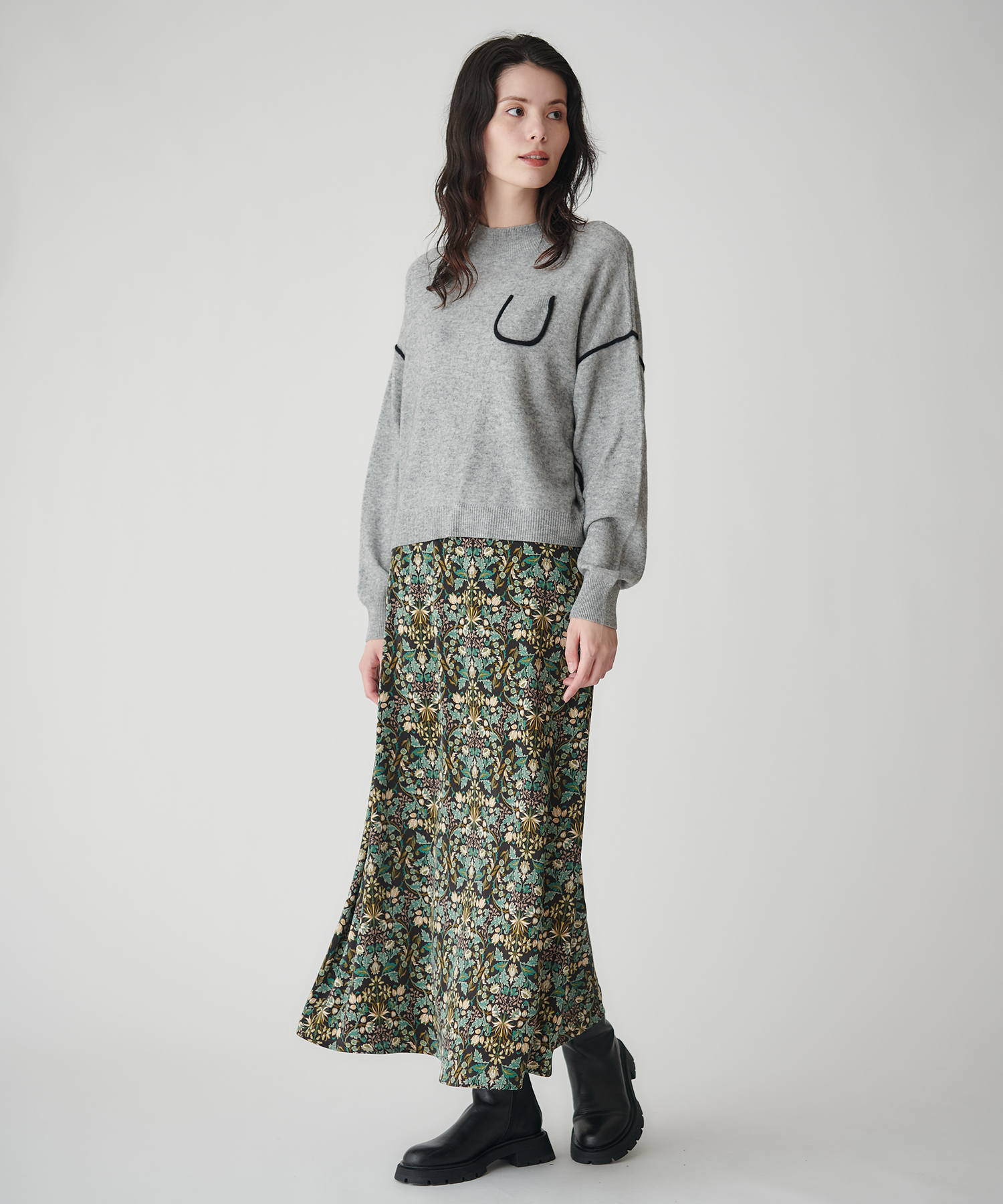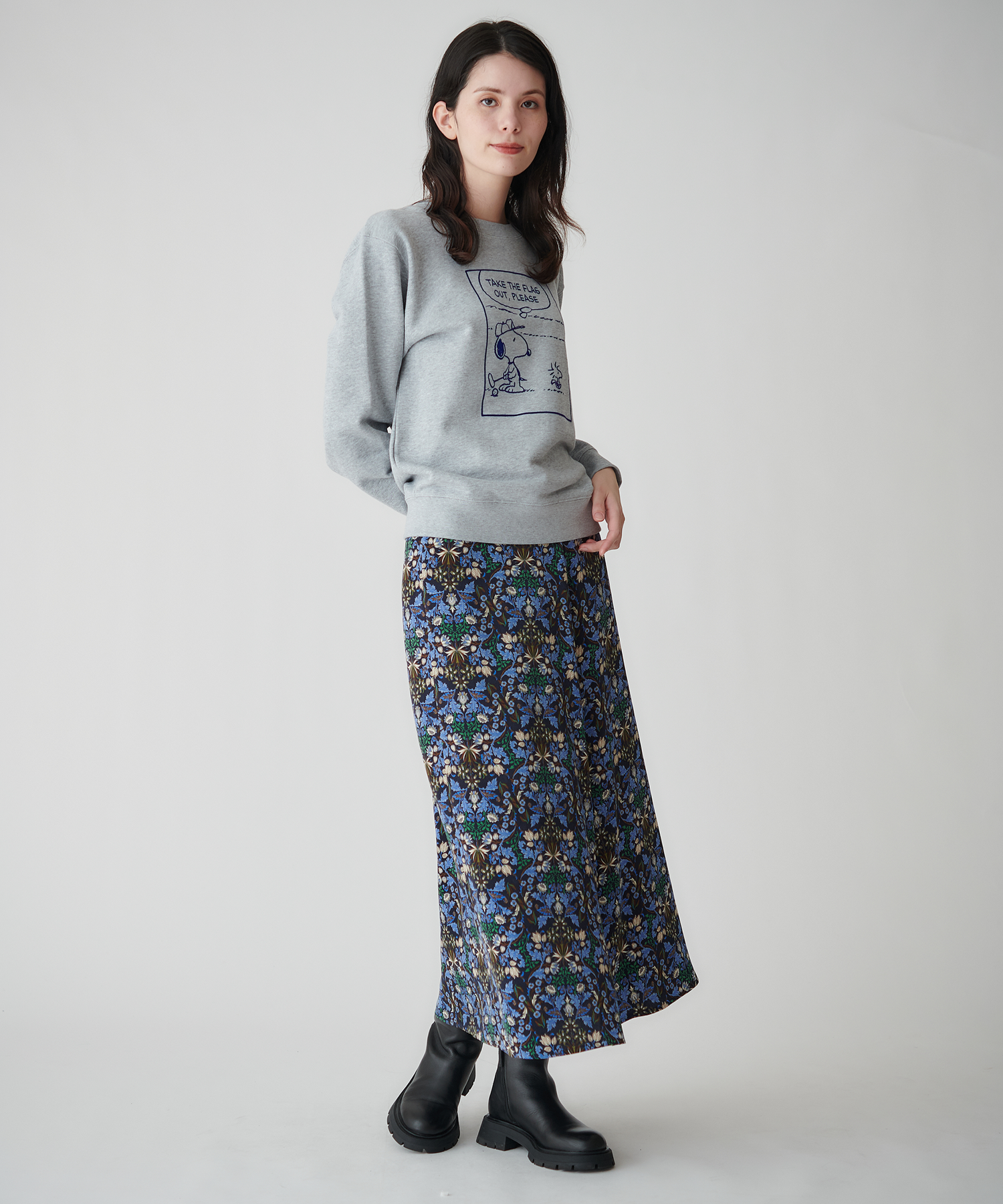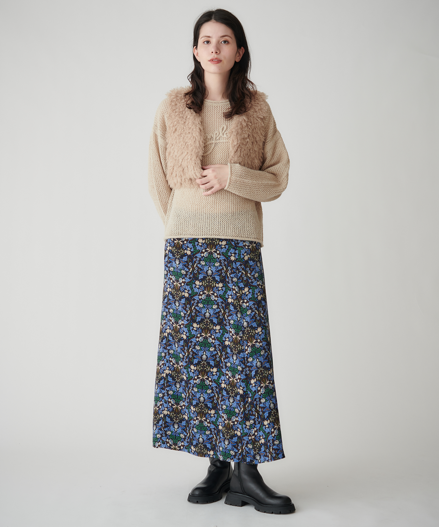 アート感覚あふれる花柄プリントが印象的なスカート。