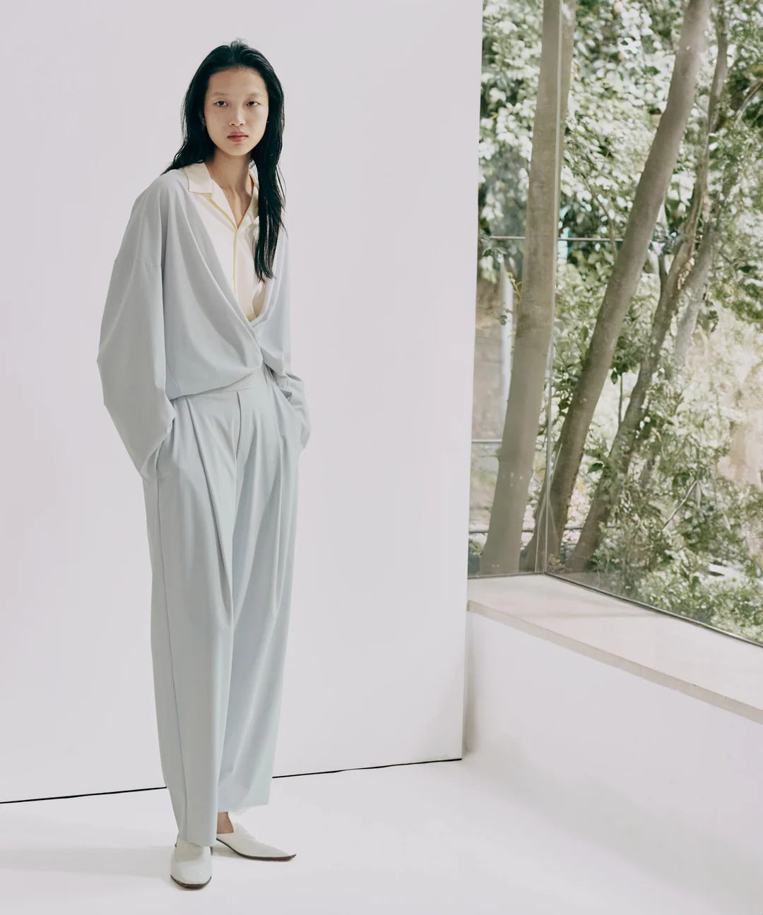 イタリア〈EURO JERSEY〉社が開発した高品質・高機能素材を使用。上品な微光沢と布帛のような表情を備え、真夏でも涼しく、思わず手に取りたくなる快適な着心地。ジャケット感覚で美しく着こなせるカーディガンです。