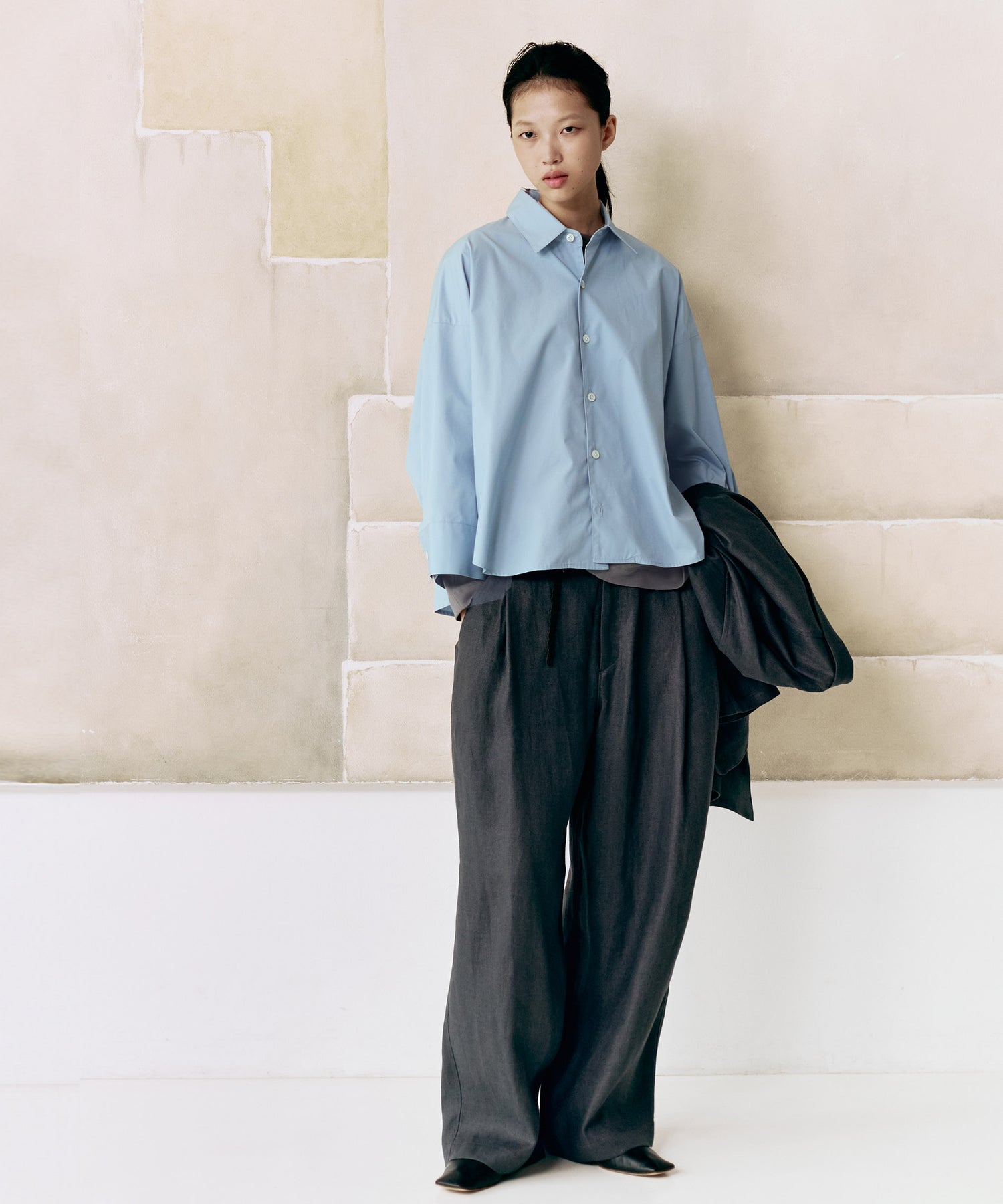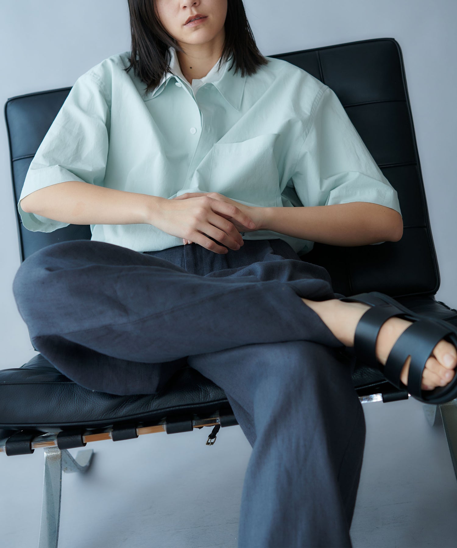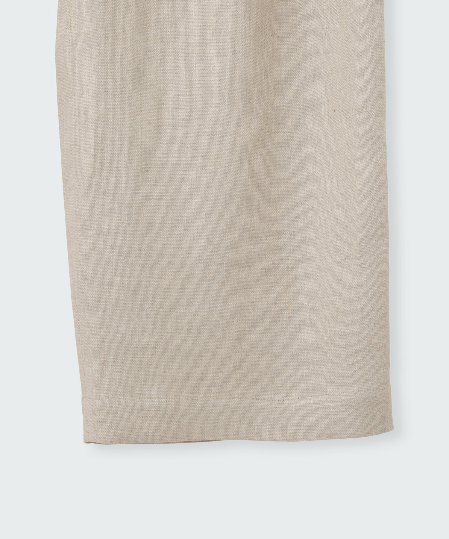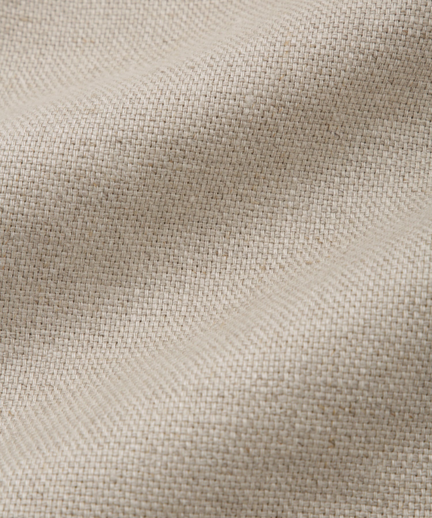 太番リネンを高密度に打ち込んだオックス素材。上質なリネンによる光沢感と高密度感が、カジュアルなリネンとは一線を画すラグジュアリーな雰囲気を醸し出しています。