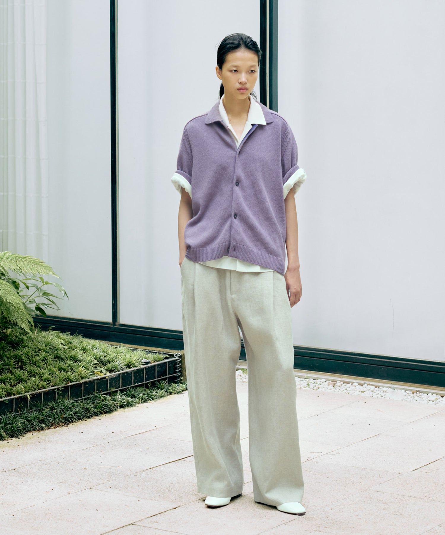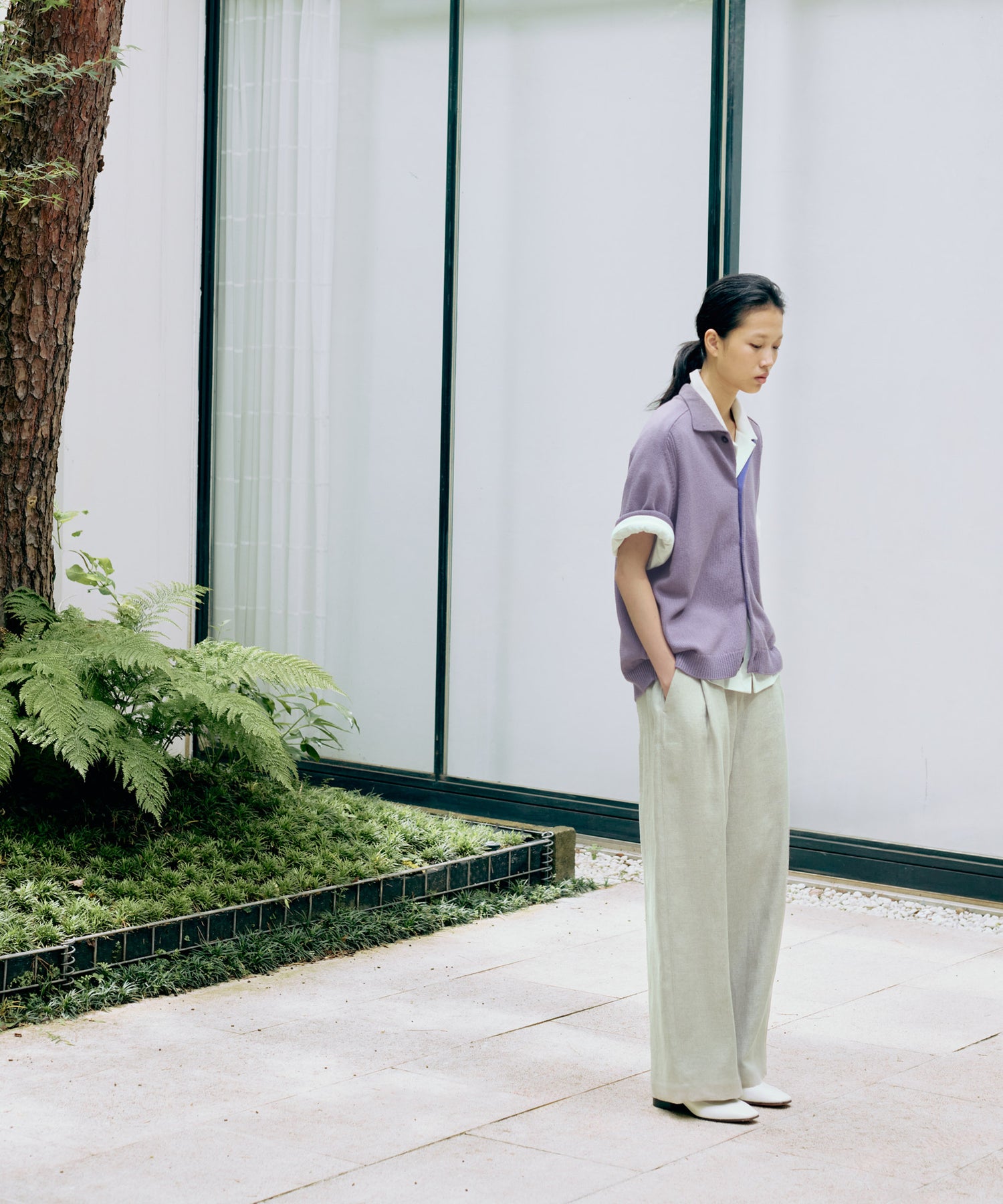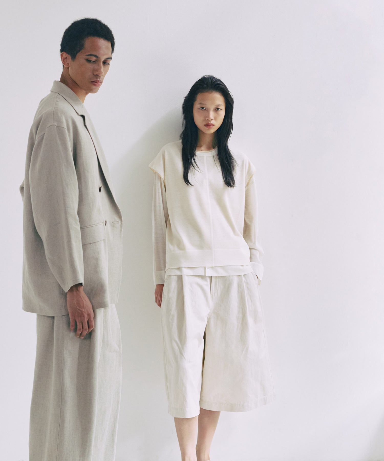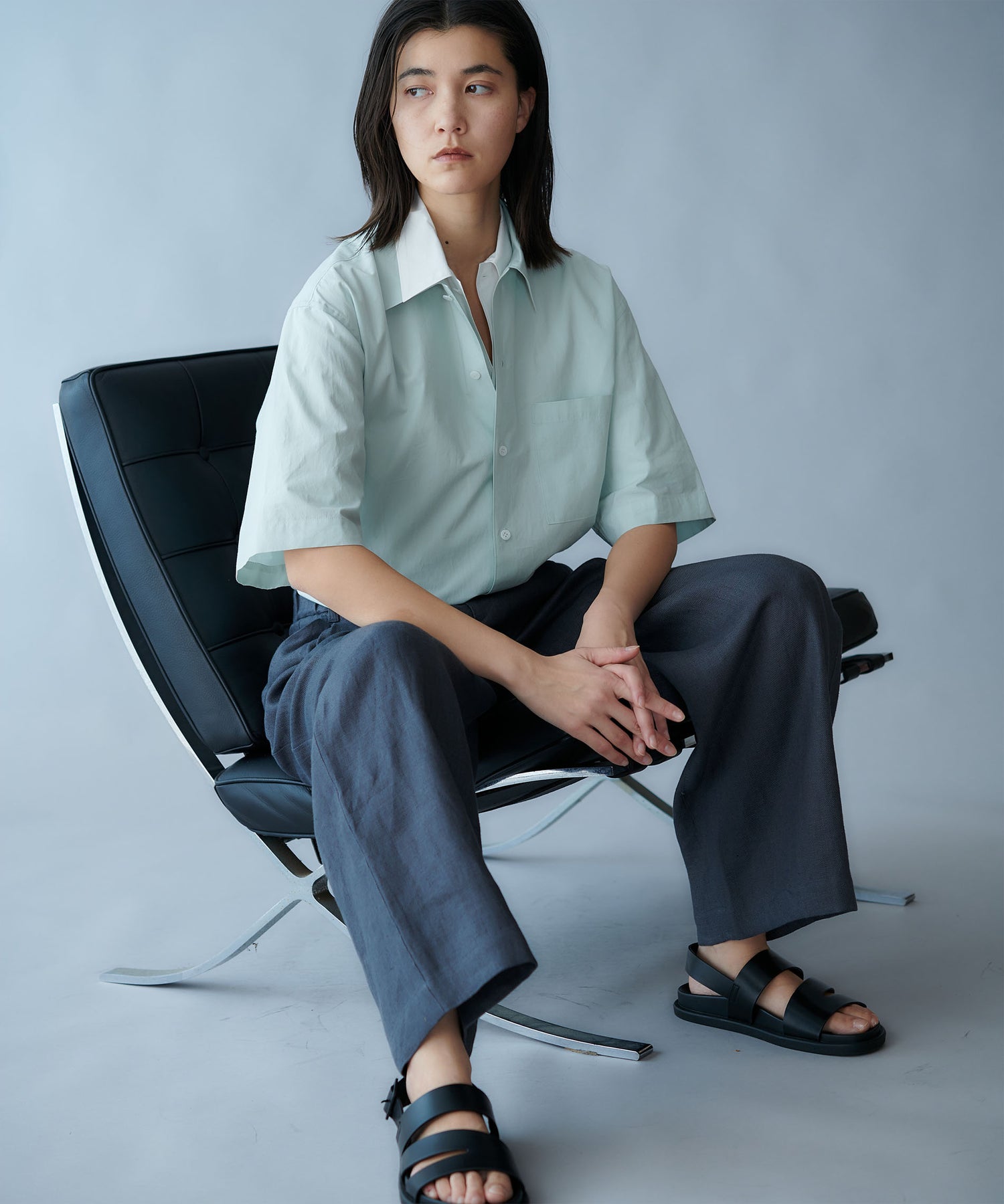 太番リネンを高密度に打ち込んだオックス素材。上質なリネンによる光沢感と高密度感が、カジュアルなリネンとは一線を画すラグジュアリーな雰囲気を醸し出しています。