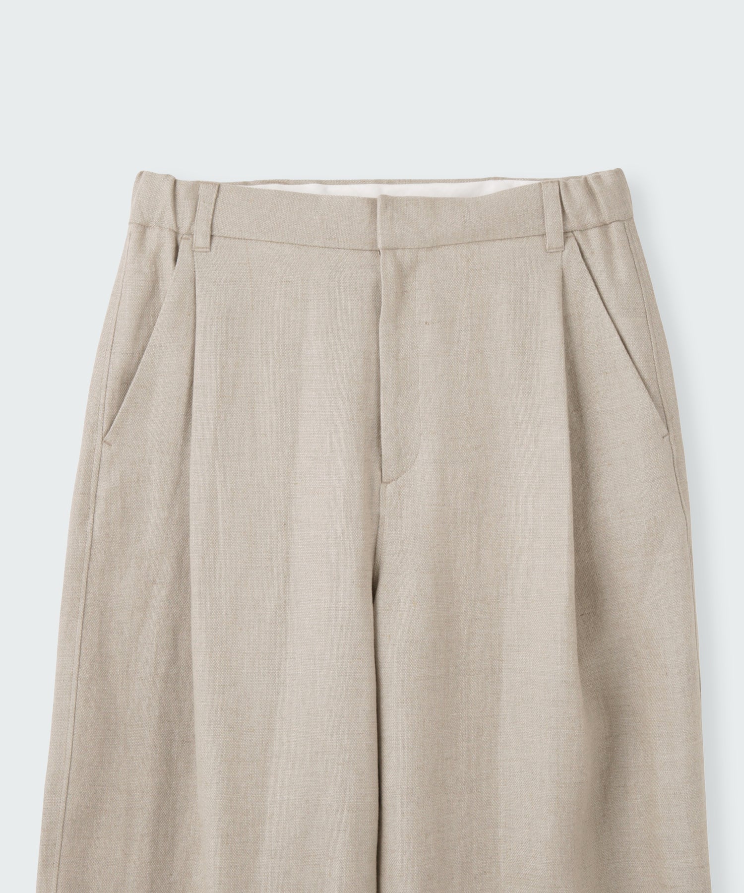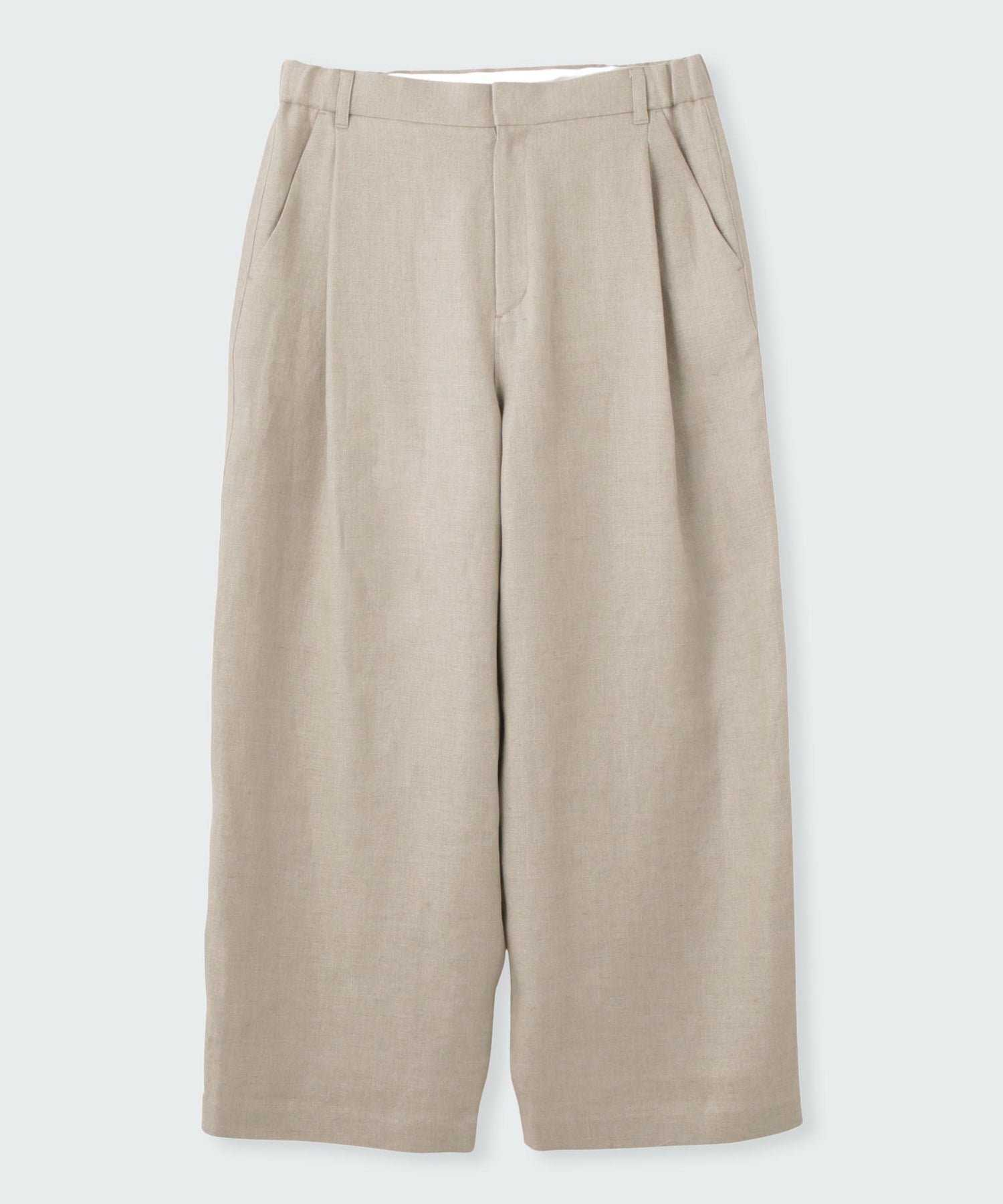 太番リネンを高密度に織り上げたオックス素材のワイドパンツ。